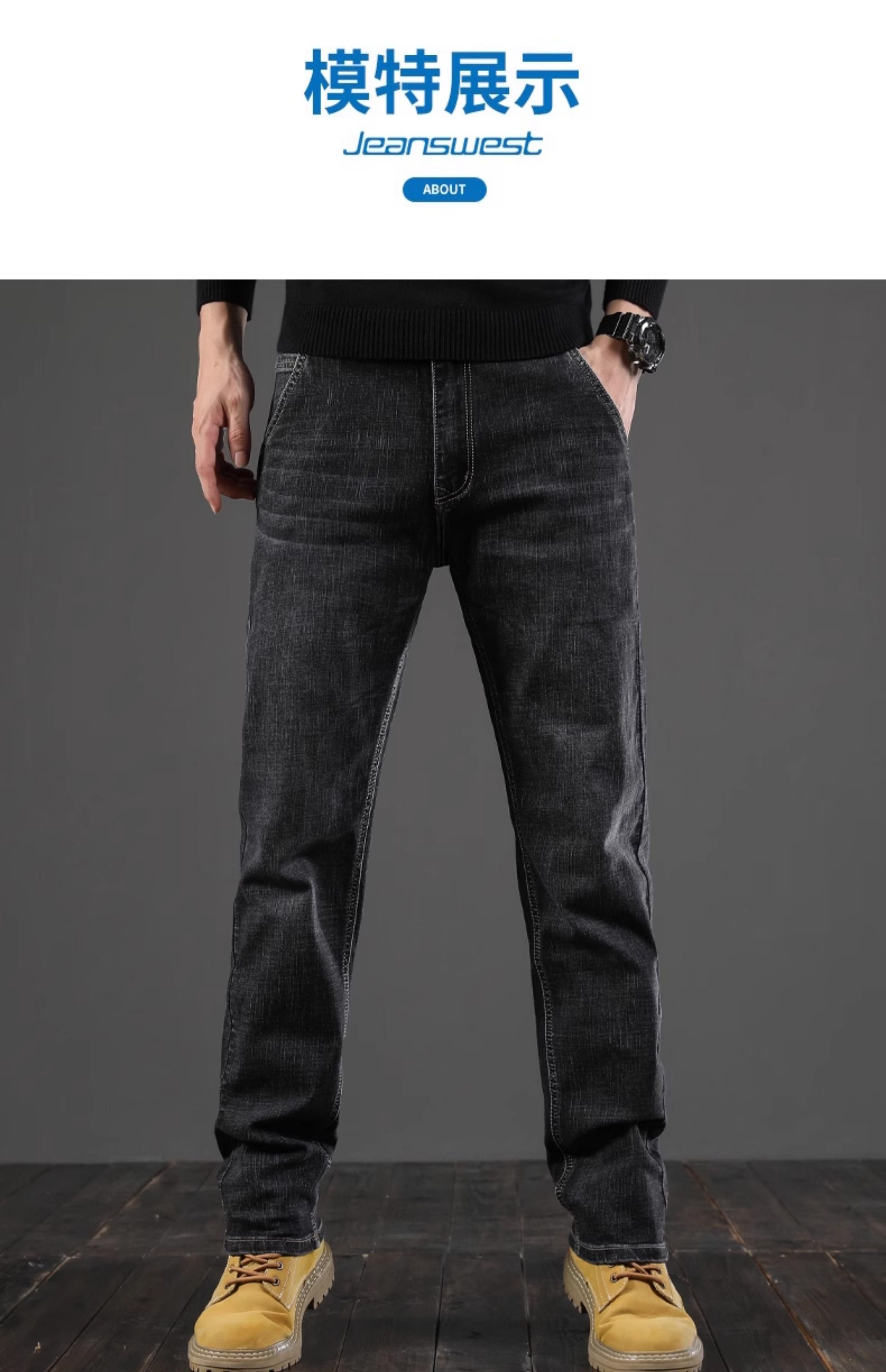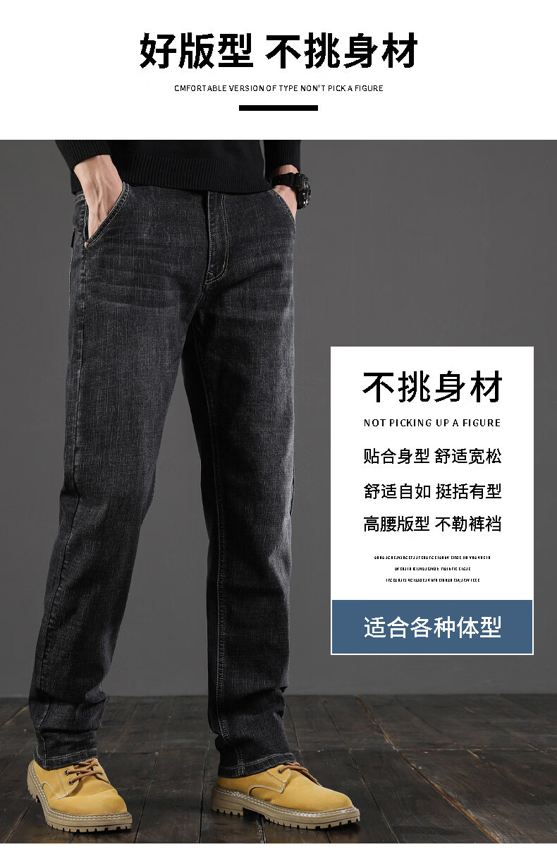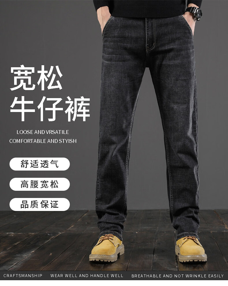 真维斯(Jeanswest)牛仔裤男2026春季新款宽松直筒弹力裤高端商务潮牌厚款长裤 043H蓝灰 31