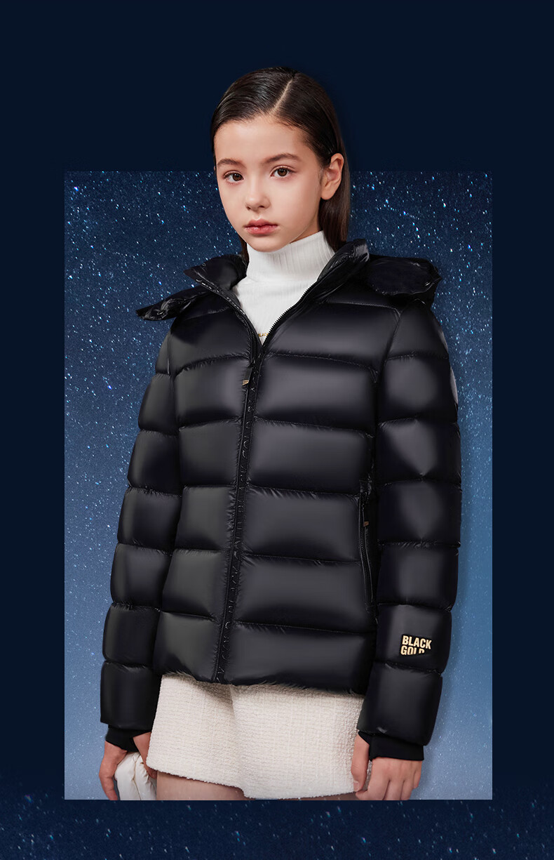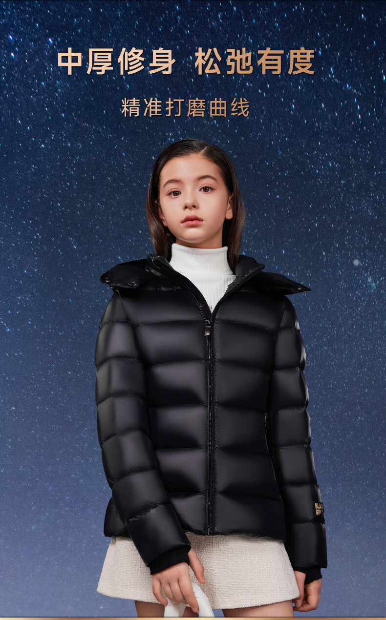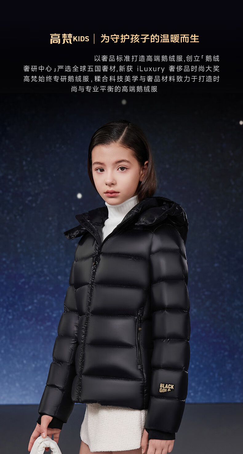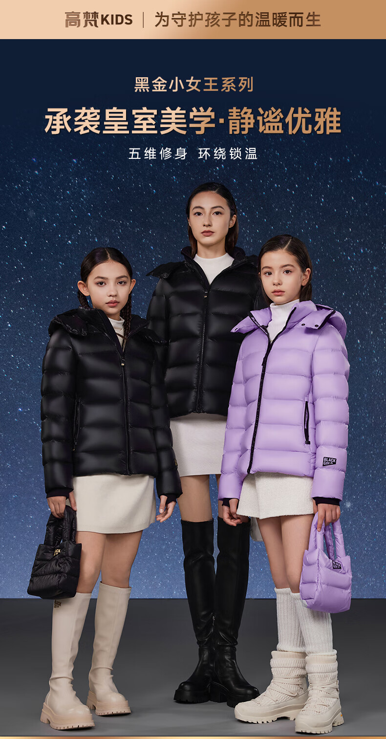 高梵黑金儿童鹅绒服4.0黑金小女王女童新款中厚收腰款羽绒服 黑色 160