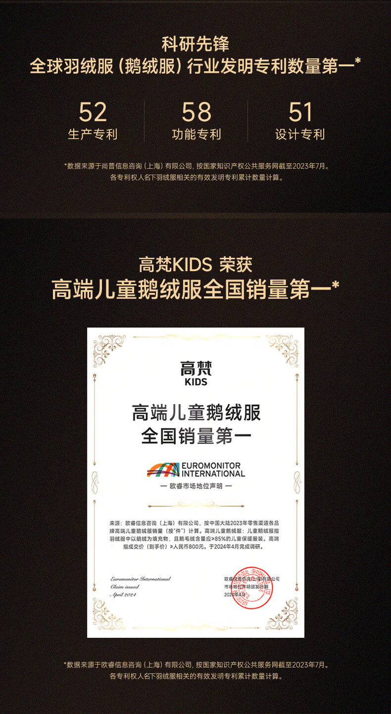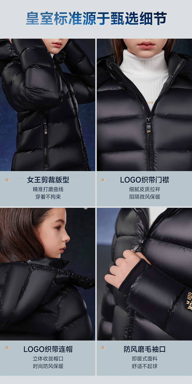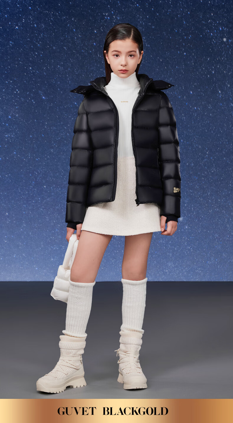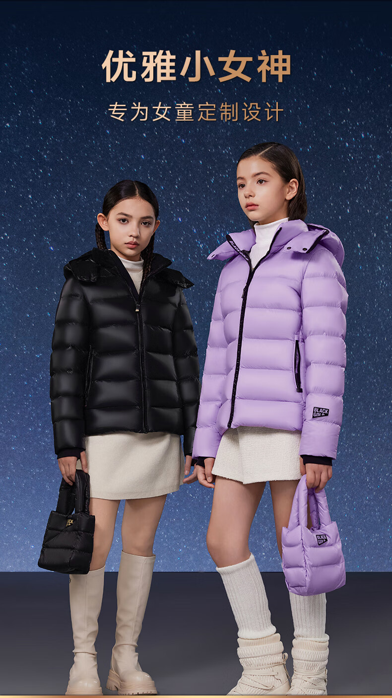 高梵黑金儿童鹅绒服4.0黑金小女王女童新款中厚收腰款羽绒服 黑色 160