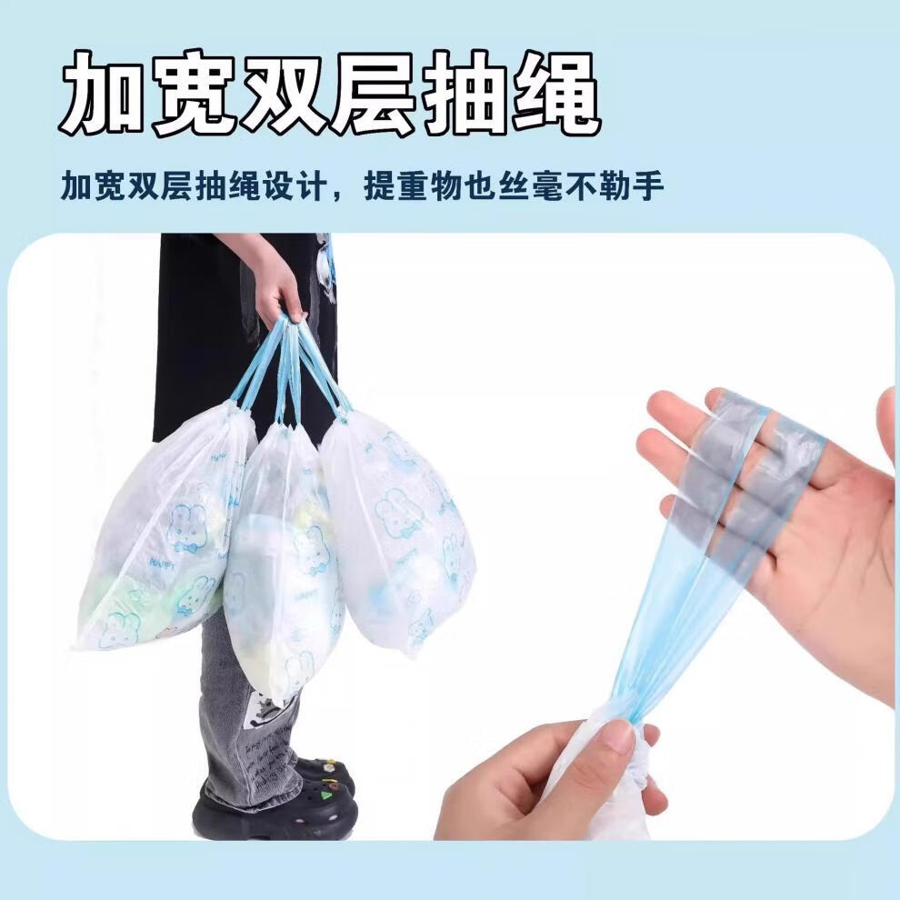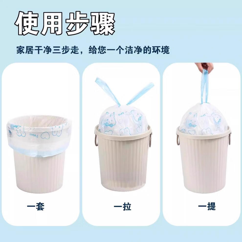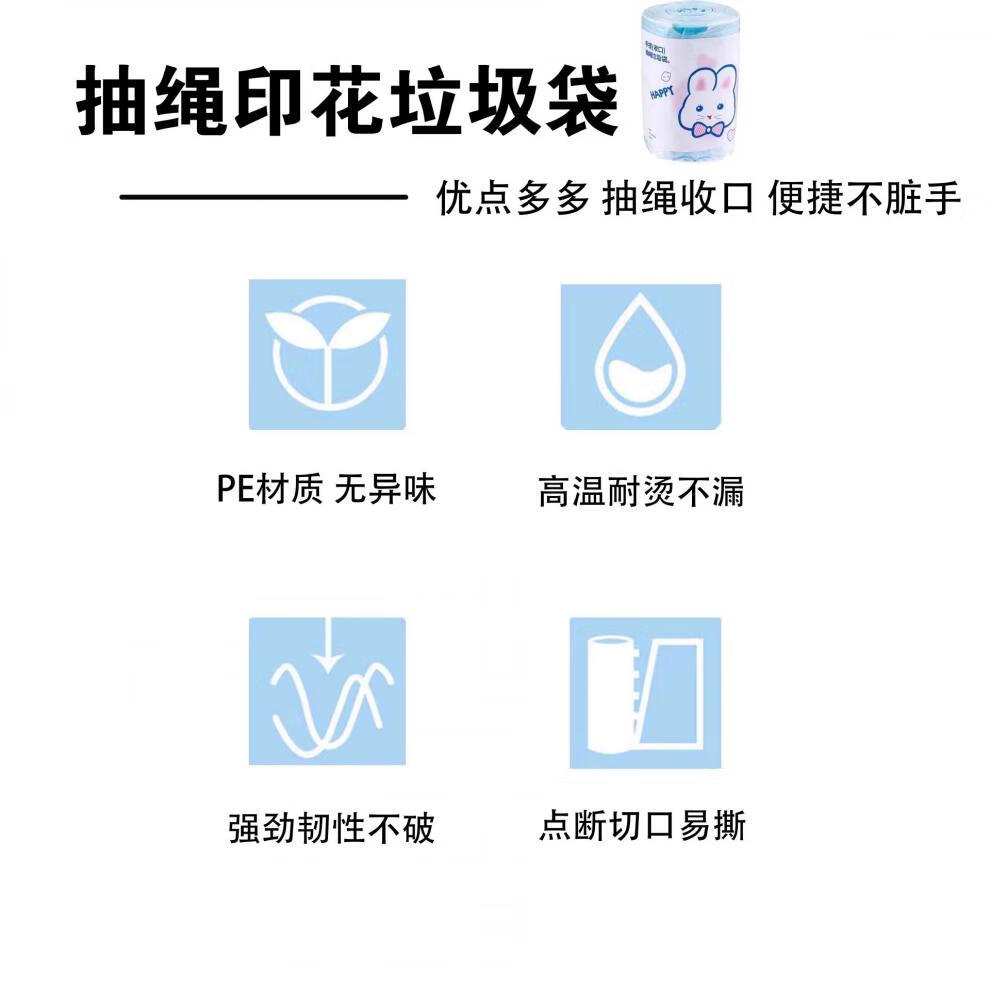 房车用品蓝心兔抽绳款萌趣垃圾袋家用加大加厚宿舍适用自动收口 蓝心兔抽绳垃圾袋 约50只1卷