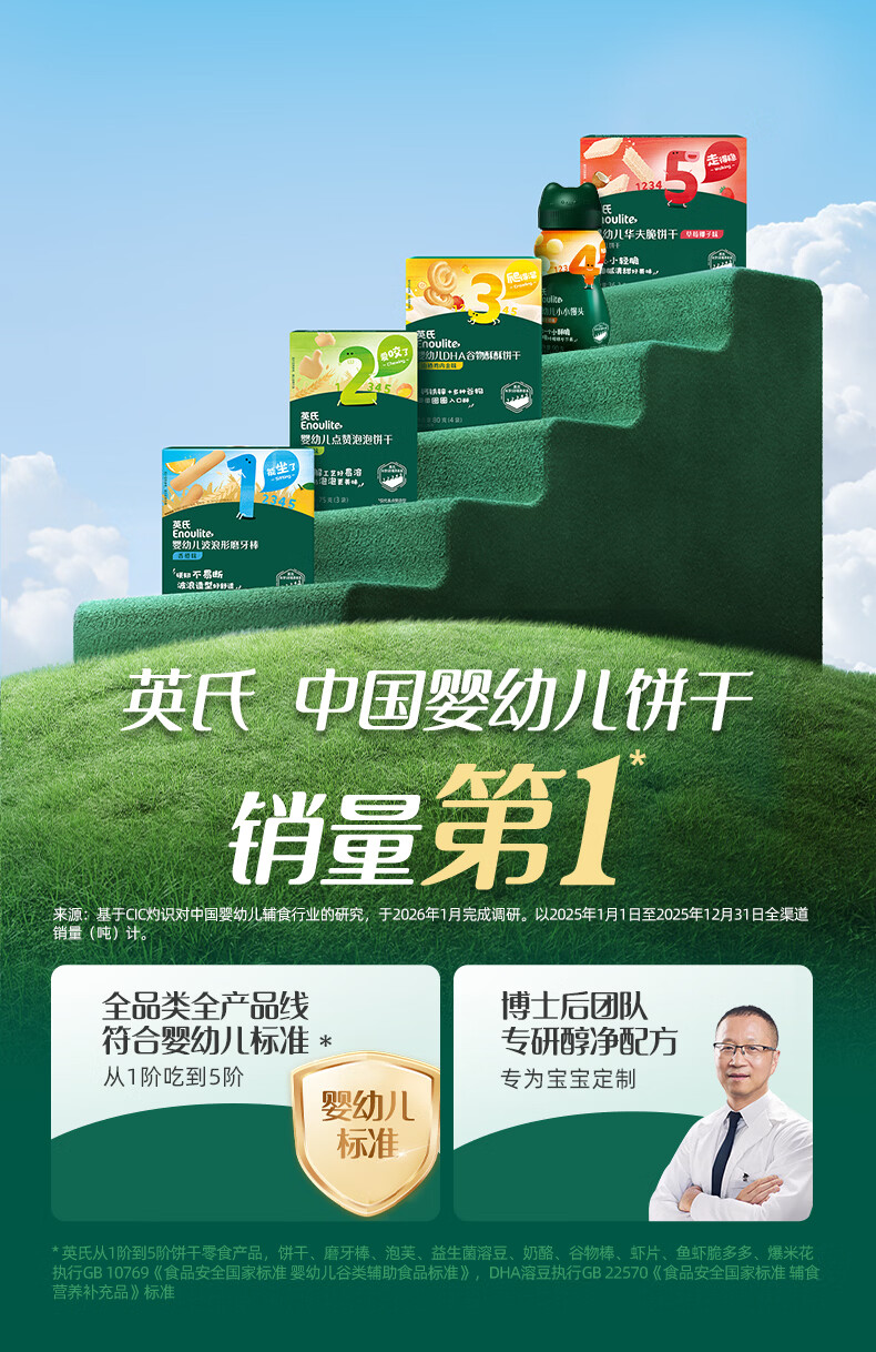 英氏(Engnice)婴幼儿点赞泡泡饼干原味 宝宝婴儿零食辅食牛奶钙磨牙饼干75g