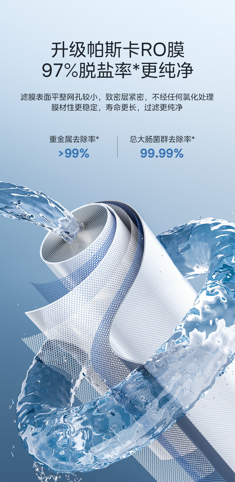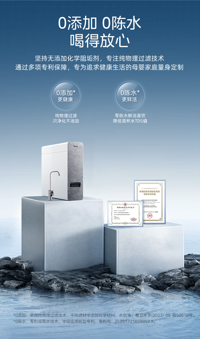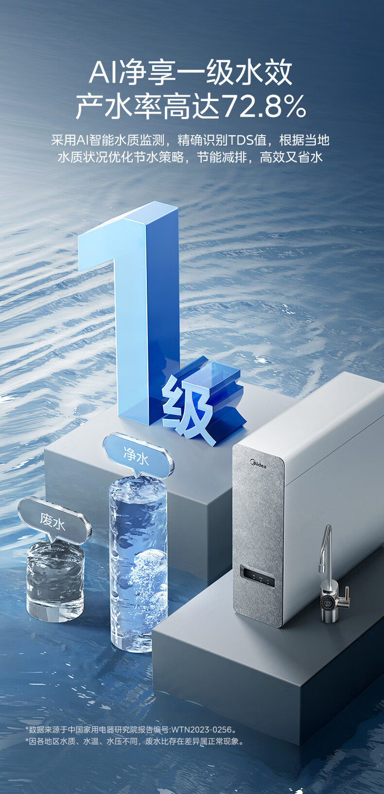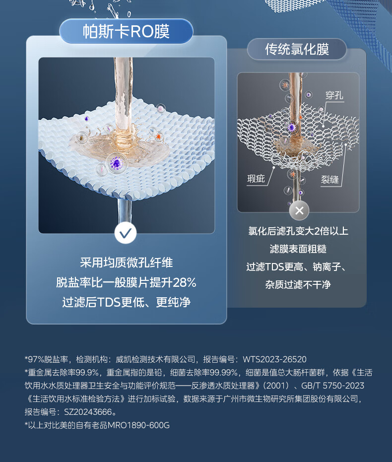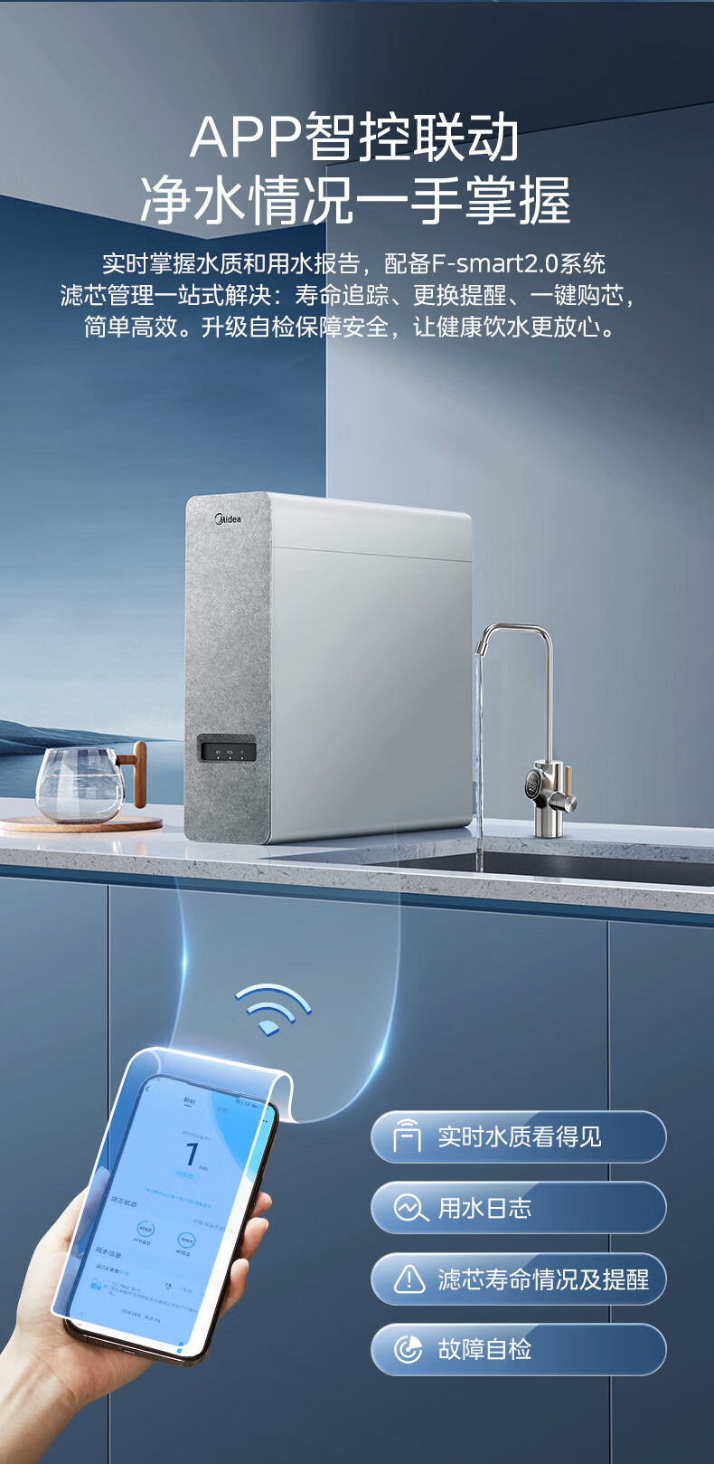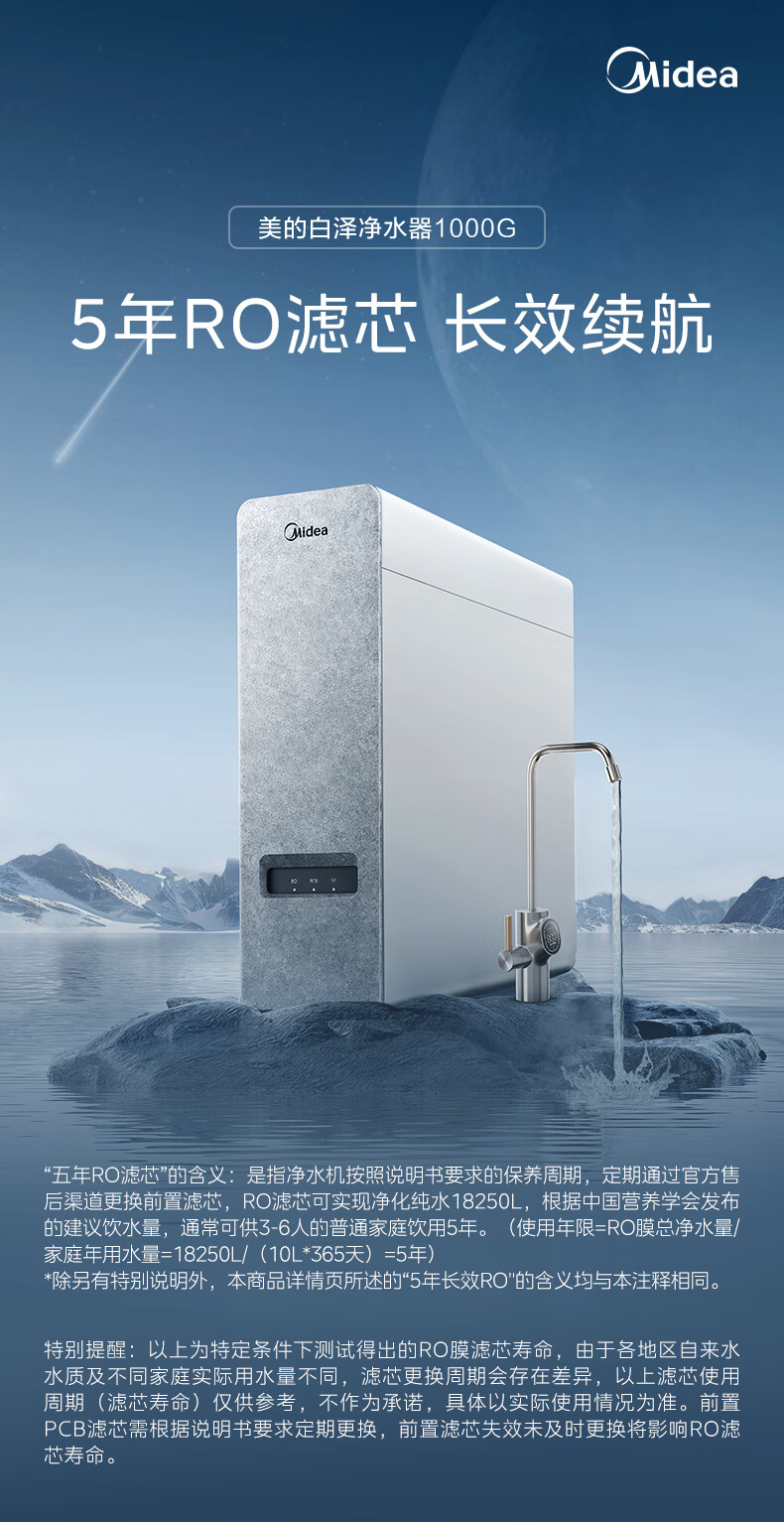 美的(Midea)净水器【高性价比 白泽1000G】0阻垢剂 家用长效反渗透RO直饮过滤器 厨房专用台下用净水机