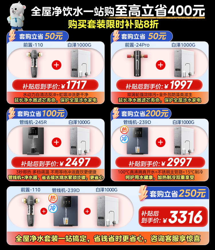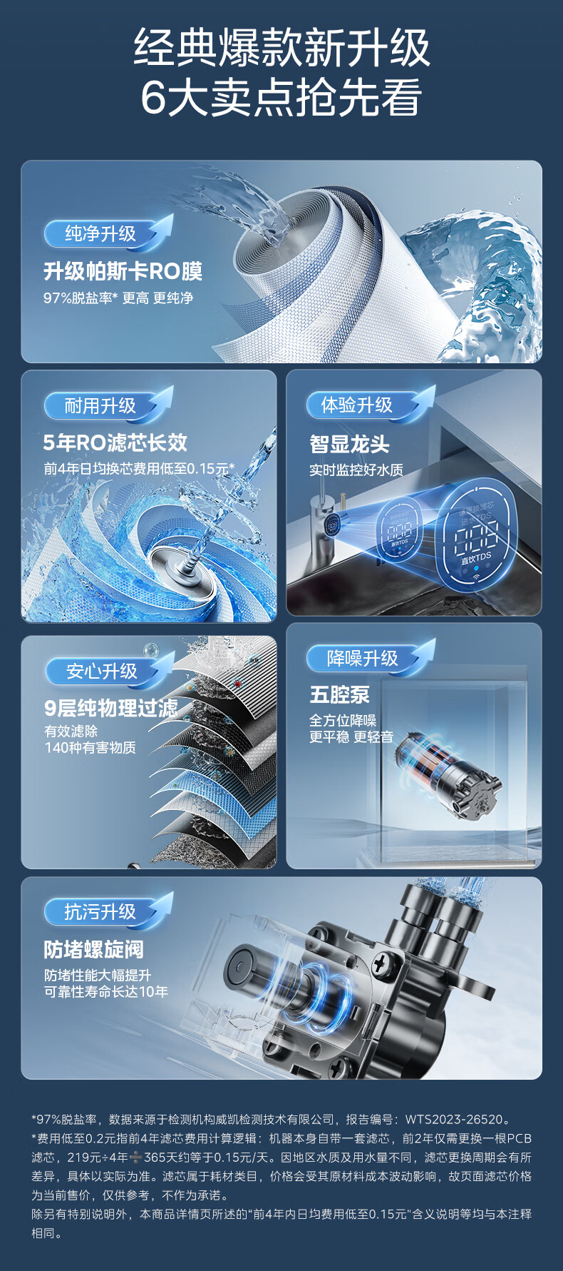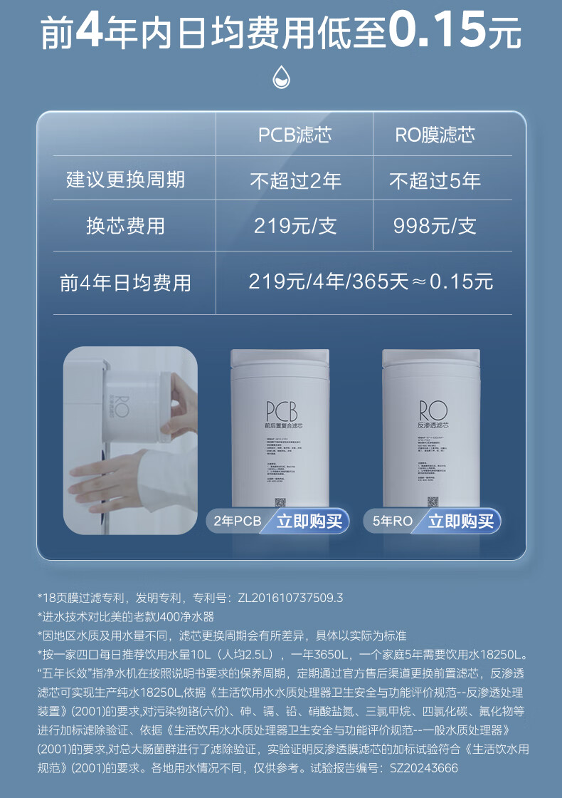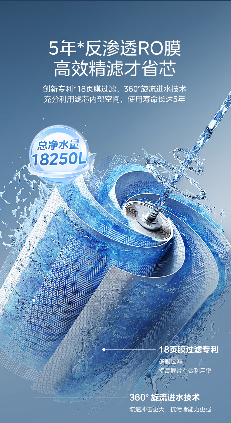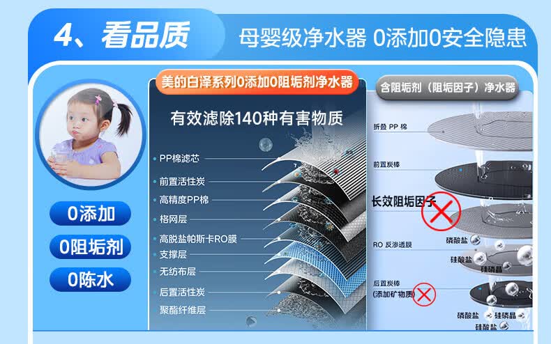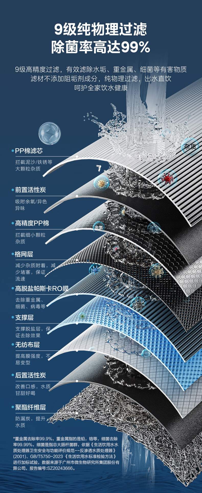 美的(Midea)净水器【高性价比 白泽1000G】0阻垢剂 家用长效反渗透RO直饮过滤器 厨房专用台下用净水机