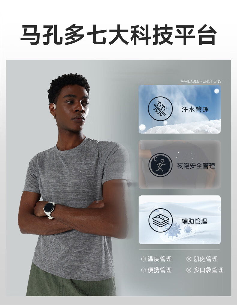 马孔多(macondo)原创单品 男女款吸湿透气 马拉松训练跑步运动短袖T恤 男款(中花灰) M