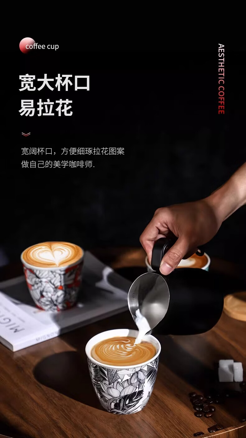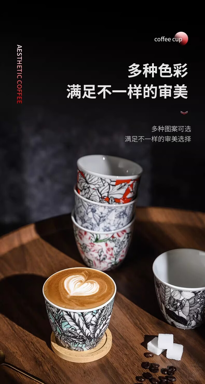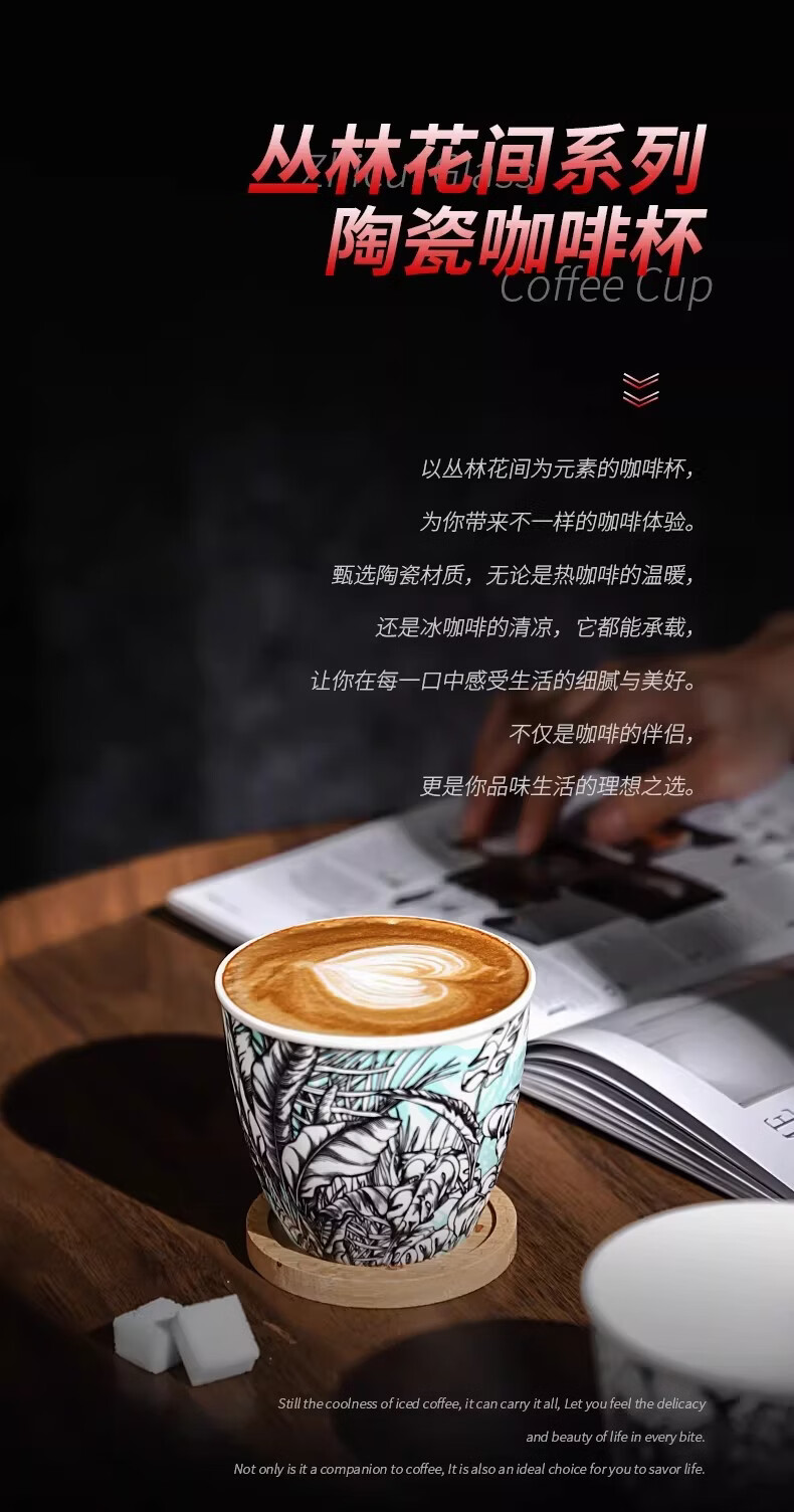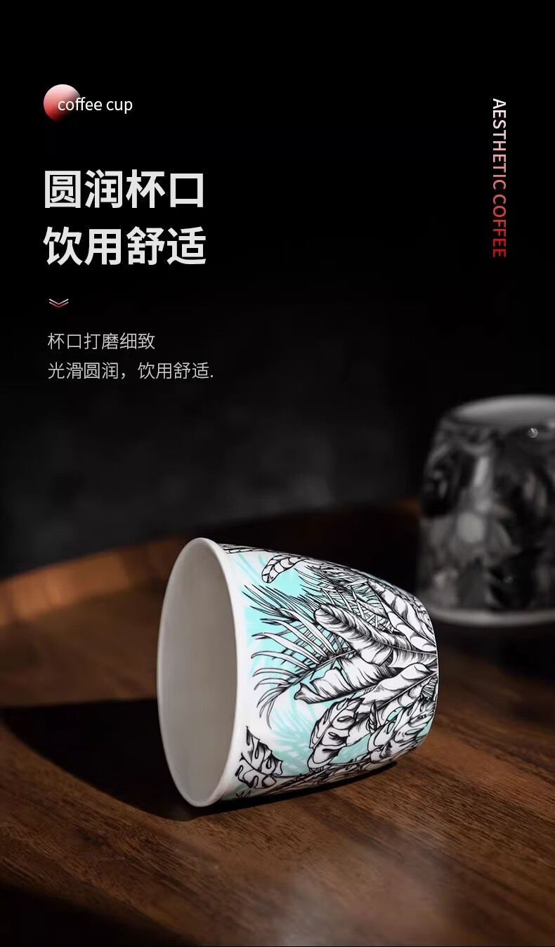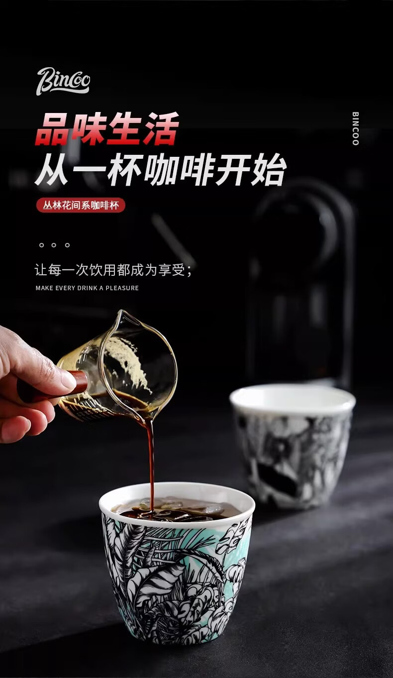Bincoo陶瓷咖啡杯意式手握简约高颜值猪口拉花杯家用精致拿铁杯子 枫叶红-350ML