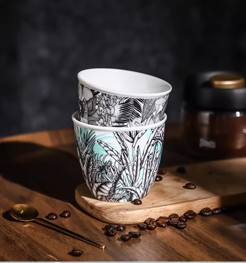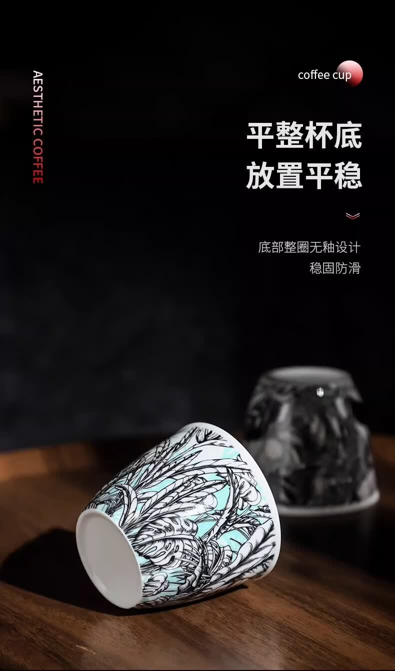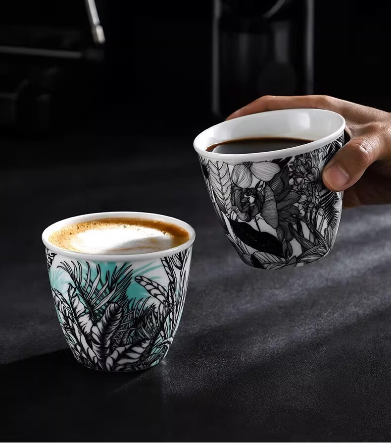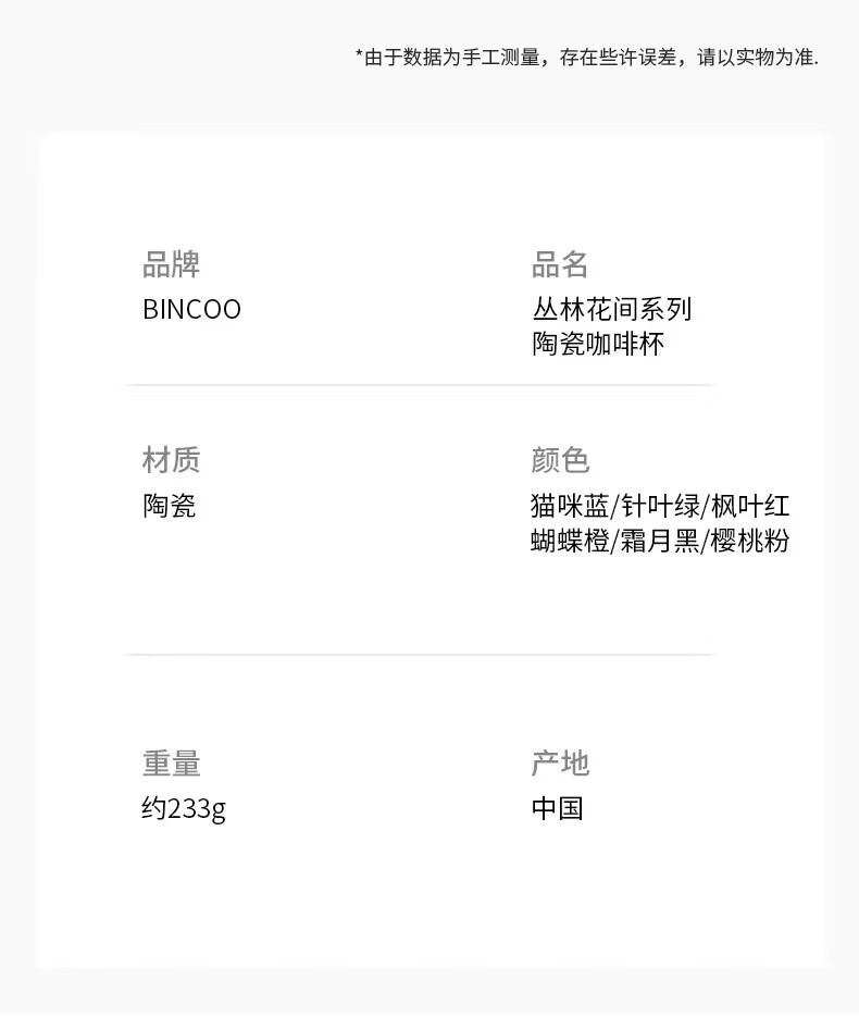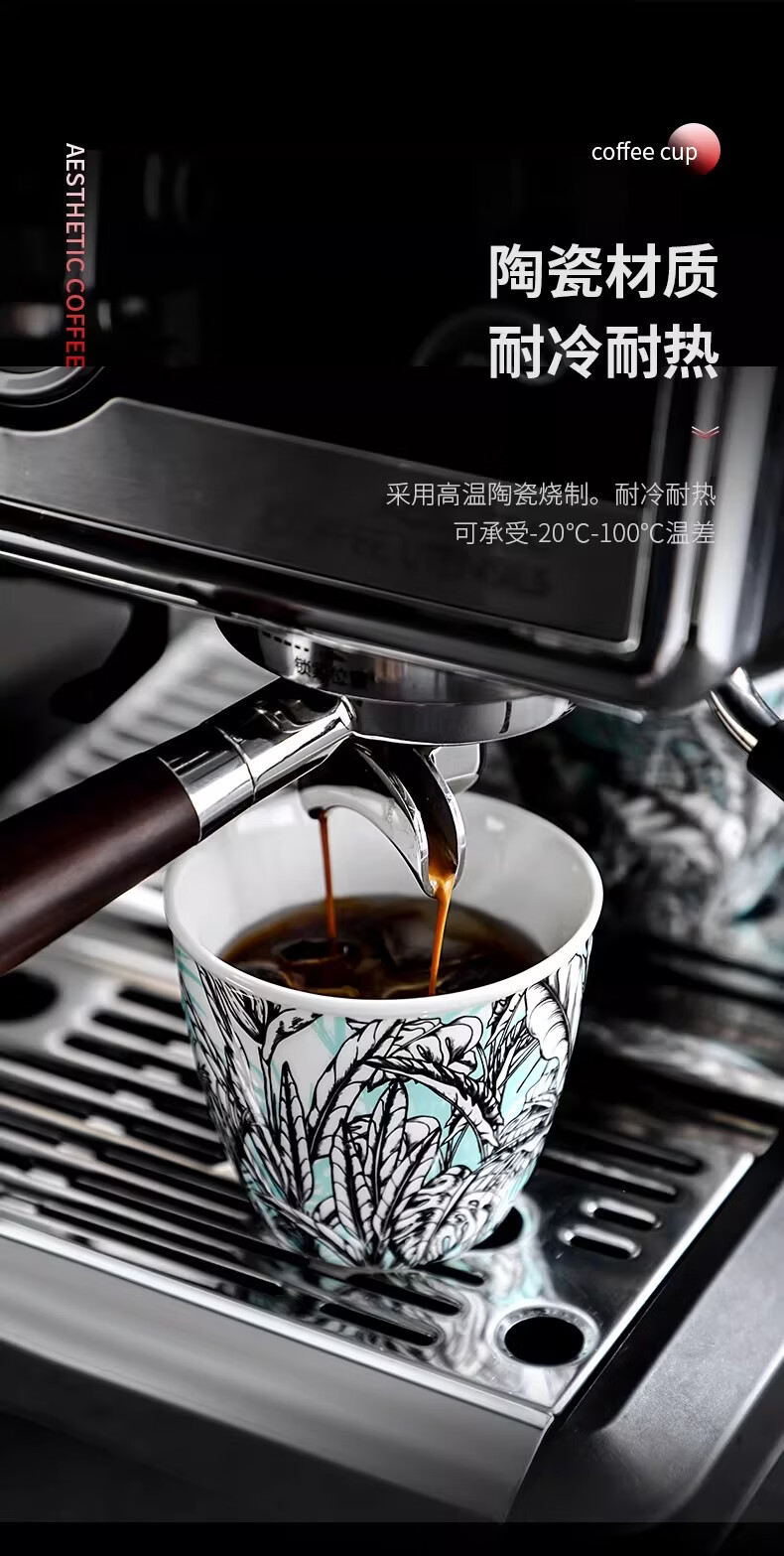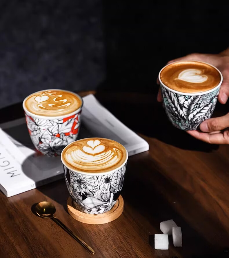 Bincoo陶瓷咖啡杯意式手握简约高颜值猪口拉花杯家用精致拿铁杯子 枫叶红-350ML