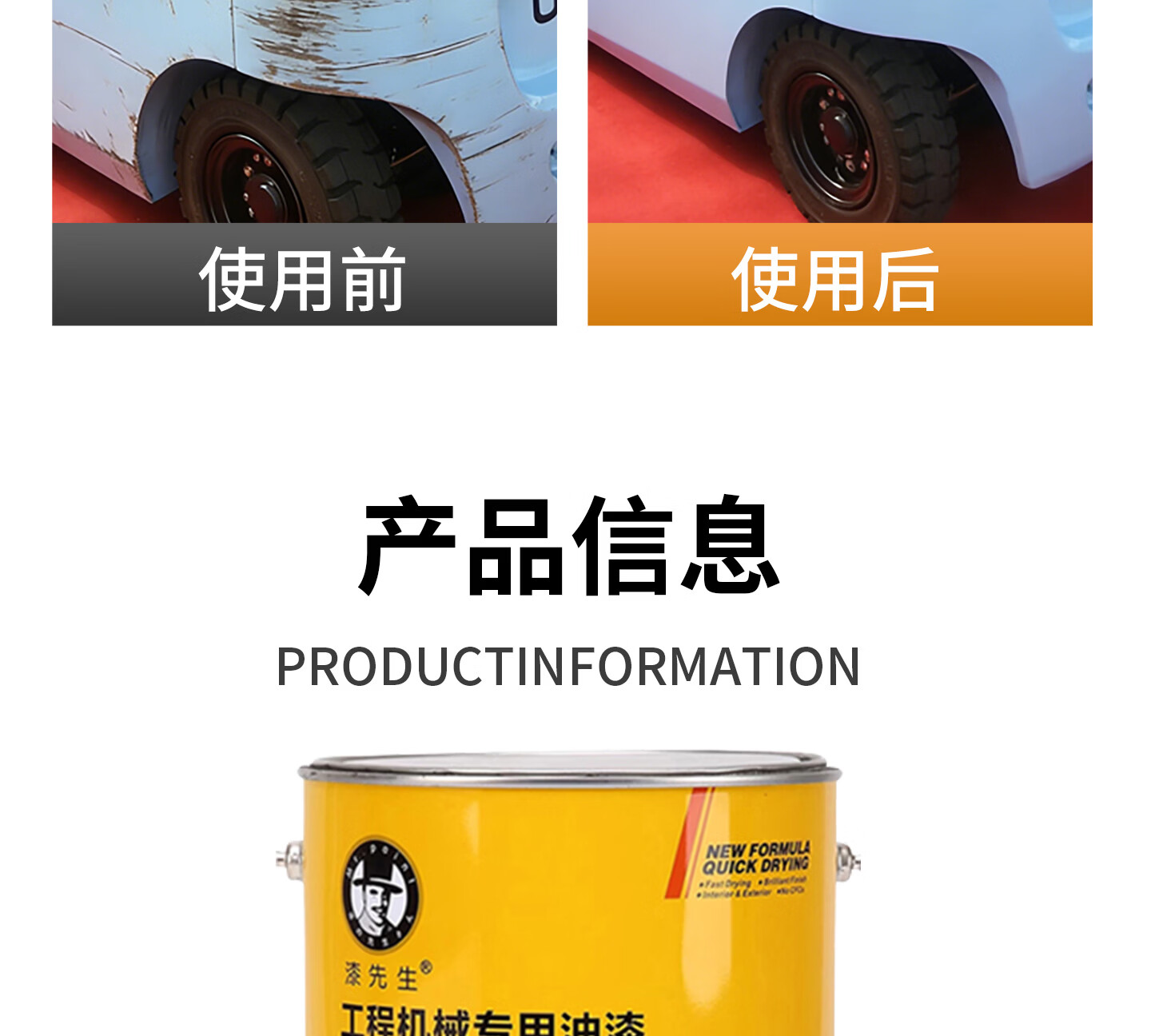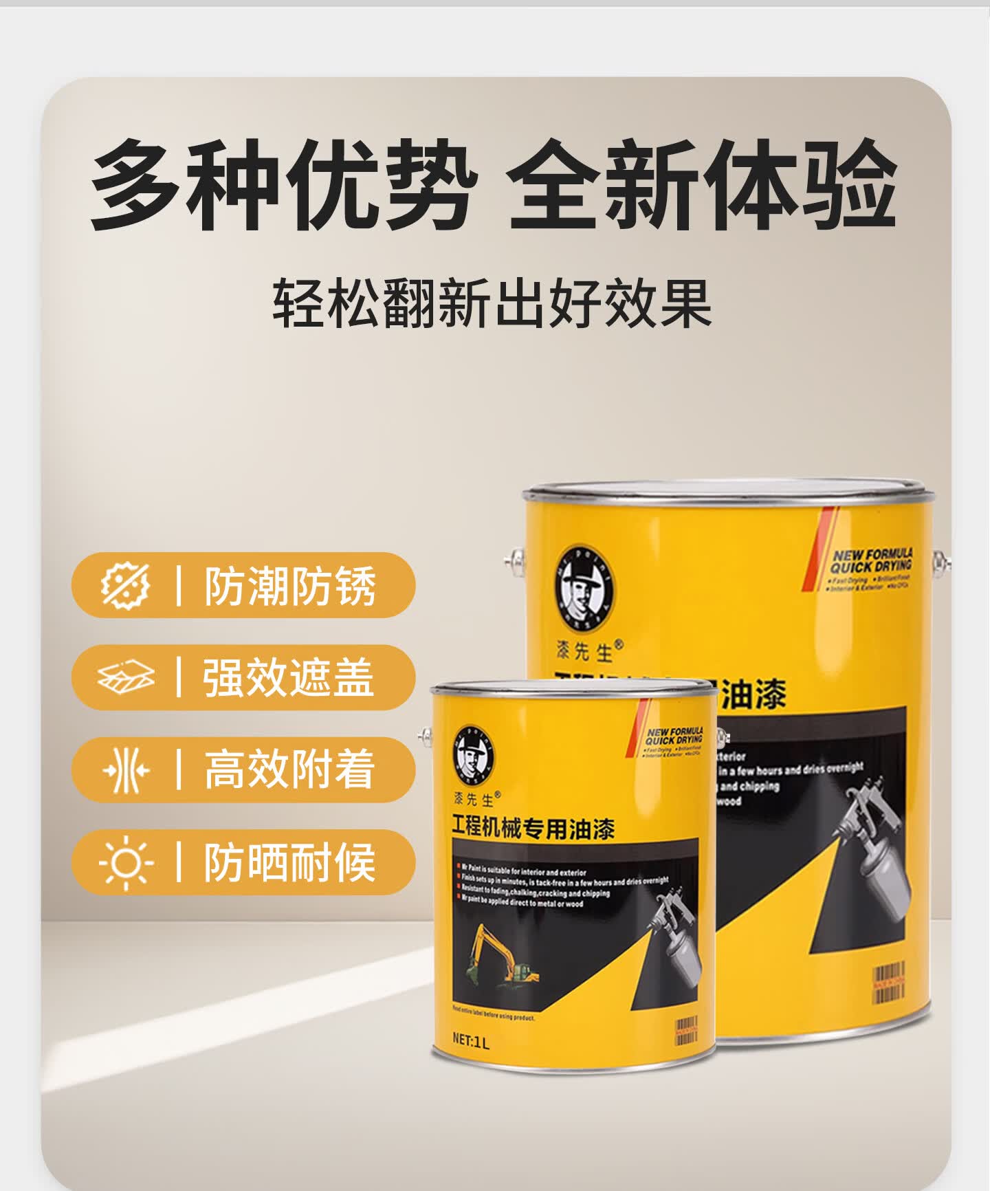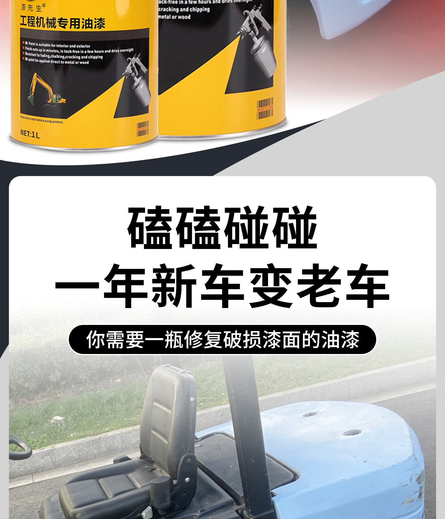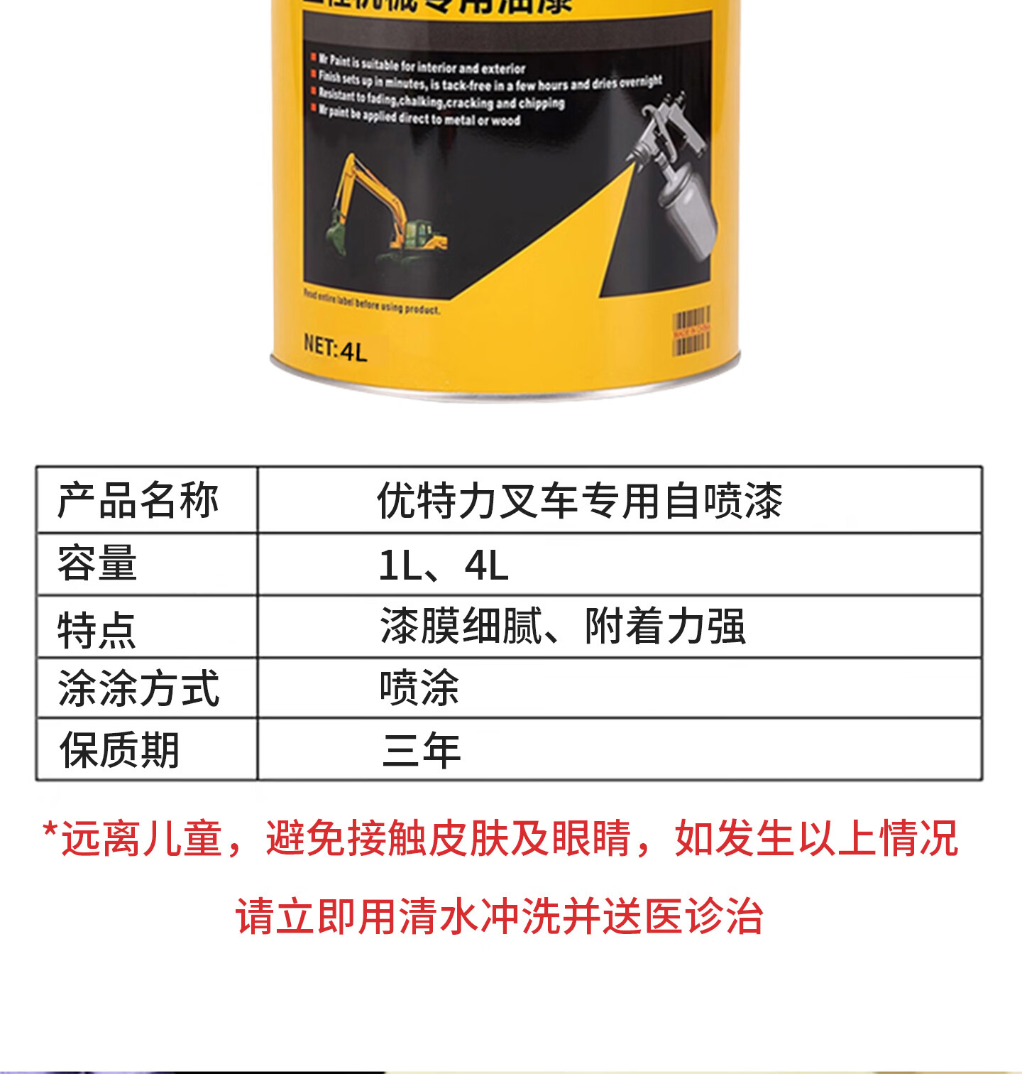 漆先生桶装油漆适用优特力叉车黑色蓝色挖机划痕修补防锈防腐金属油漆工程机械挖掘机叉车翻新改色涂料桶装金属喷漆 优特力叉车黑色 1L(只有油漆)