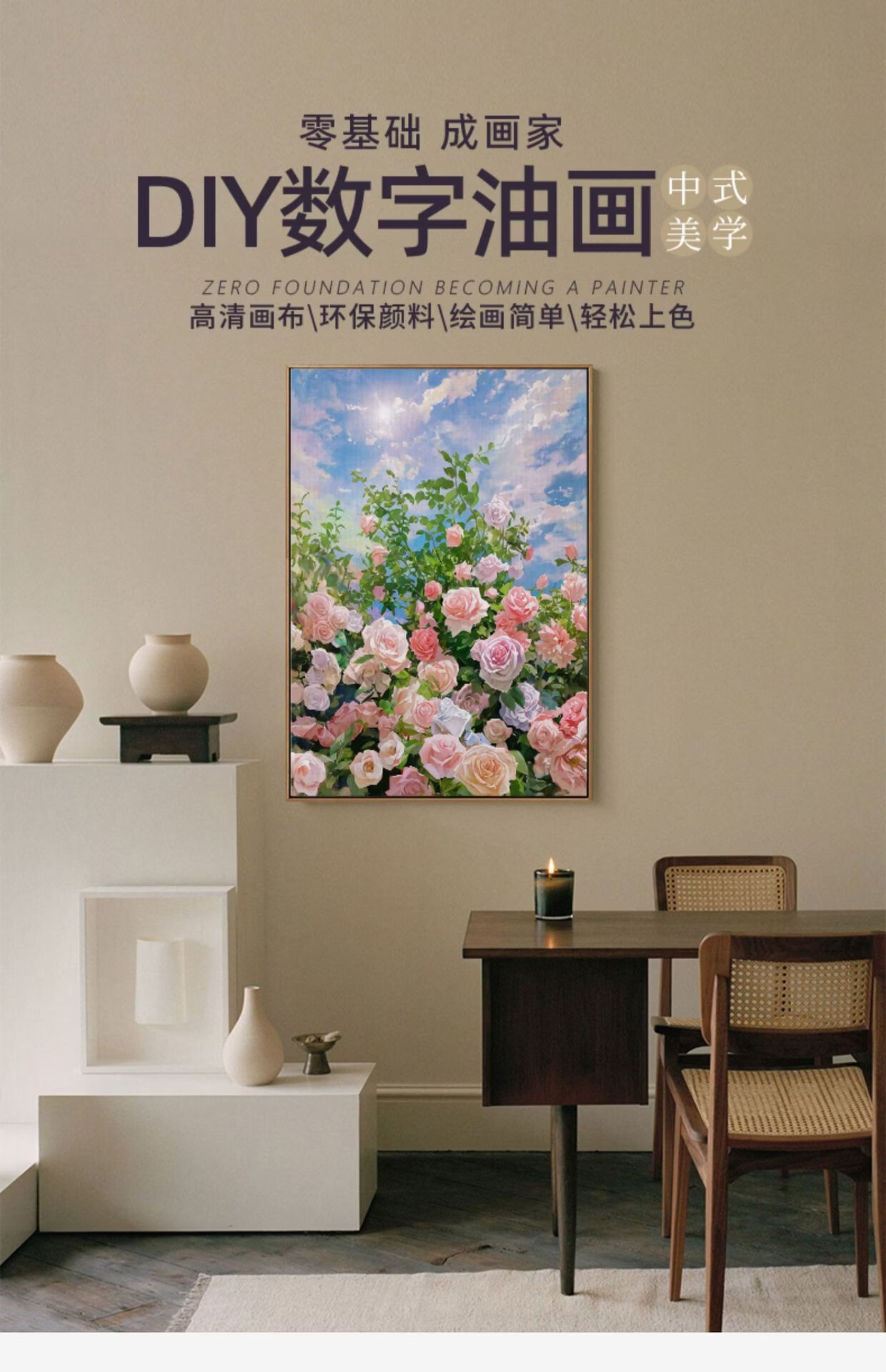 2026数字油画diy新中式花卉油彩画手工涂色解压丙烯装饰画 帆船花开(全套绘画工具+挂墙配件 75cm60*