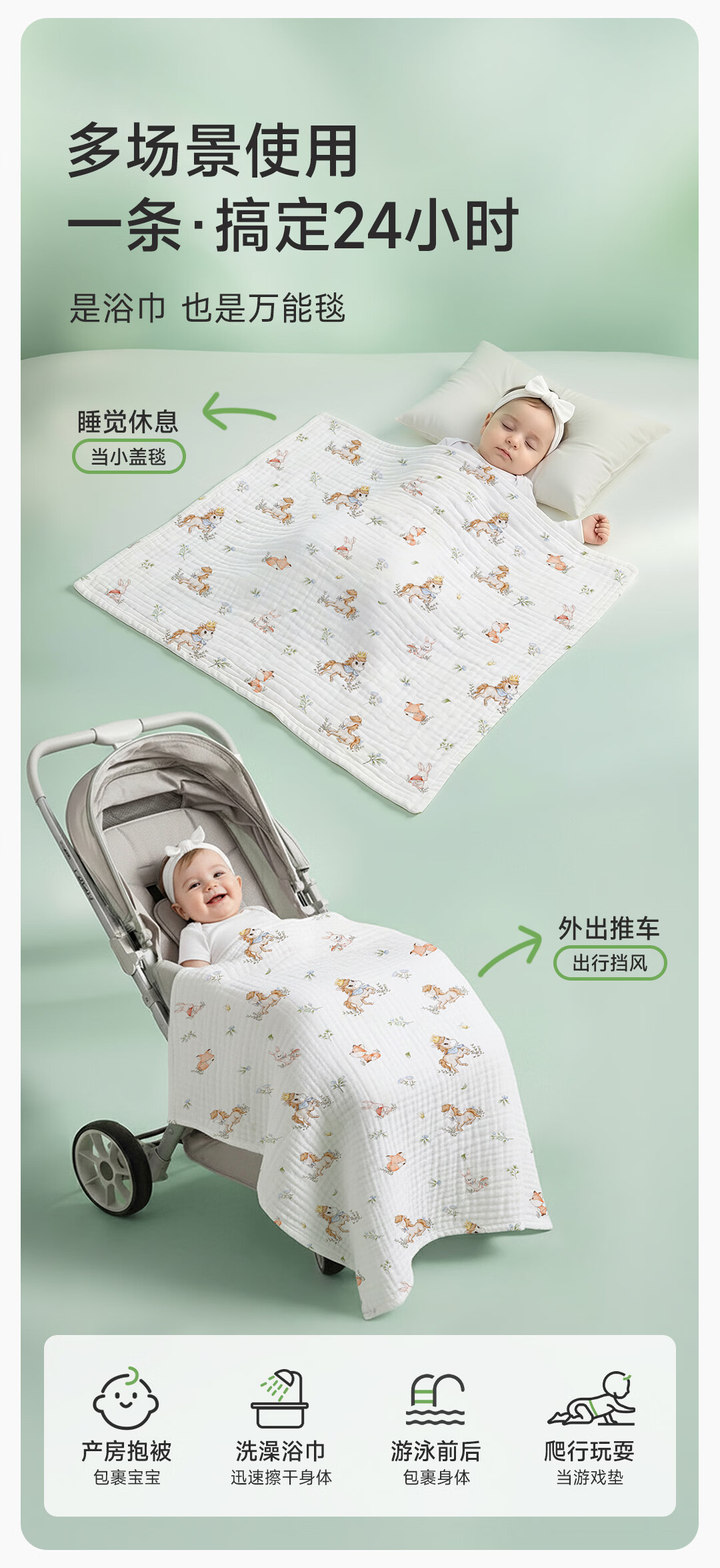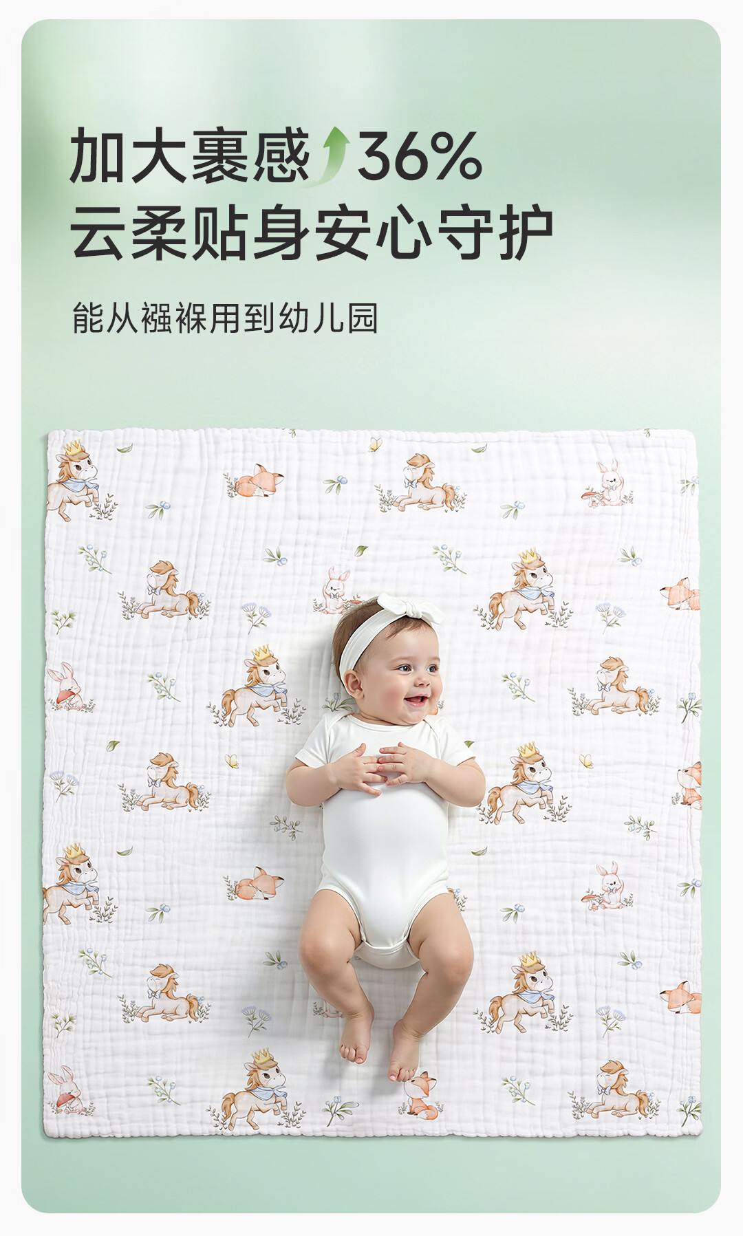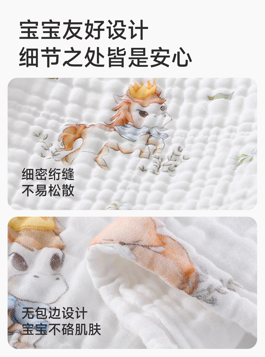 童葵(tongkui)纱布浴巾婴儿a类6层纯棉新生儿专用吸水速干不掉毛儿童6-12岁裹巾 100%全棉-小马贝贝(加大加厚 柔软蓬松) 90x90cm