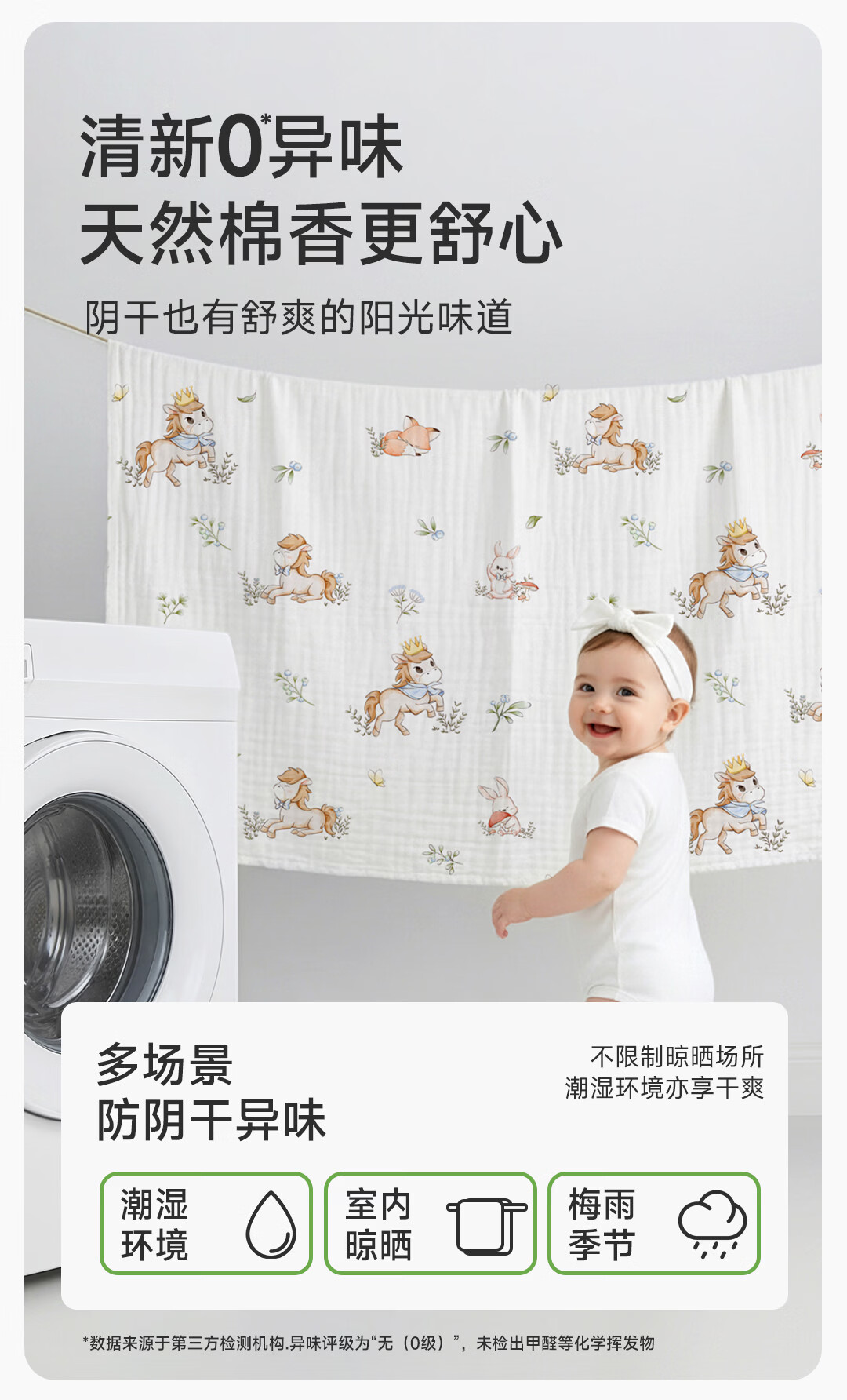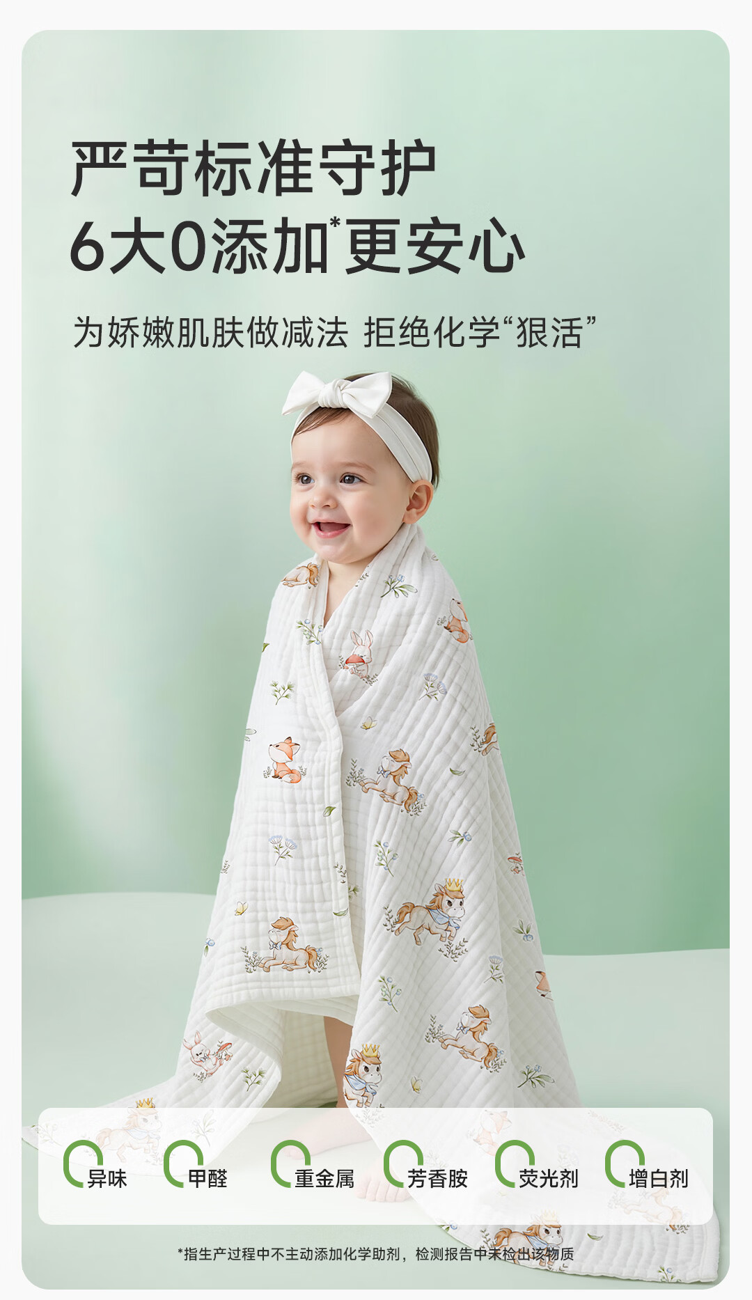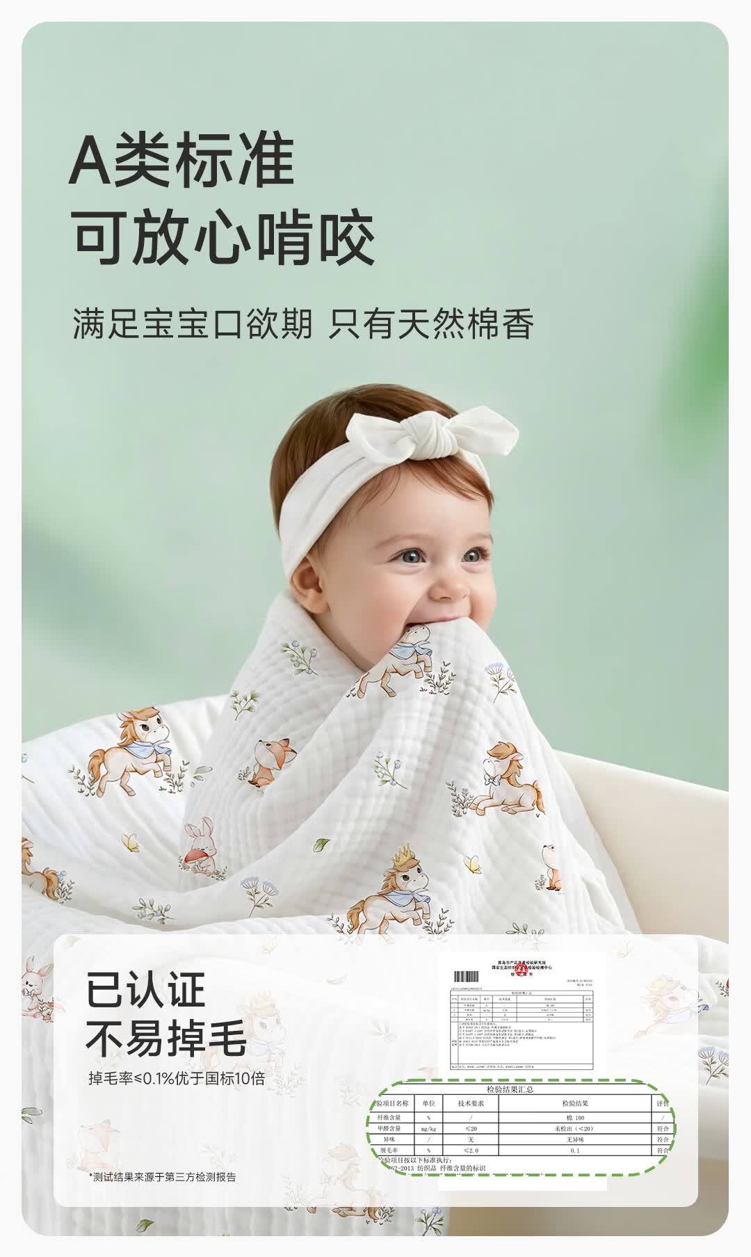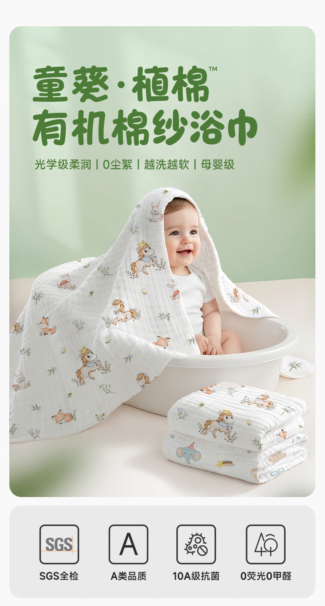 童葵(tongkui)纱布浴巾婴儿a类6层纯棉新生儿专用吸水速干不掉毛儿童6-12岁裹巾 100%全棉-小马贝贝(加大加厚 柔软蓬松) 90x90cm