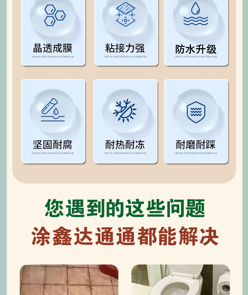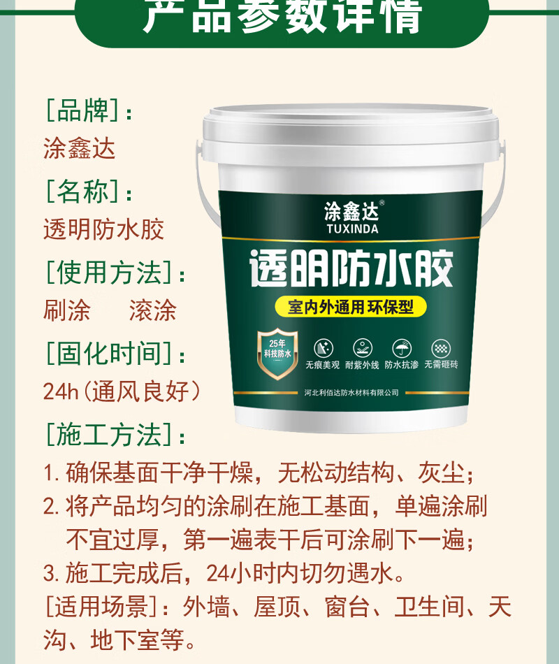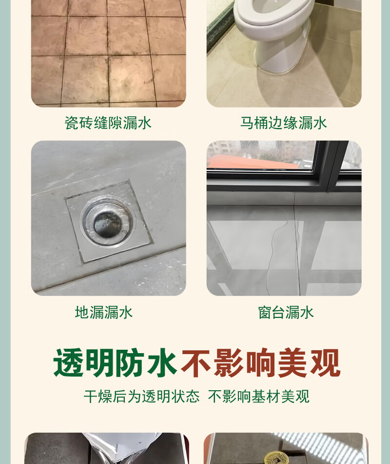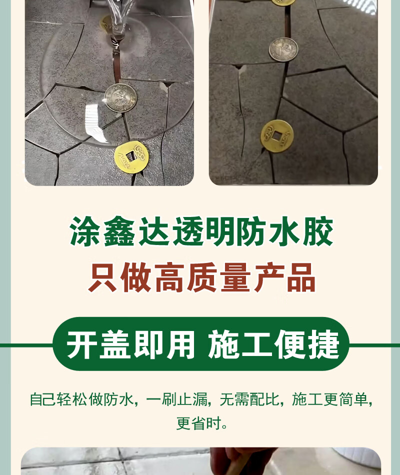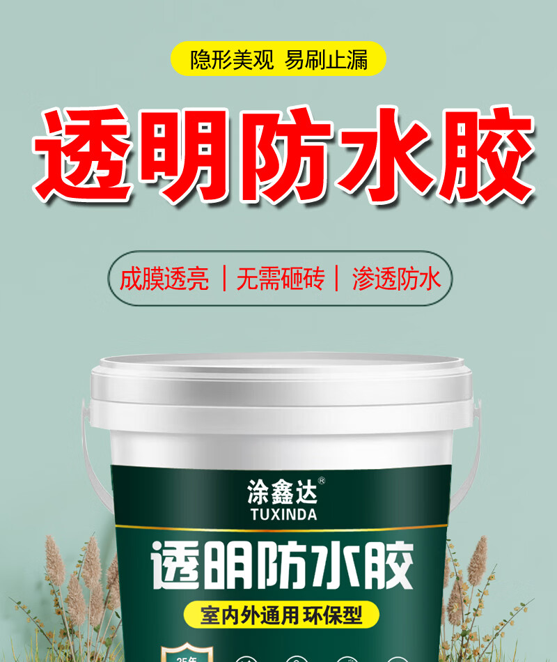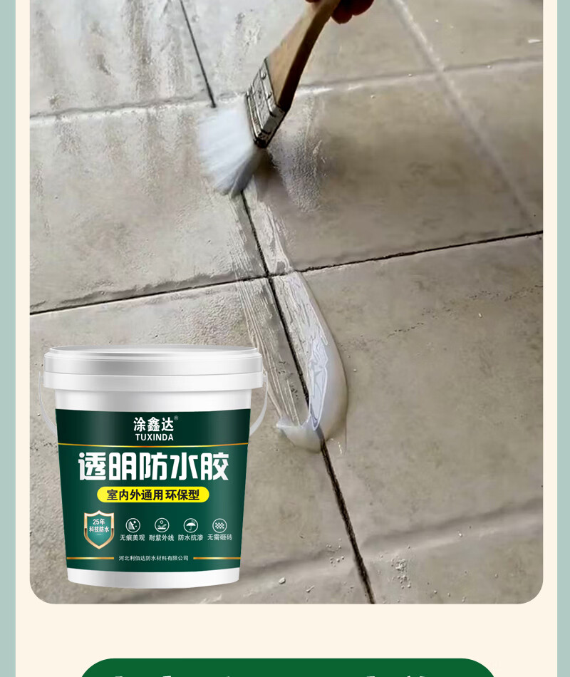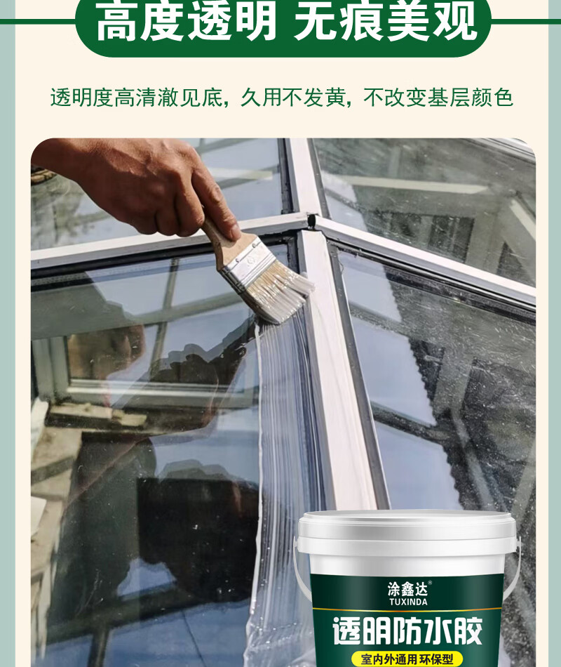 涂鑫达透明防水胶卫生间厨房防滑耐磨免砸瓷砖防水涂料房顶裂缝补漏剂 透明防水胶 1KG