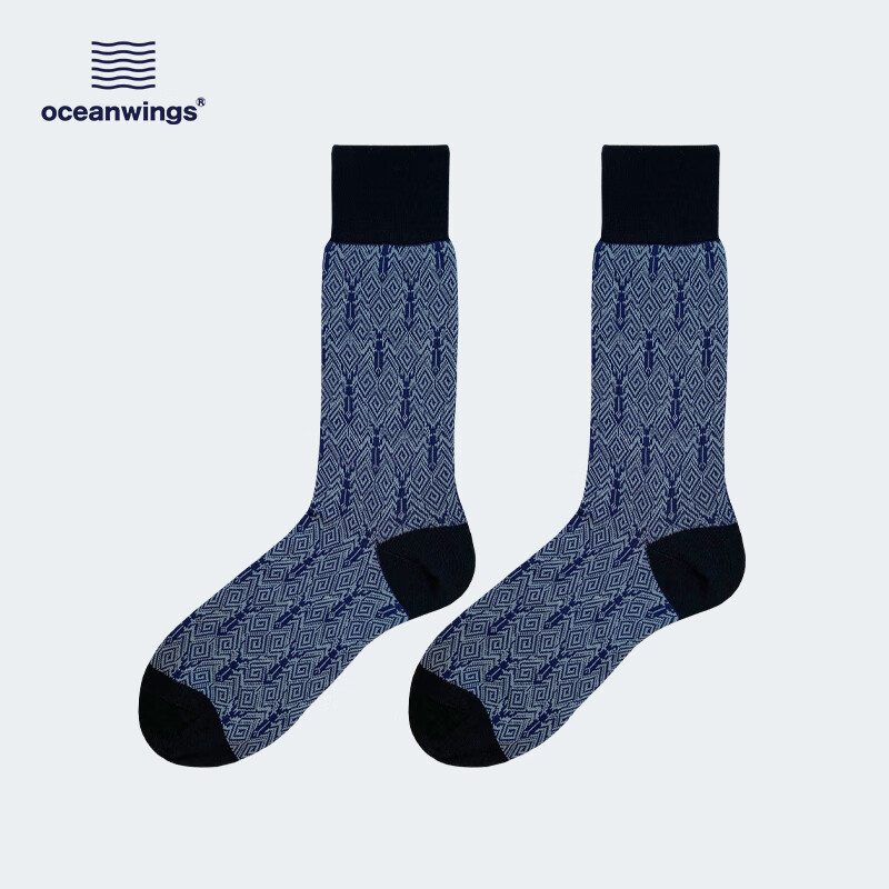 oceanwings男士几何图案商务休闲袜子 吸汗透气优雅正装皮鞋棉袜 甲虫几何 40-45