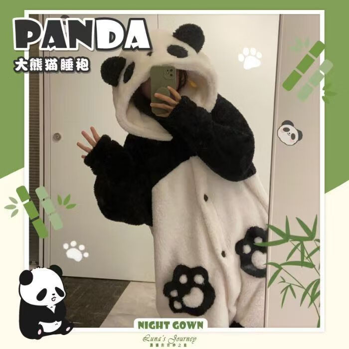 珊瑚绒熊猫睡衣冬季加绒加厚卡通可爱保暖家居服800克睡袍两件套 熊猫睡袍+裤子 高品质 XL