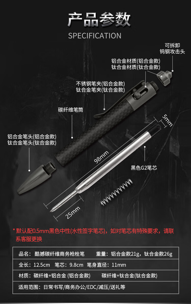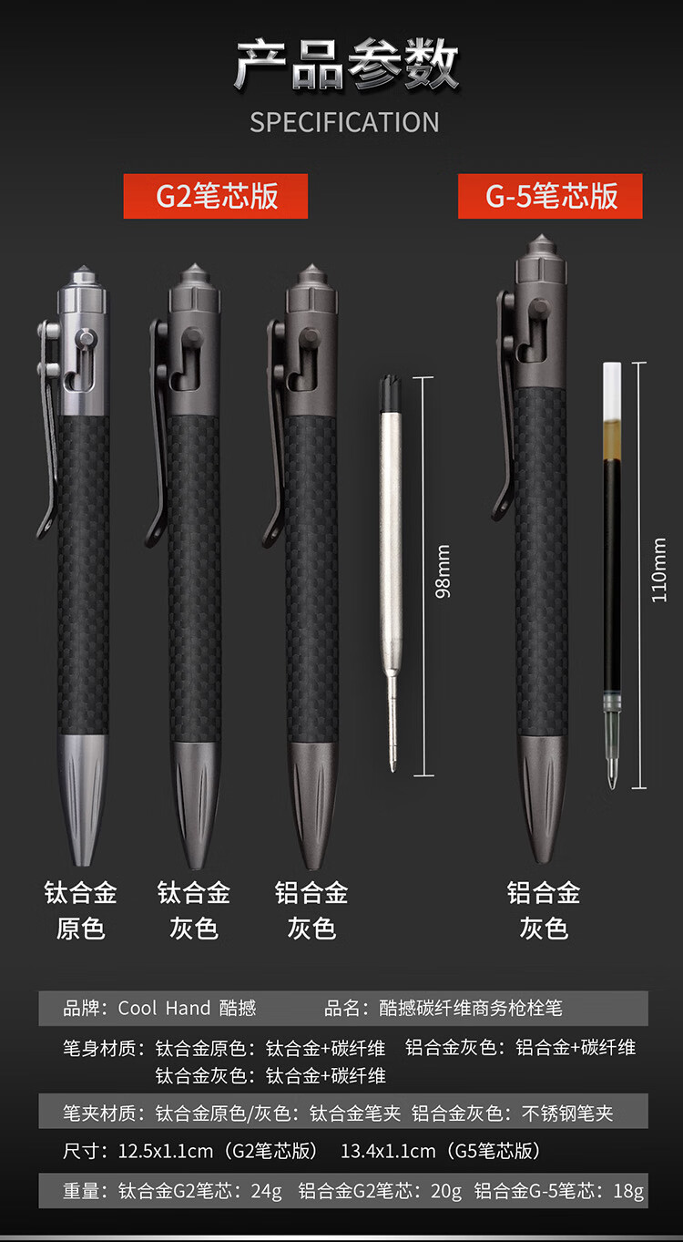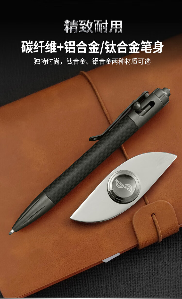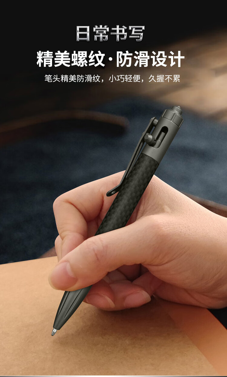 酷撼战术笔钛合金防身钨钢破窗随身商务签字笔户外合法武器防狼中性笔 G5碳纤维+铝合金 送三支笔芯