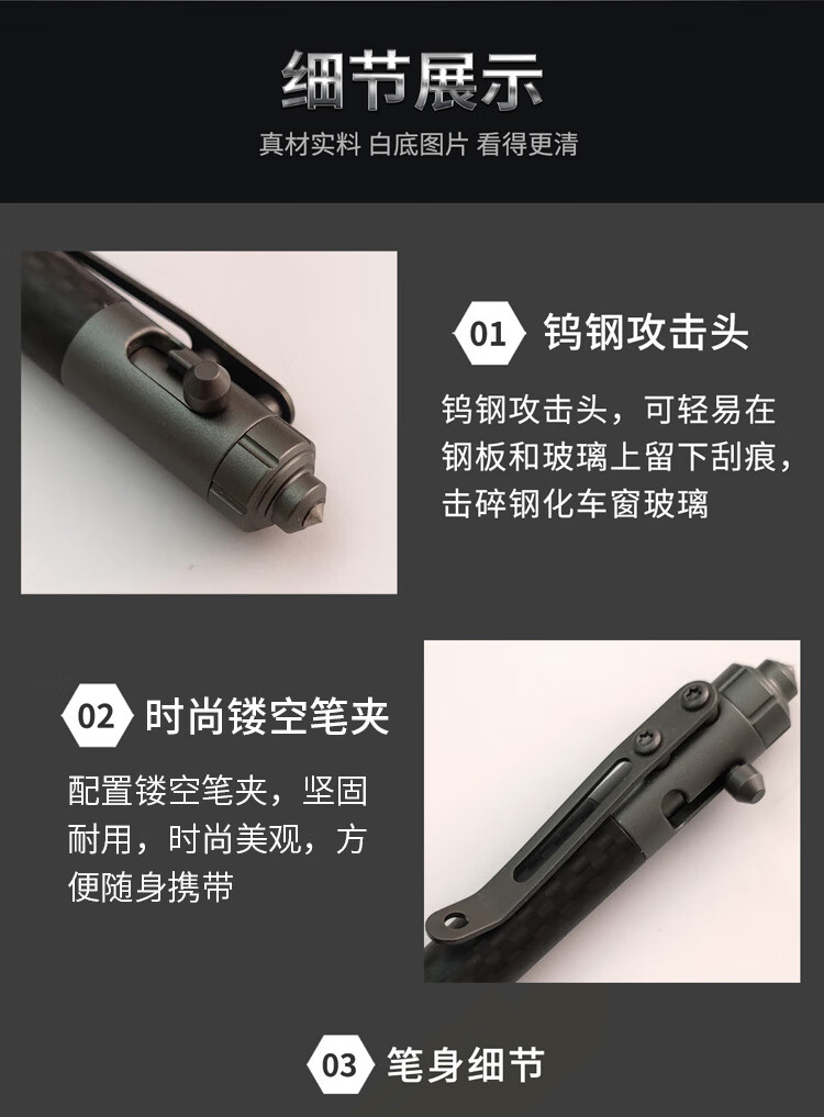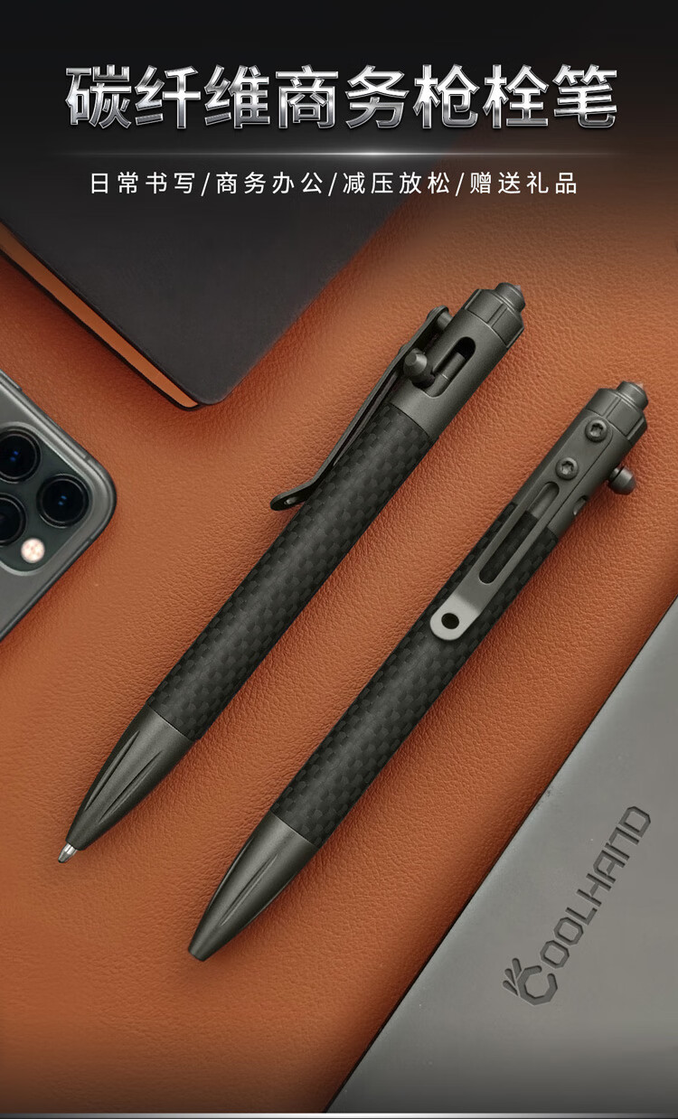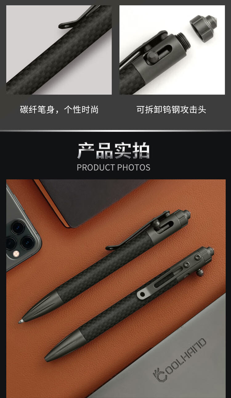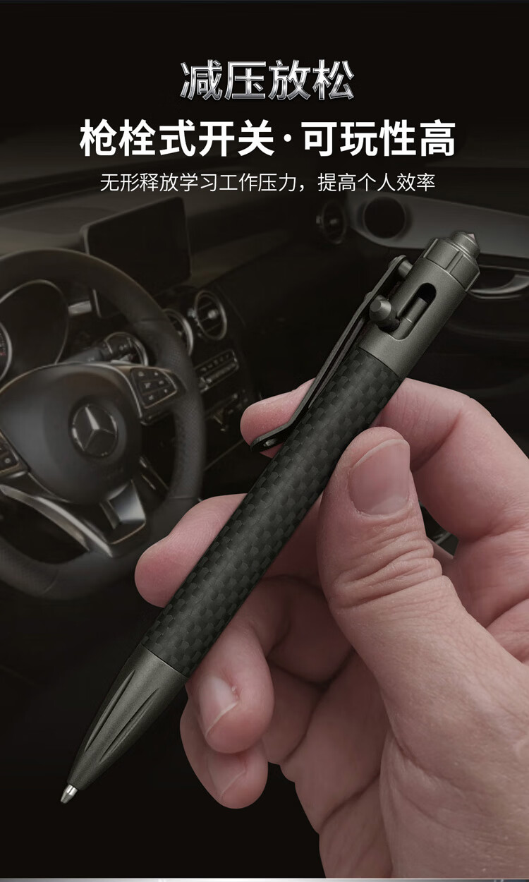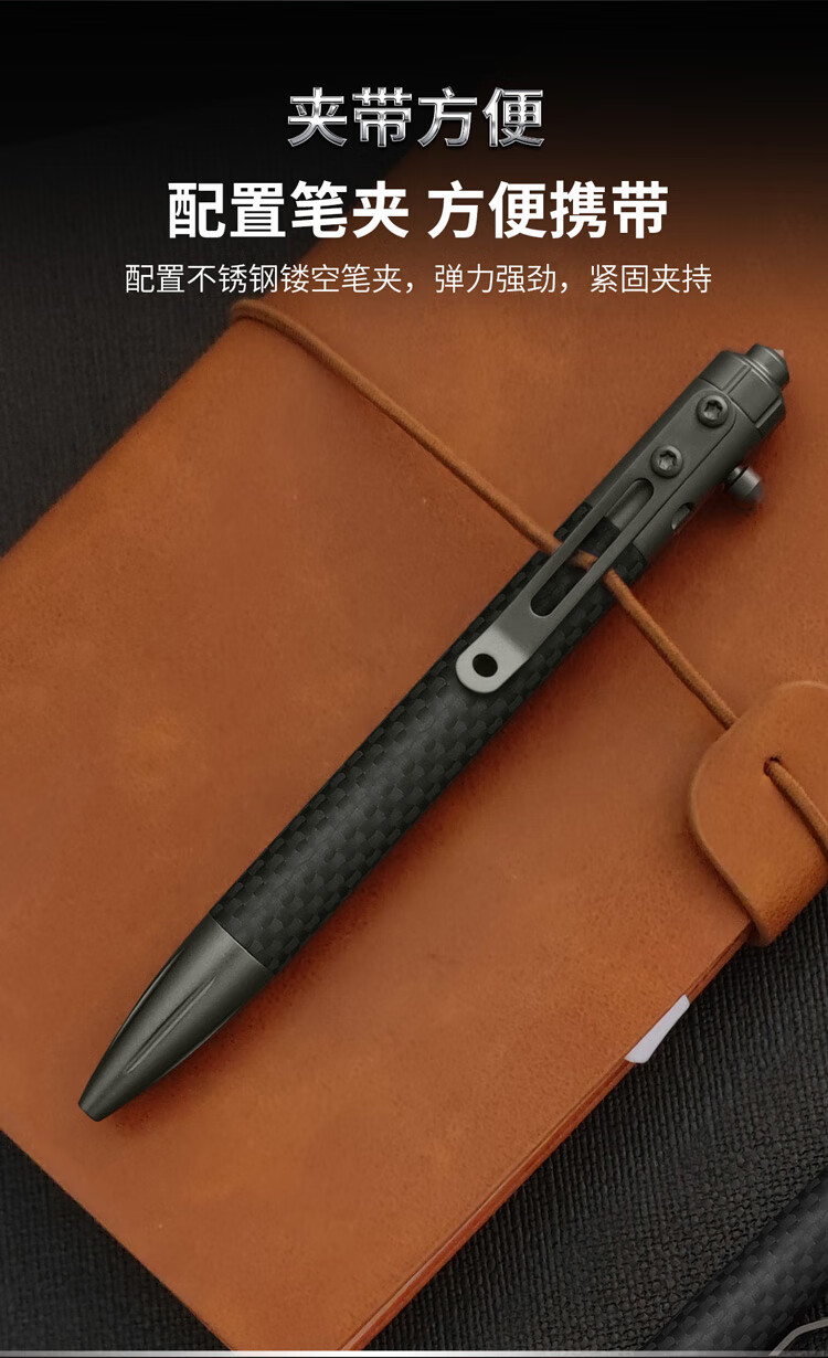 酷撼战术笔钛合金防身钨钢破窗随身商务签字笔户外合法武器防狼中性笔 G5碳纤维+铝合金 送三支笔芯