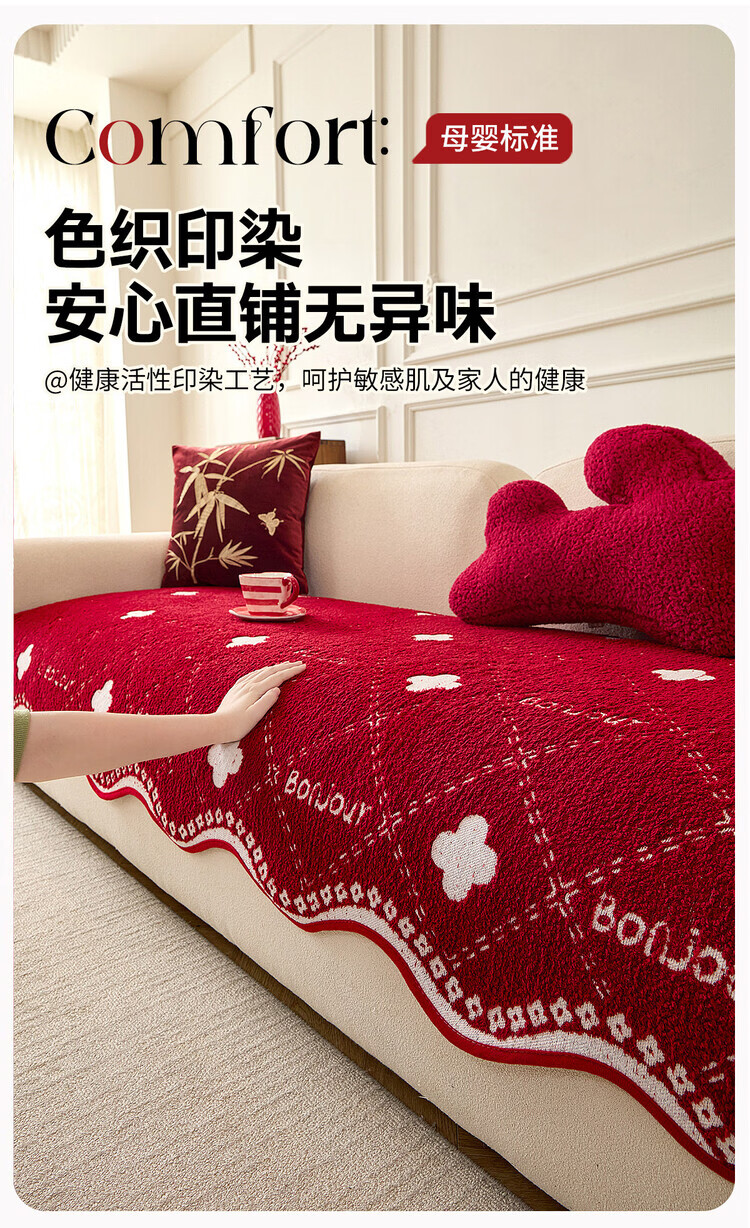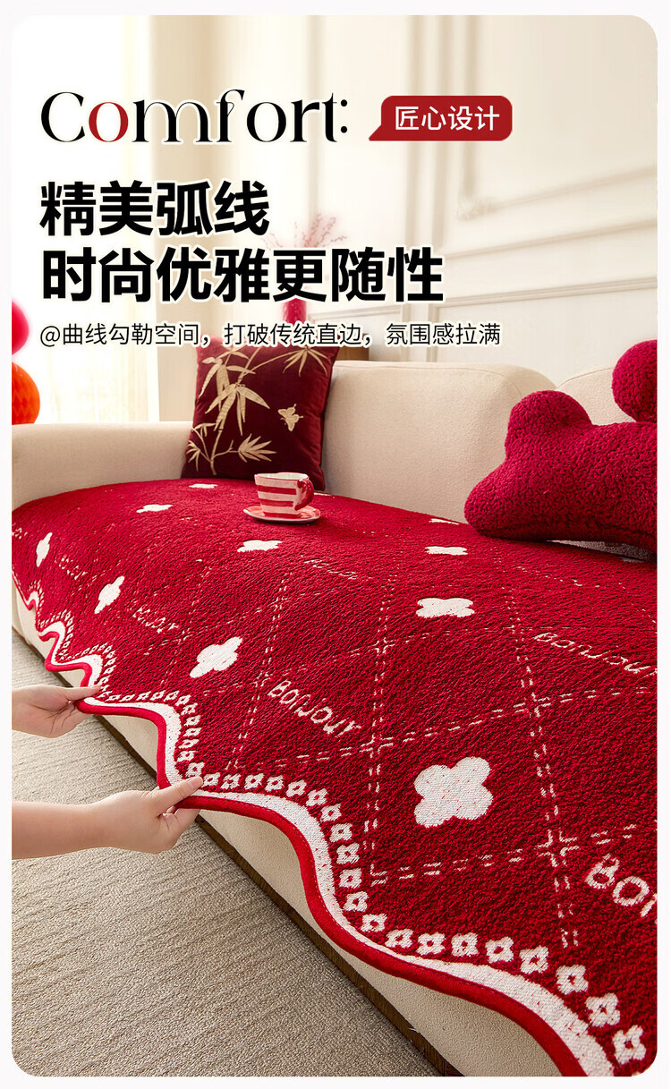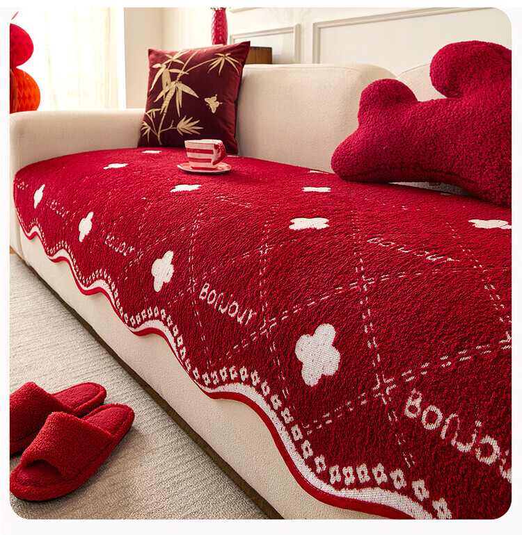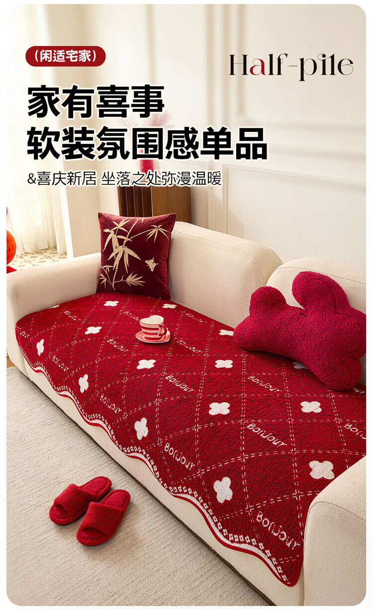 ALPLUME沙发垫2026新款四季通用盖布固定防滑坐垫子红色喜庆结婚沙发毛毯 吹雪-热颂红 70*90cm(扶手/靠背)