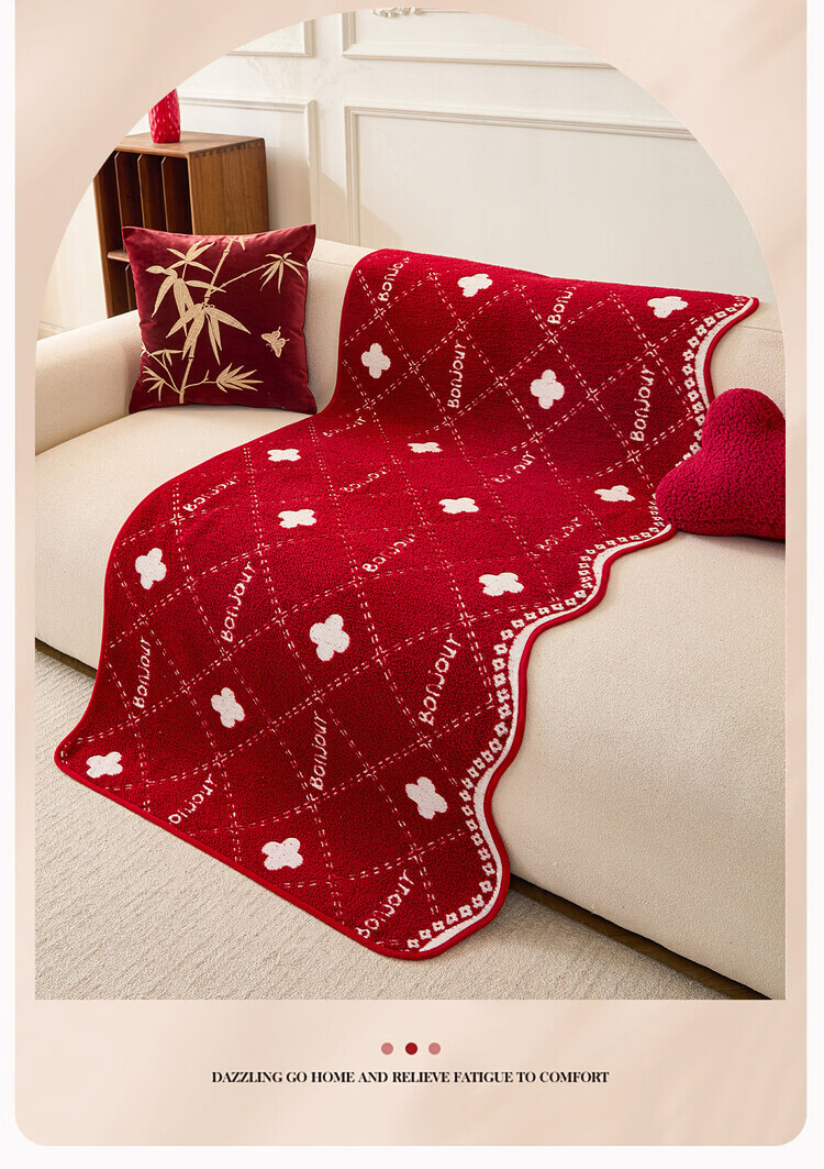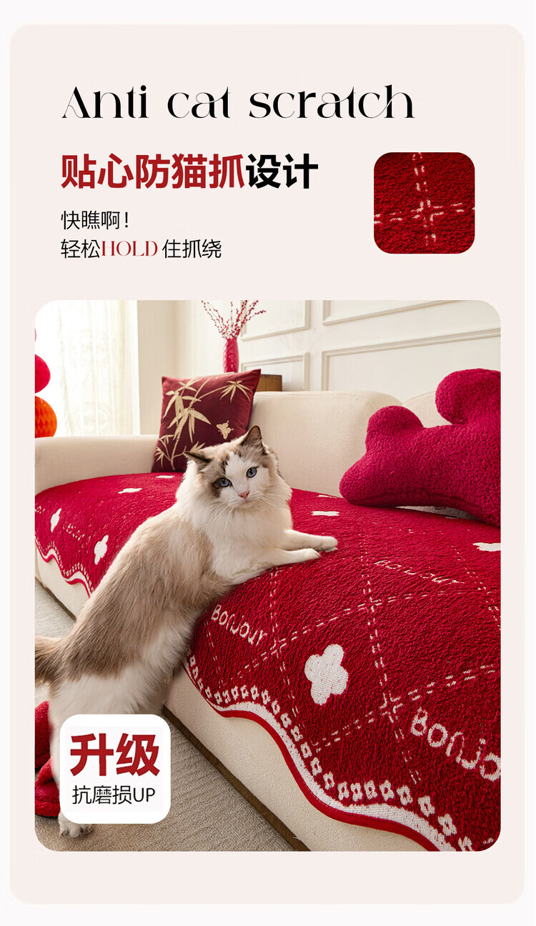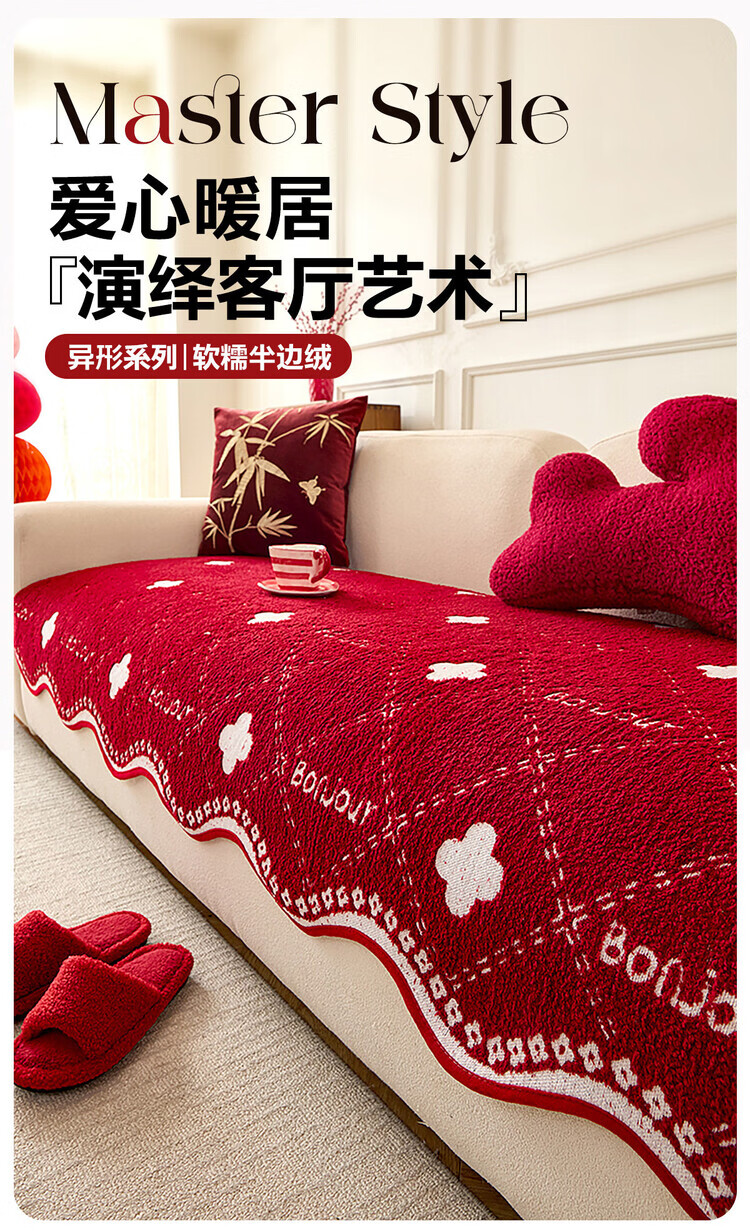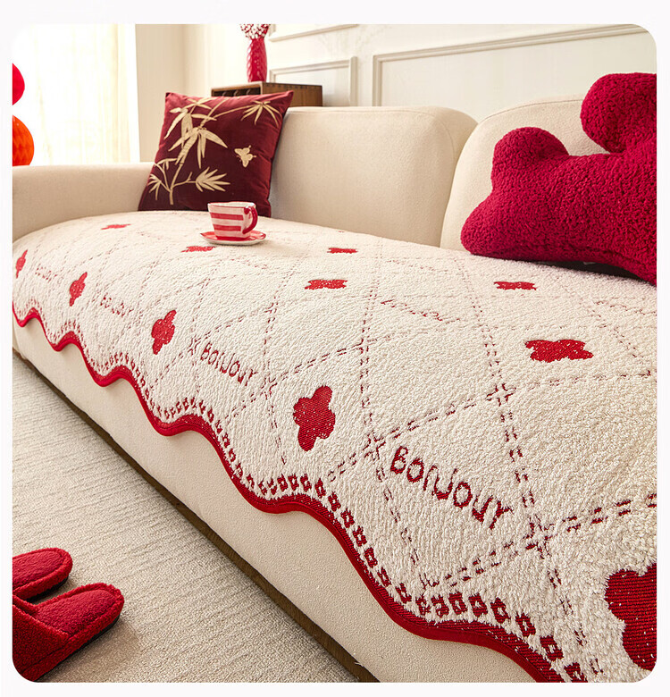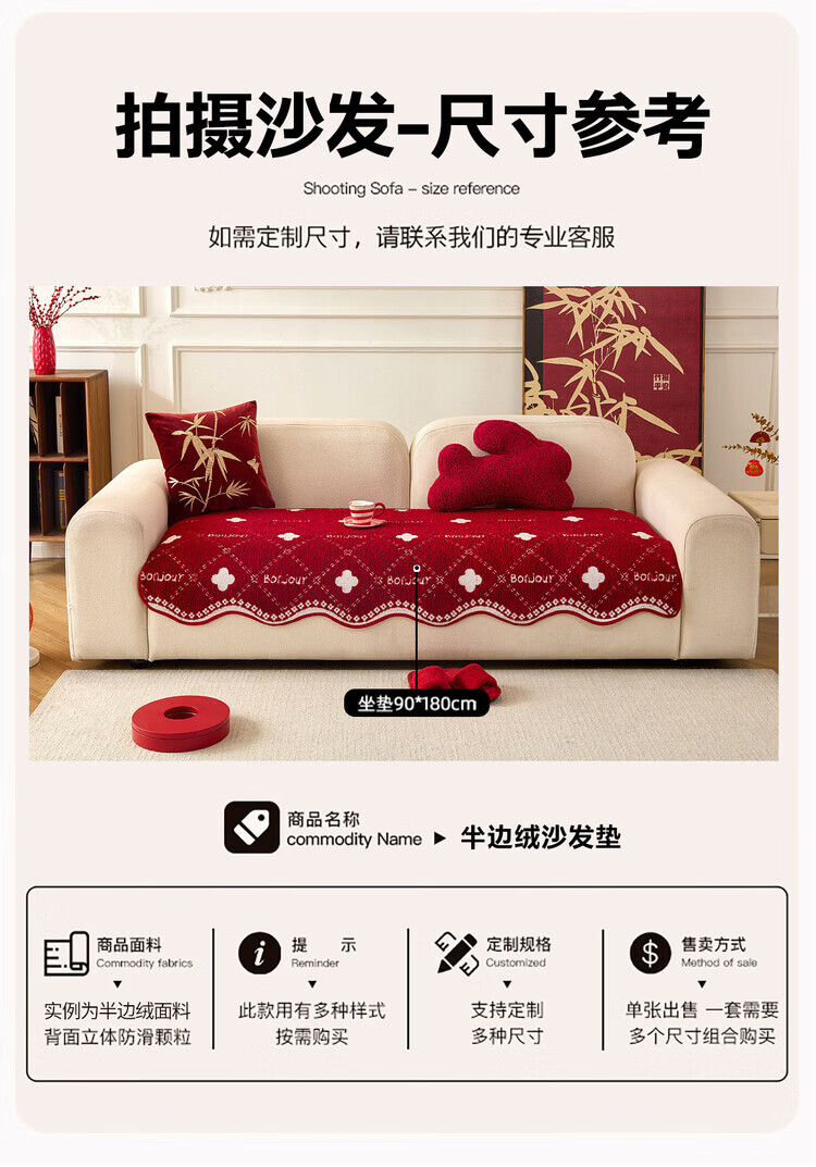 ALPLUME沙发垫2026新款四季通用盖布固定防滑坐垫子红色喜庆结婚沙发毛毯 吹雪-热颂红 70*90cm(扶手/靠背)