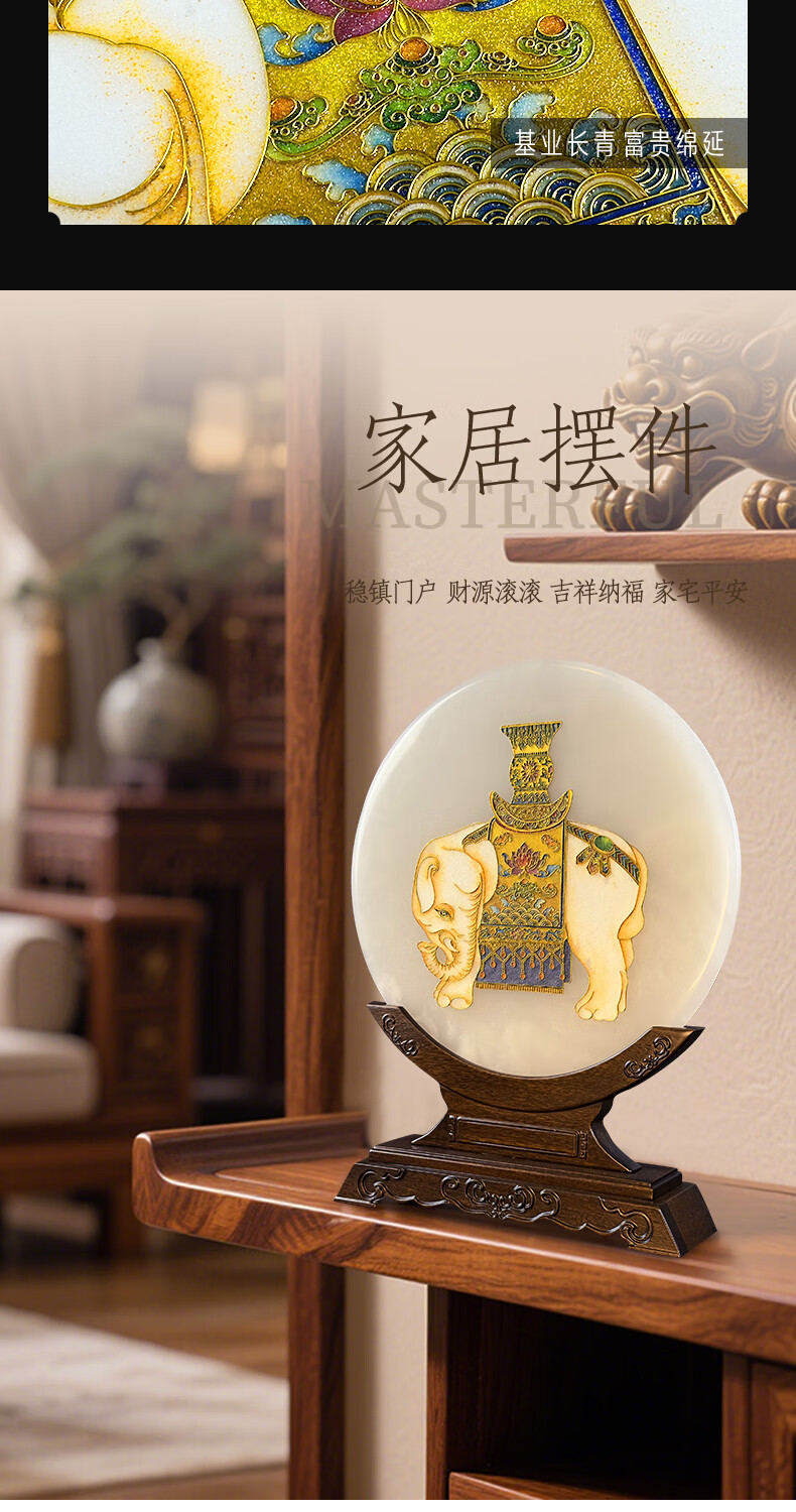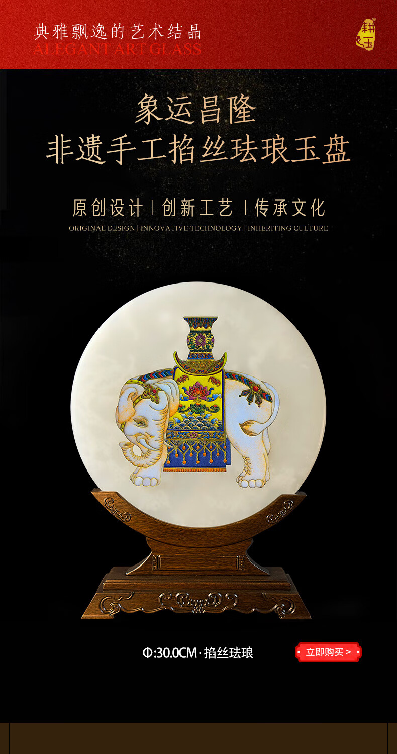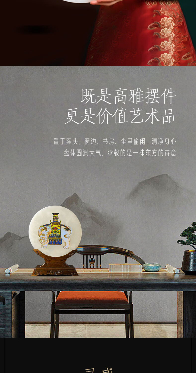耕玉非遗掐丝桌面玉石摆件祝寿送长辈乔迁开业礼物送领导轻奢实用工艺 招财进宝C款-非遗掐丝珐琅玉扣玉盘(玉盘30cm直径)