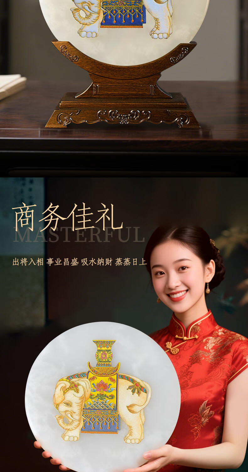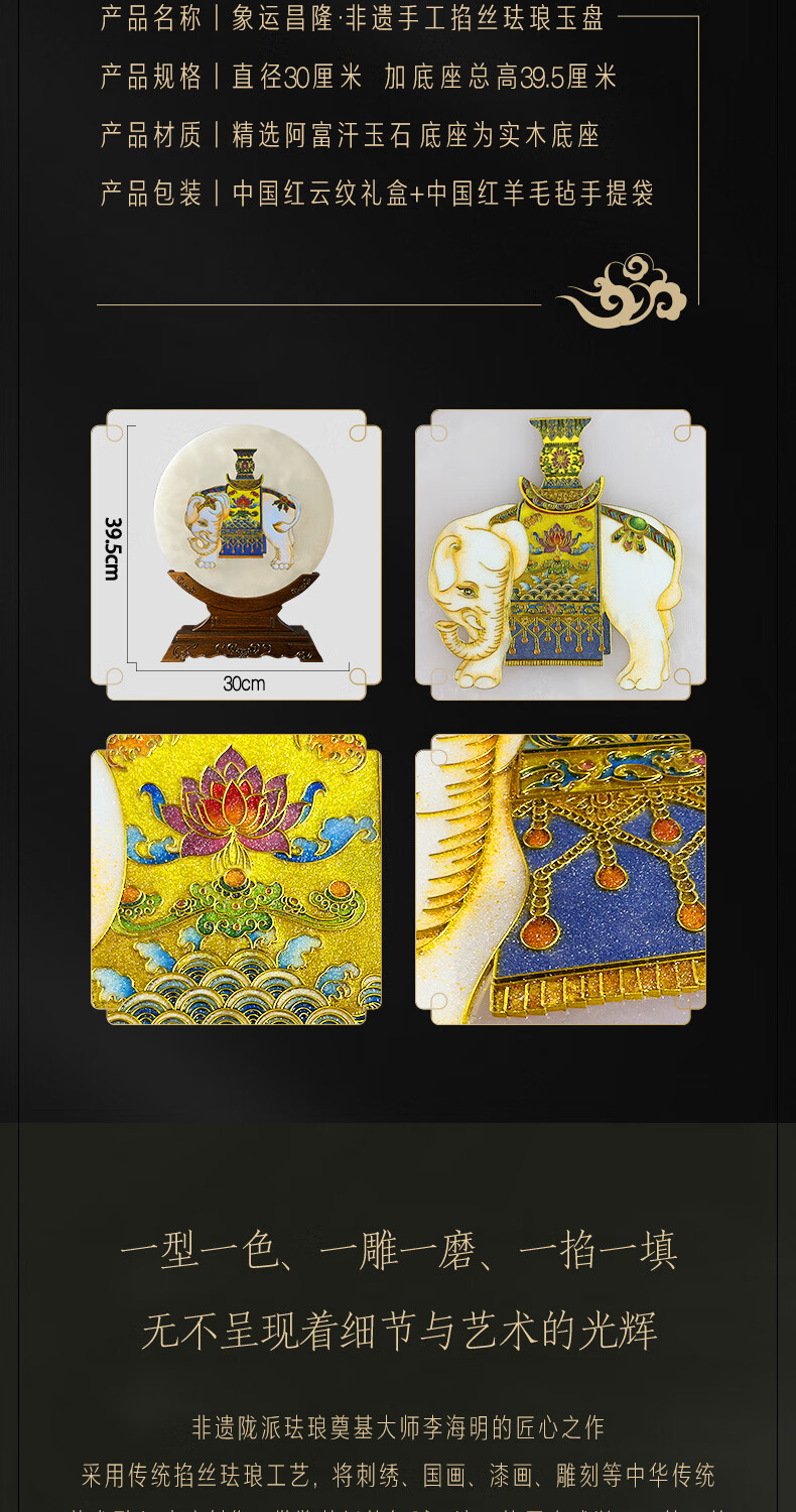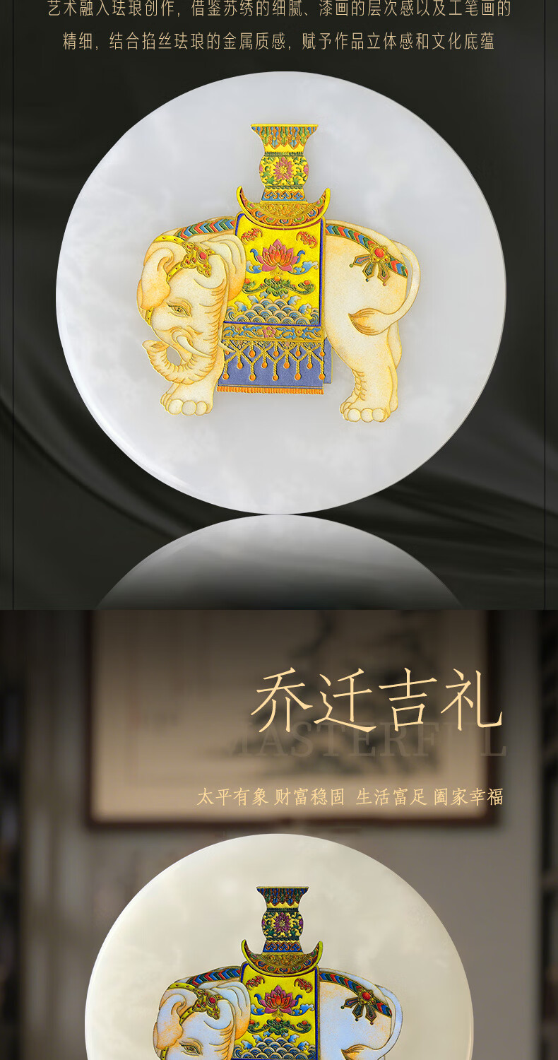 耕玉非遗掐丝桌面玉石摆件祝寿送长辈乔迁开业礼物送领导轻奢实用工艺 招财进宝C款-非遗掐丝珐琅玉扣玉盘(玉盘30cm直径)