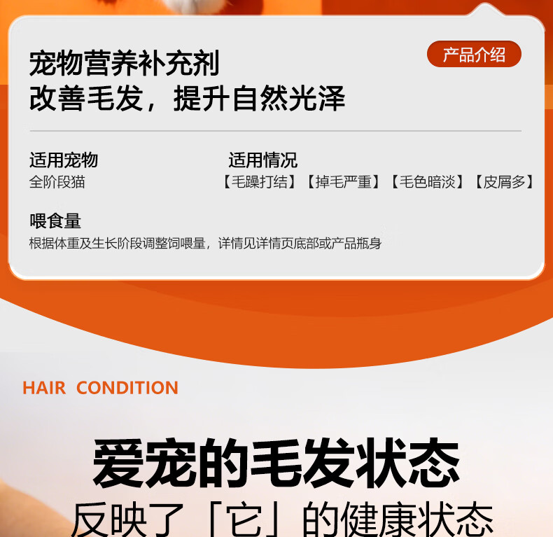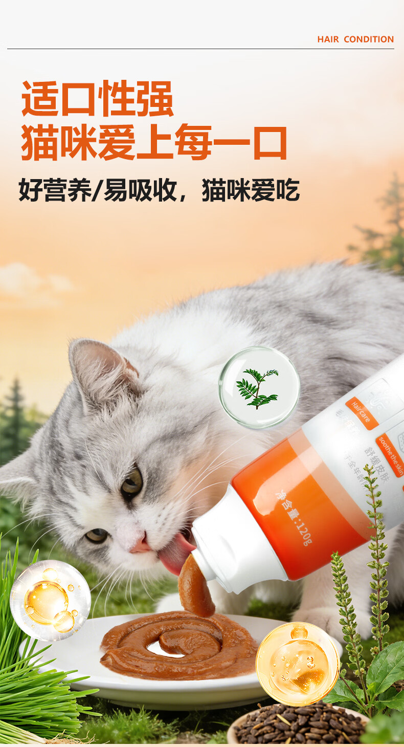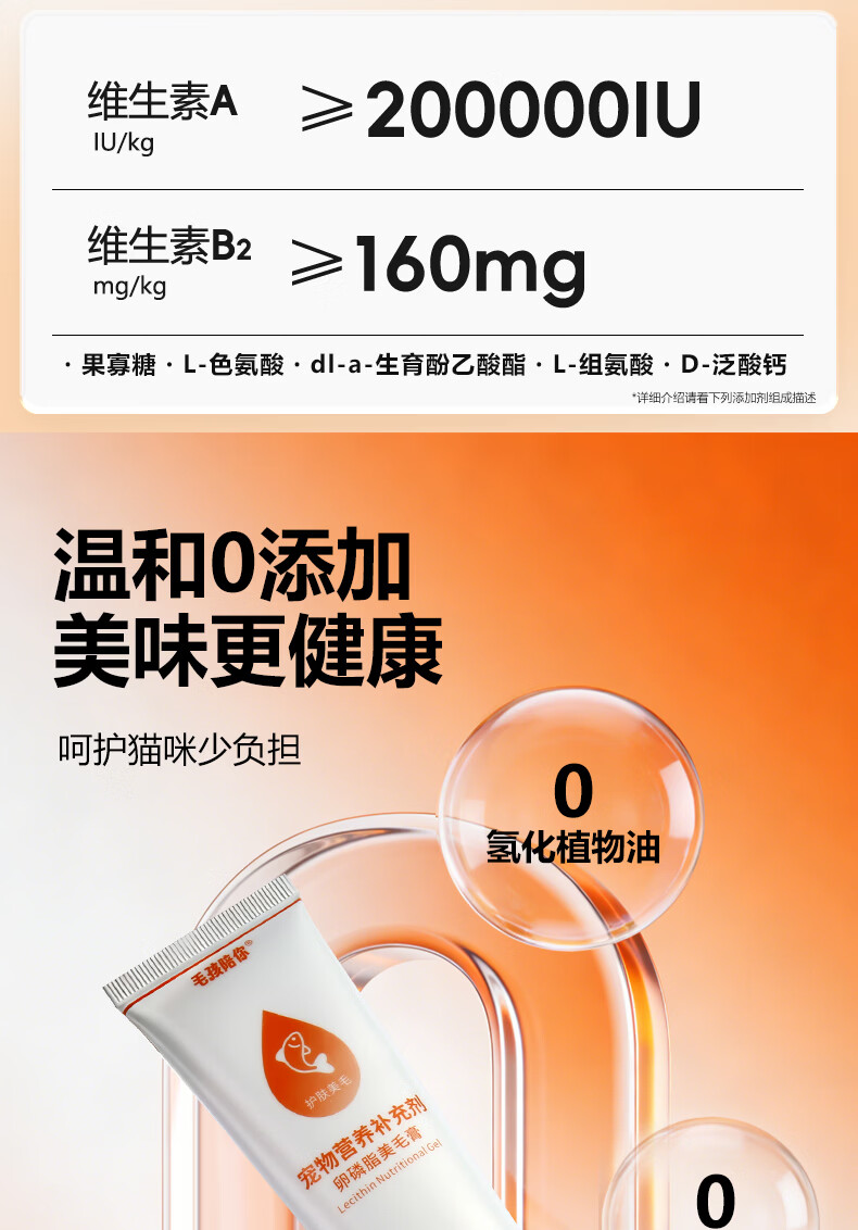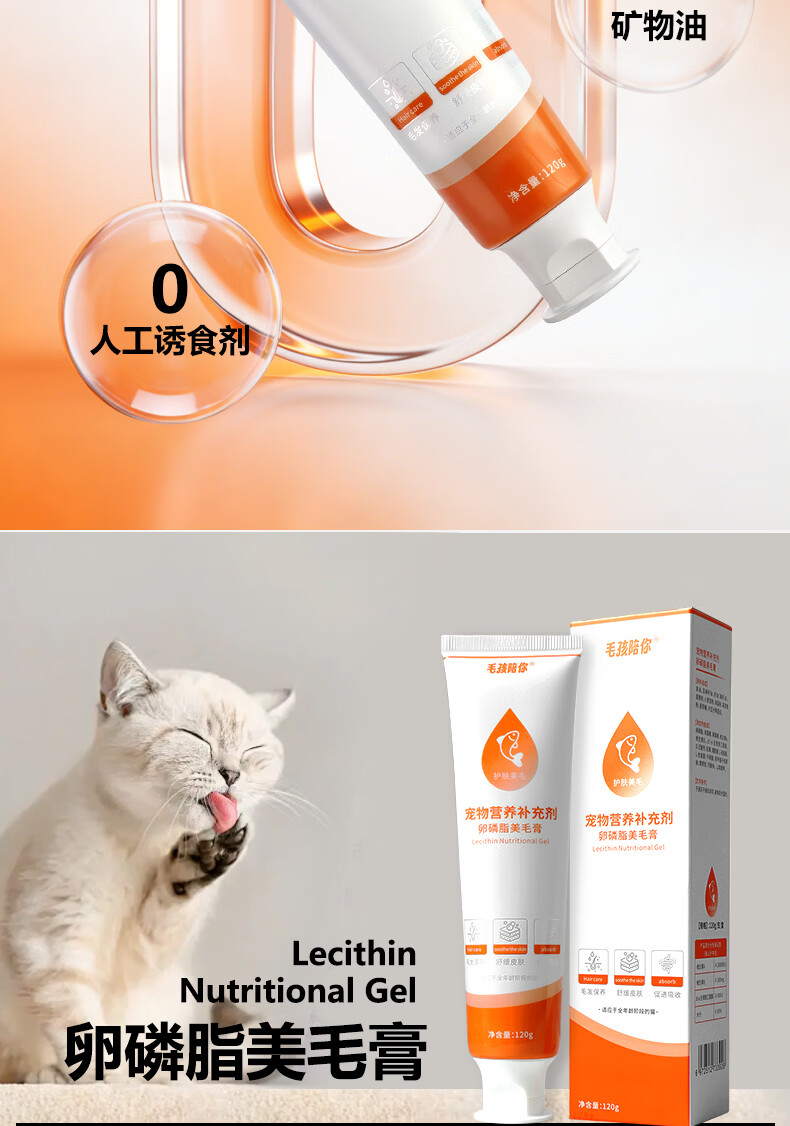 毛孩陪你鱼油猫咪卵磷脂美毛膏磷虾油全阶段猫咪美毛护肤宠物营养补充剂 美毛膏120g 120g*1支
