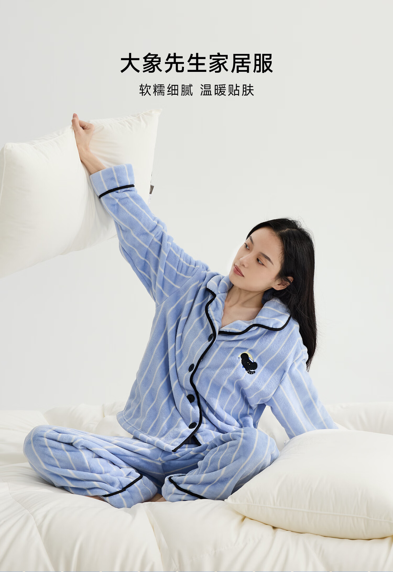 香蜜闺秀GOSO睡衣女舒适柔软棉质可外穿家居服女士亲肤睡衣套装 2333112蓝色 孕哺睡衣 XL 170