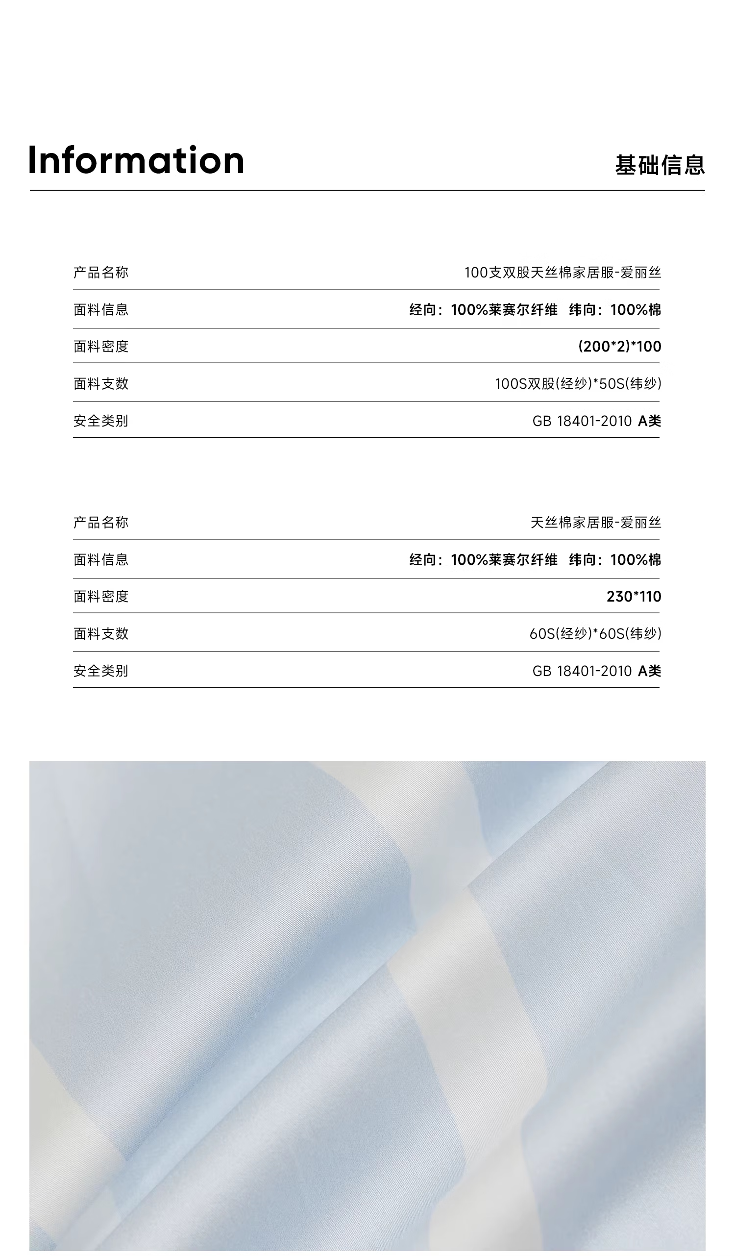 MIDO HOUSE铭都家居服套装新款天丝棉春夏季秋冬款亲肤情侣睡衣女生亲肤舒适 【100支天丝棉】爱丽丝-长款 L