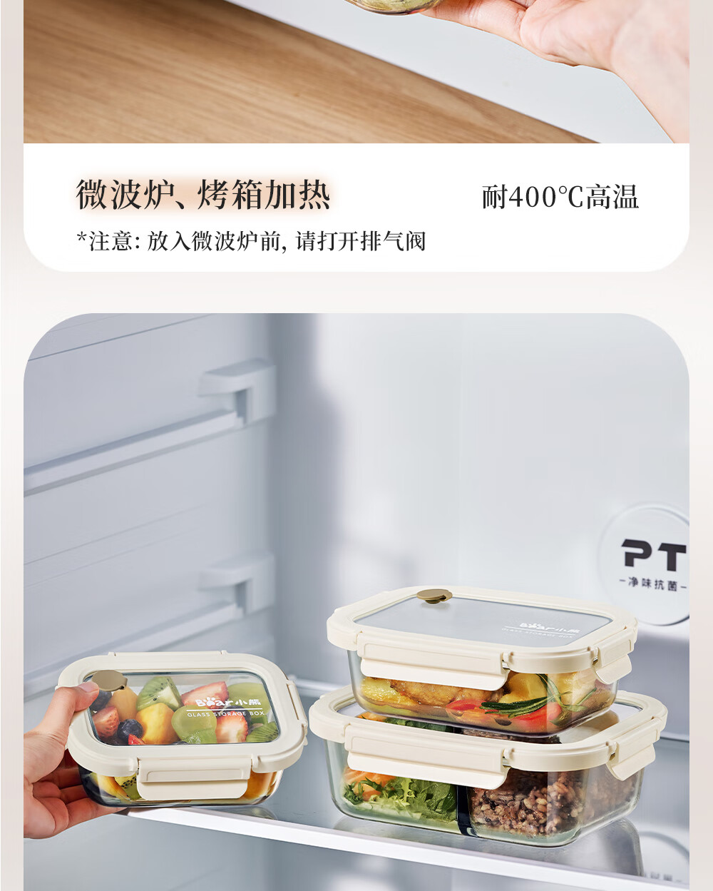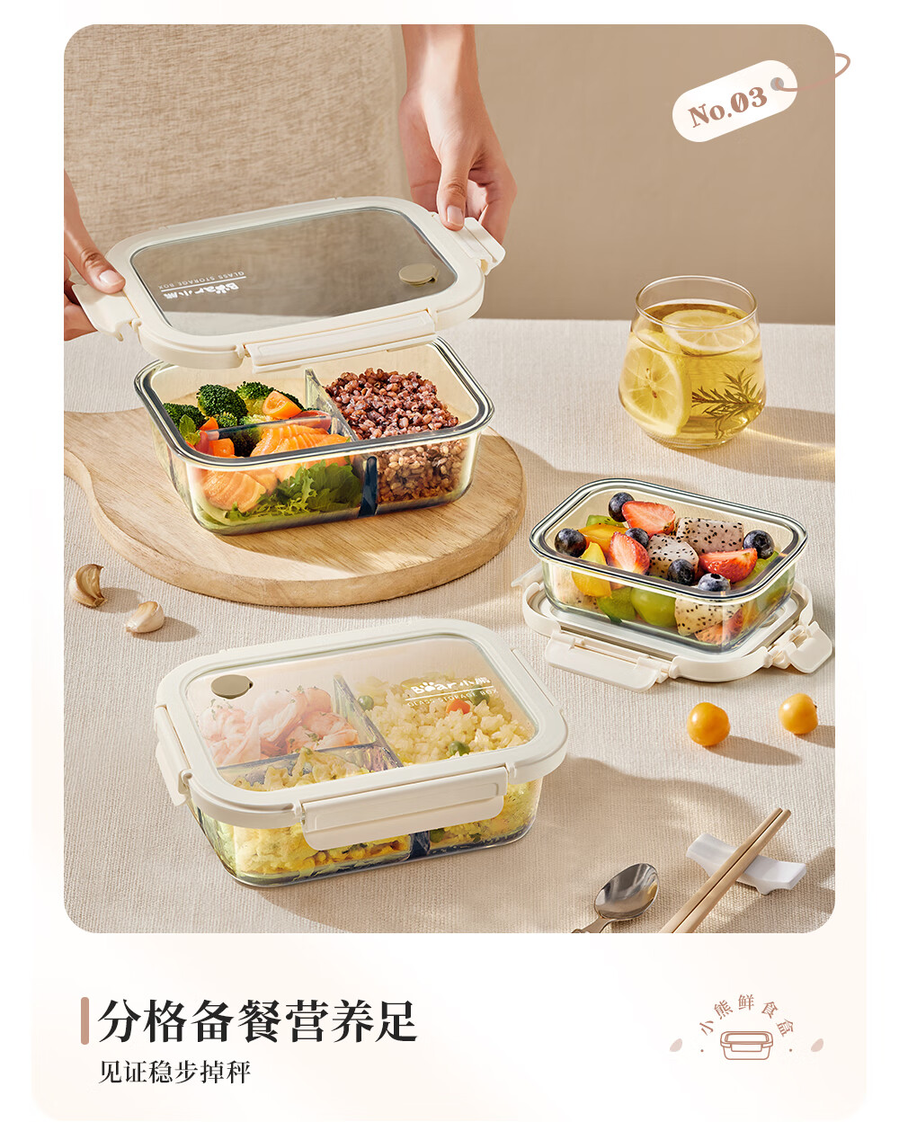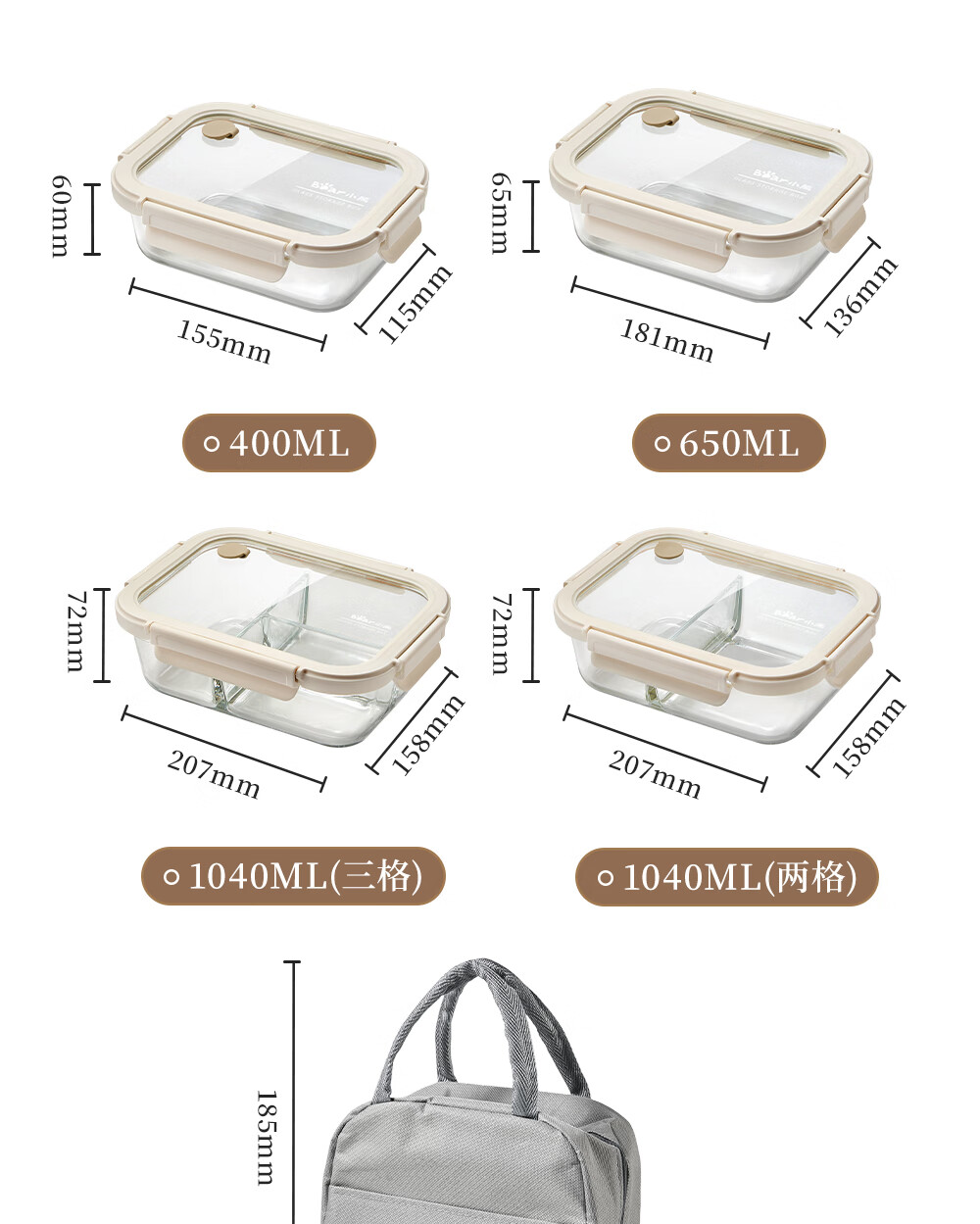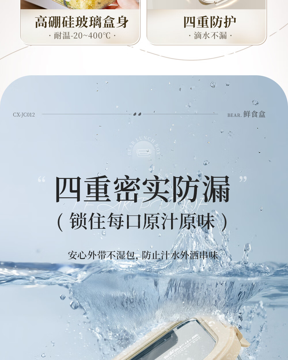 小熊(Bear)高硼玻璃保鲜饭盒可微波炉加热专用餐盒格保鲜保温 CX-JC012-P04