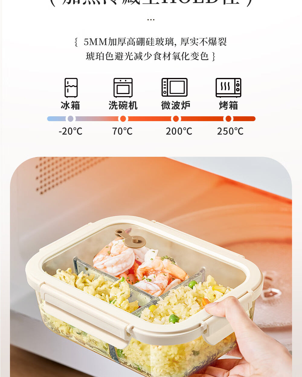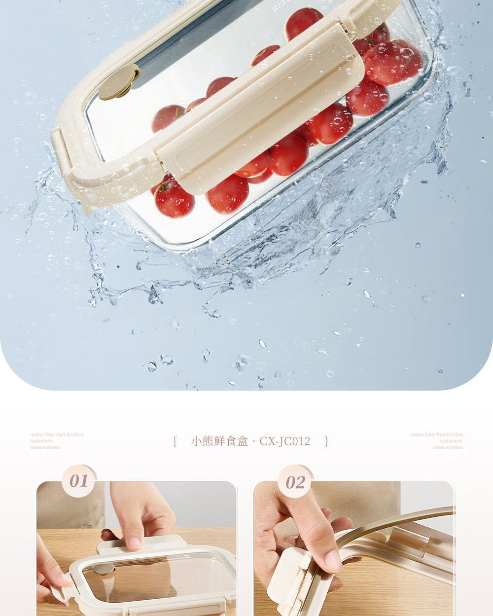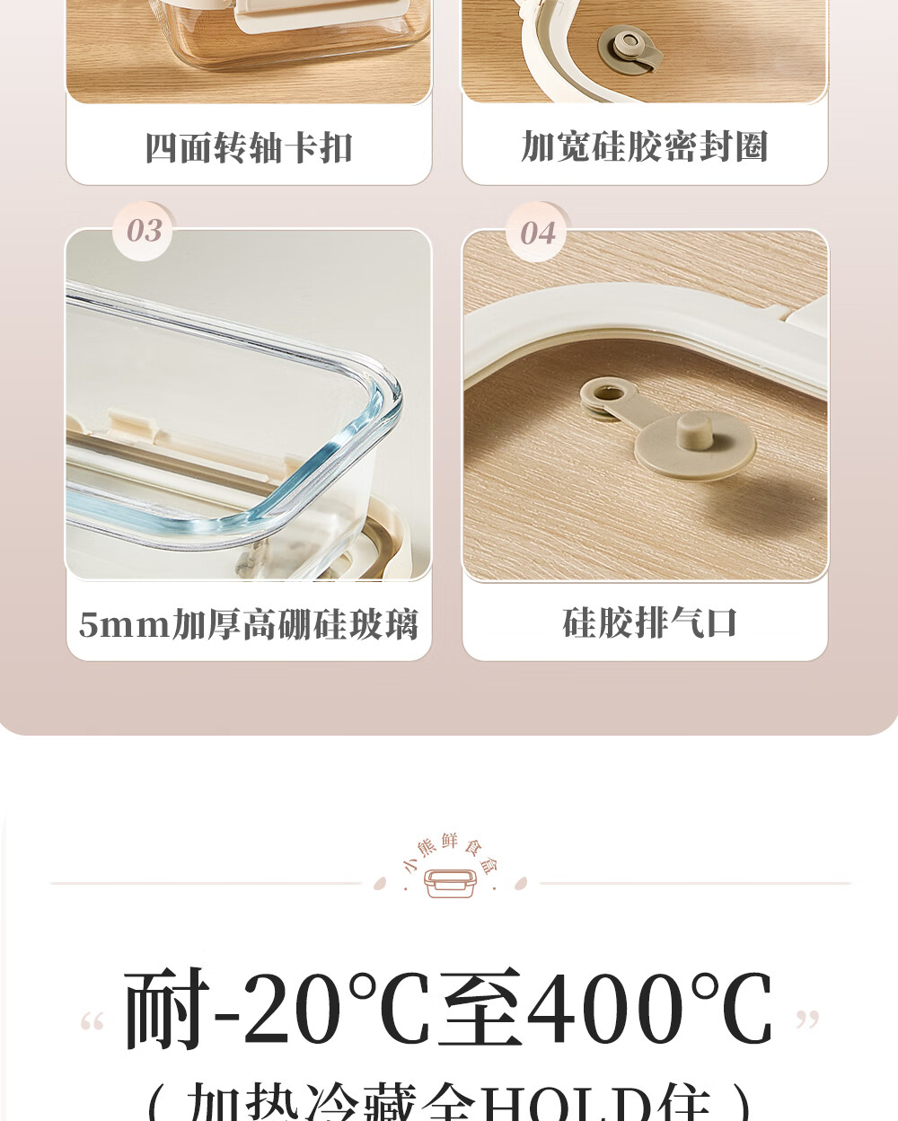 小熊(Bear)高硼玻璃保鲜饭盒可微波炉加热专用餐盒格保鲜保温 CX-JC012-P04