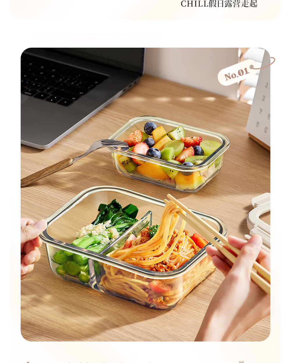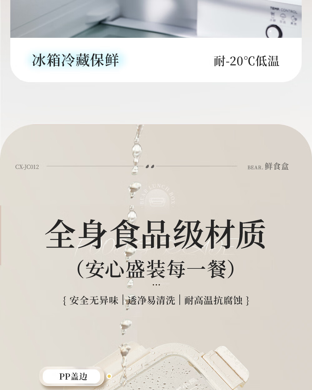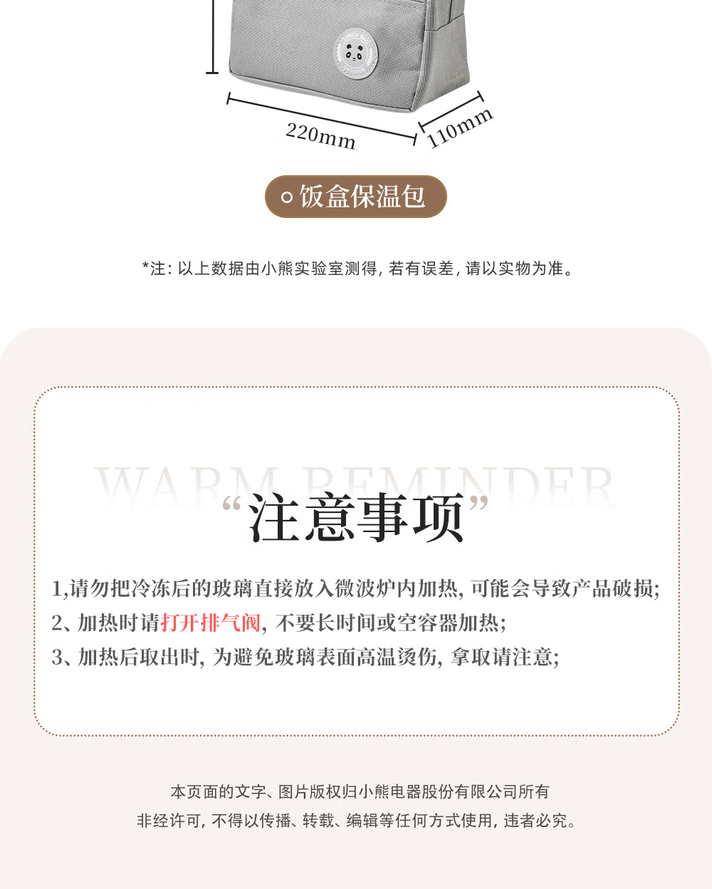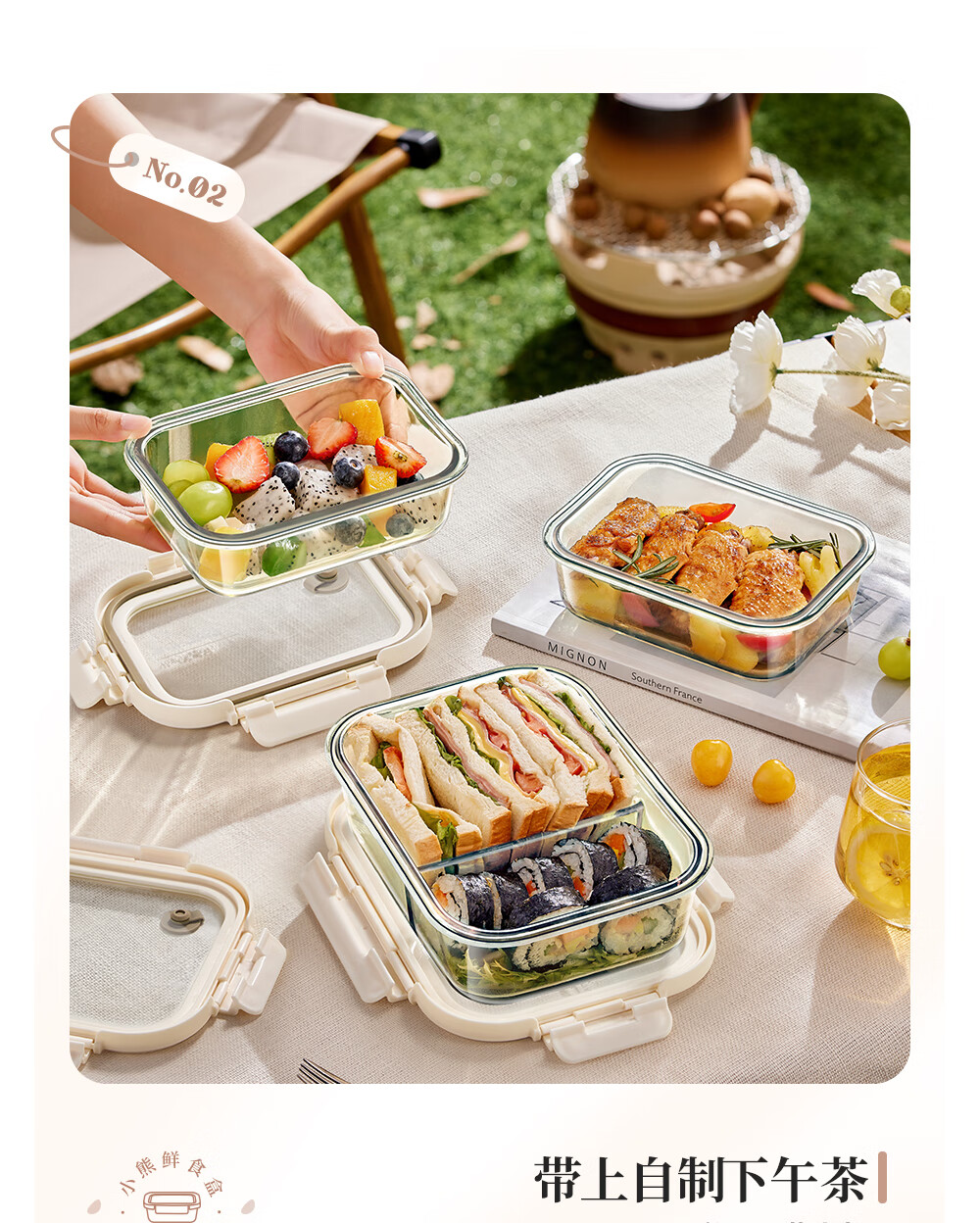 小熊(Bear)高硼玻璃保鲜饭盒可微波炉加热专用餐盒格保鲜保温 CX-JC012-P04