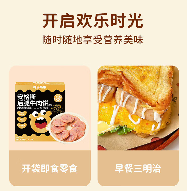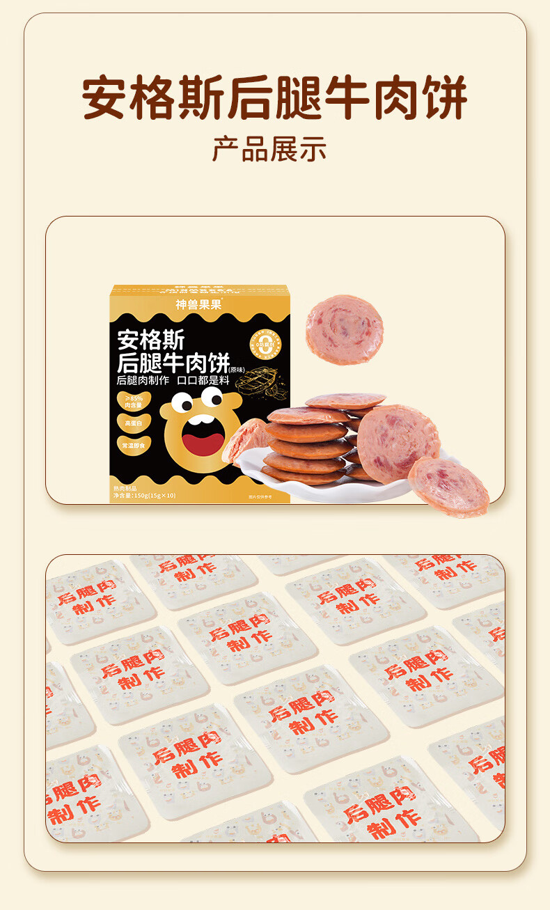 神兽果果牛肉午餐肉宝宝零食营养早餐儿童零食【≥85%安格斯后腿牛肉】 【10袋装】安格斯后腿牛肉饼