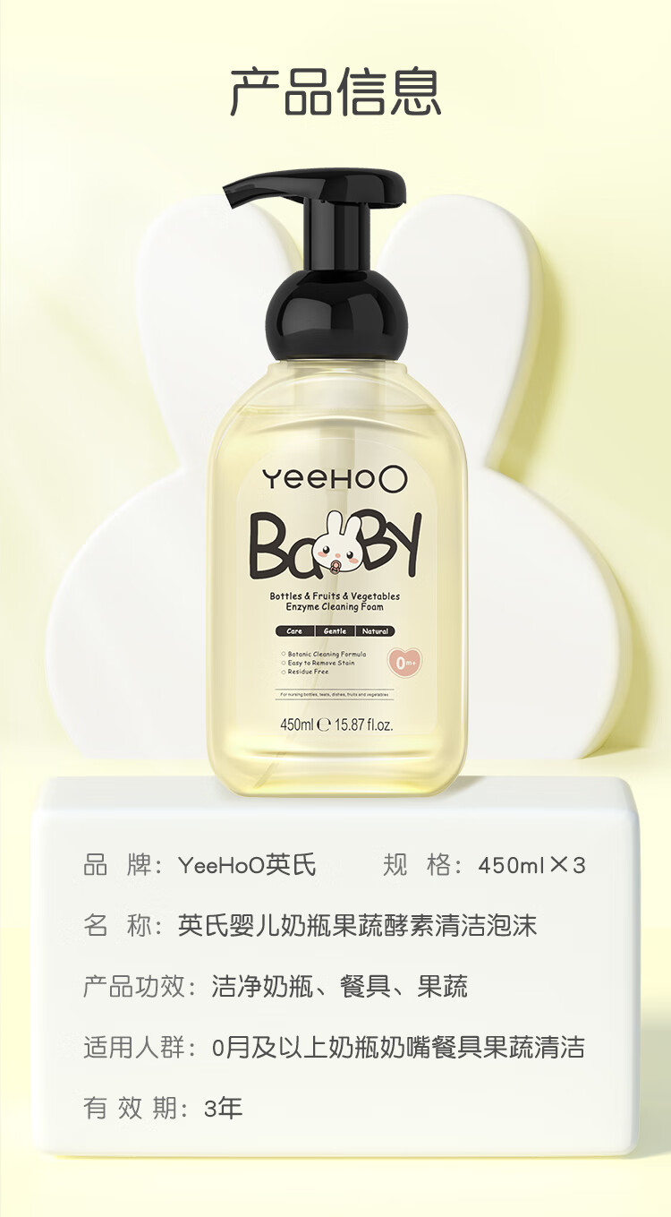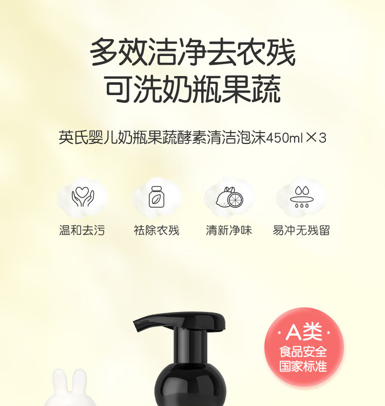 英氏奶瓶清洁剂奶嘴果蔬餐玩具婴儿童洗洁精洗草莓酵素清洁剂450ml*3