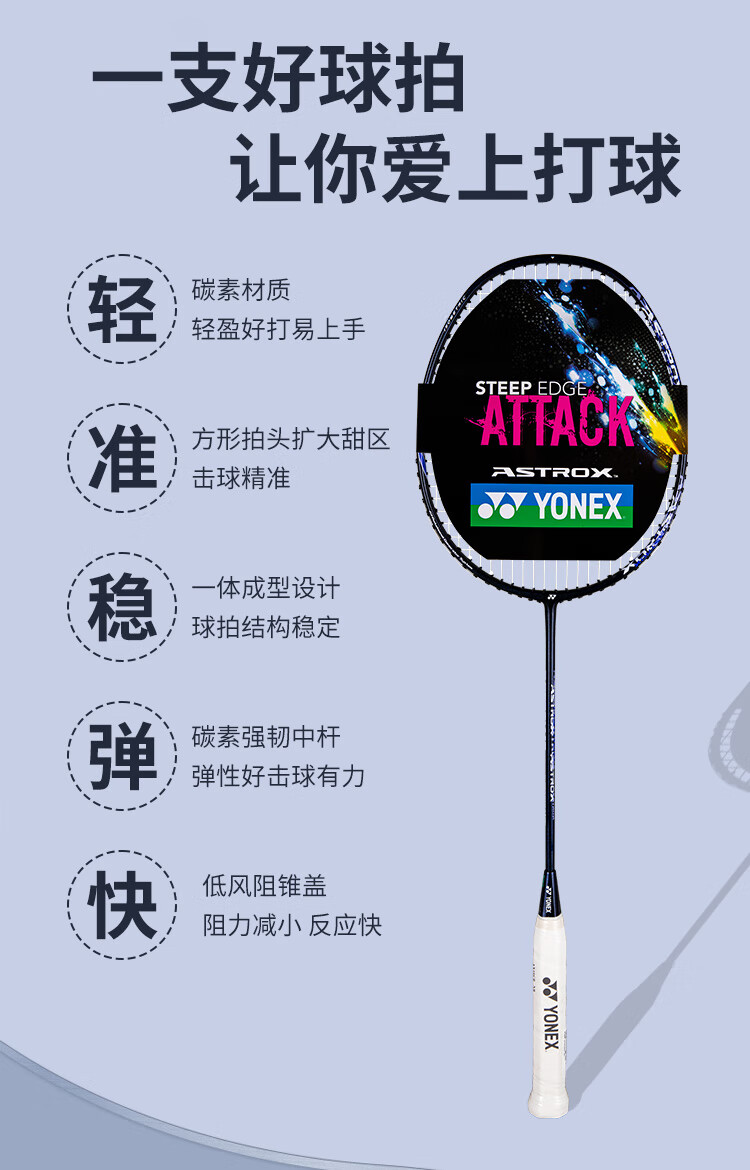 尤尼克斯(YONEX)羽毛球拍天斧进攻高磅全碳素进阶比赛AX10藏青已穿线附手胶
