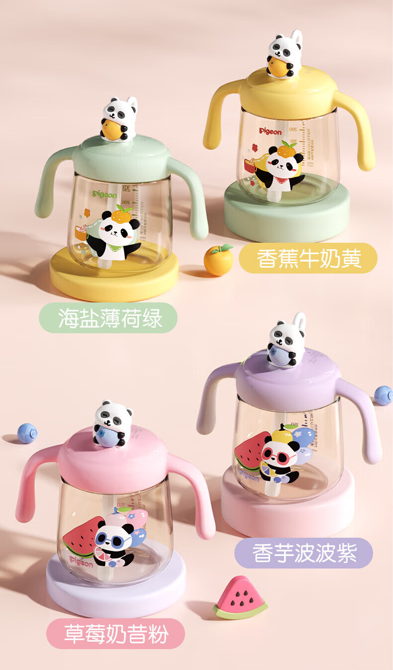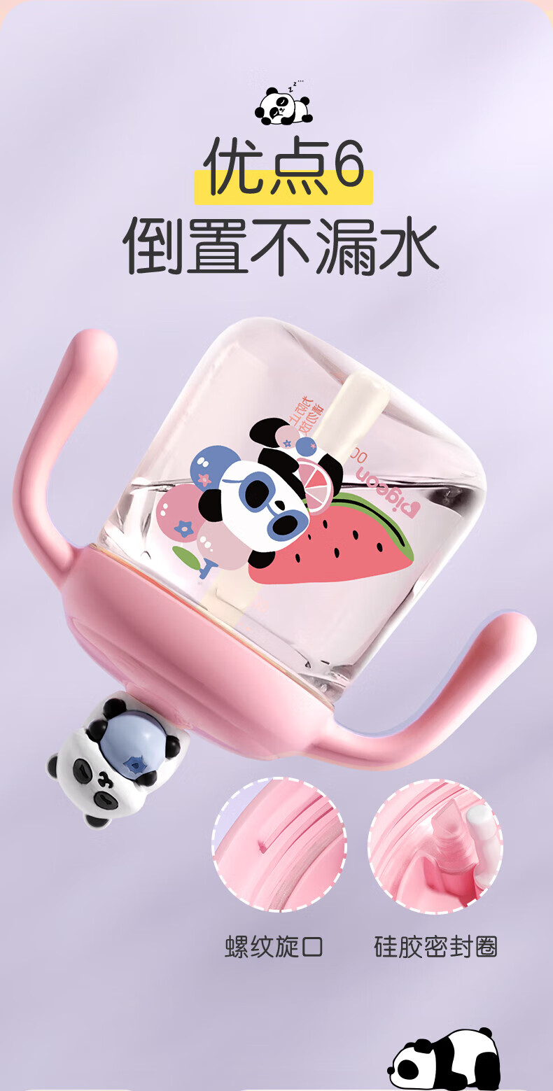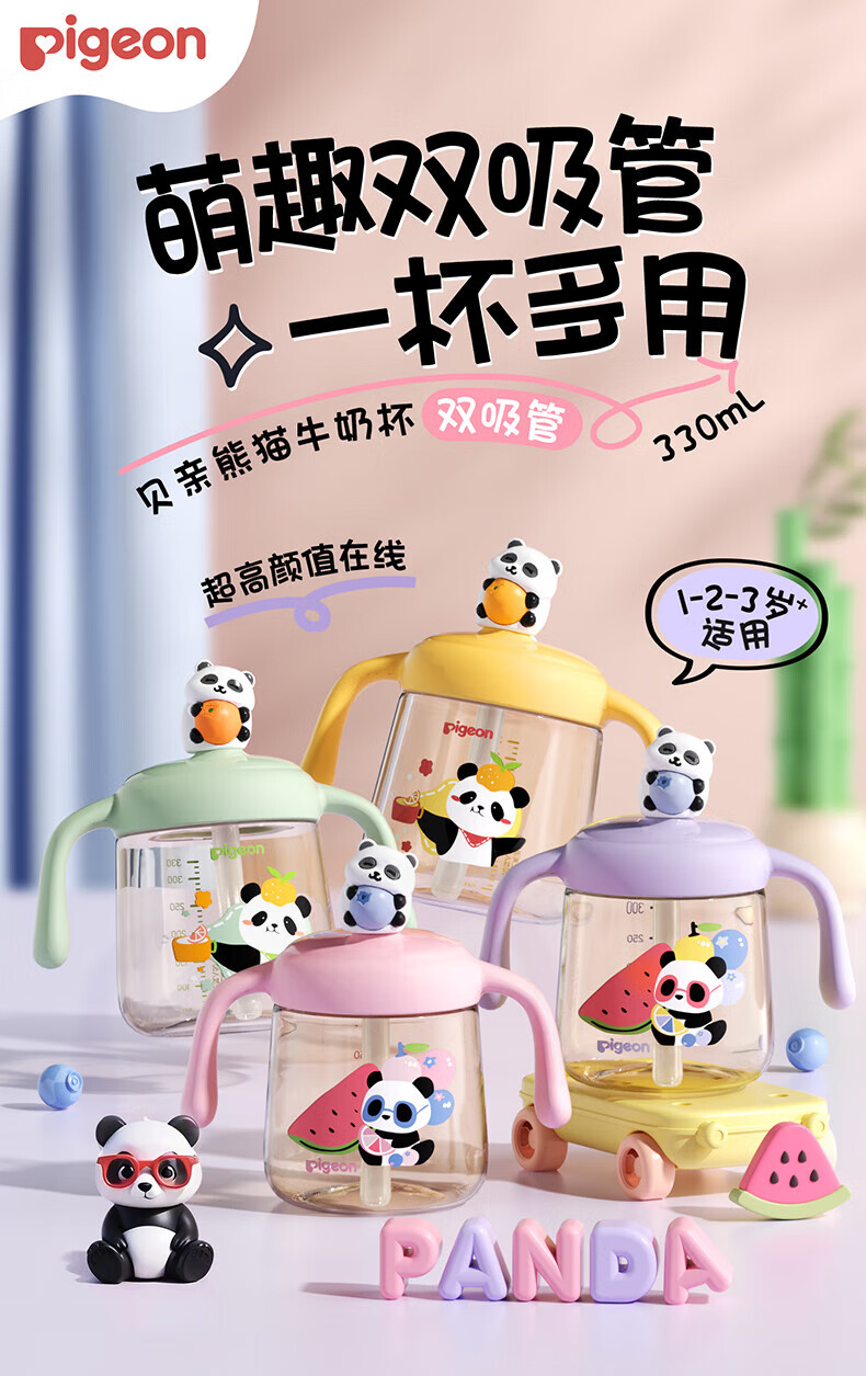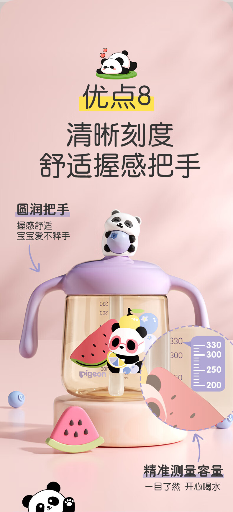 贝亲(Pigeon)水杯 儿童水杯熊猫牛奶杯1-3岁宝宝喝水喝奶PPSU直饮奶瓶吸管杯 海盐薄荷绿 330ml