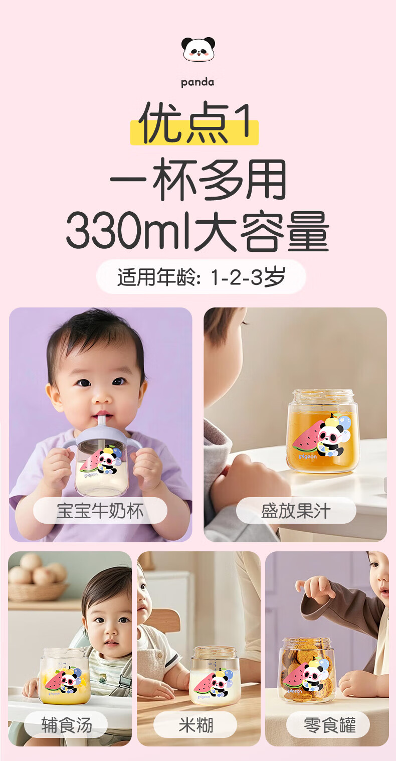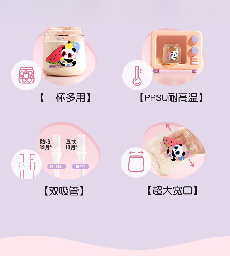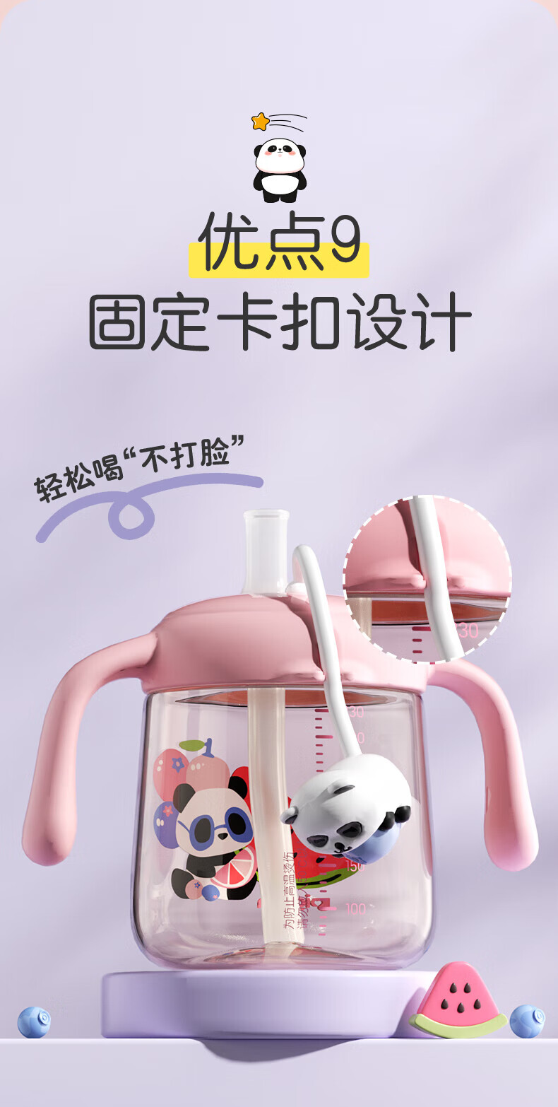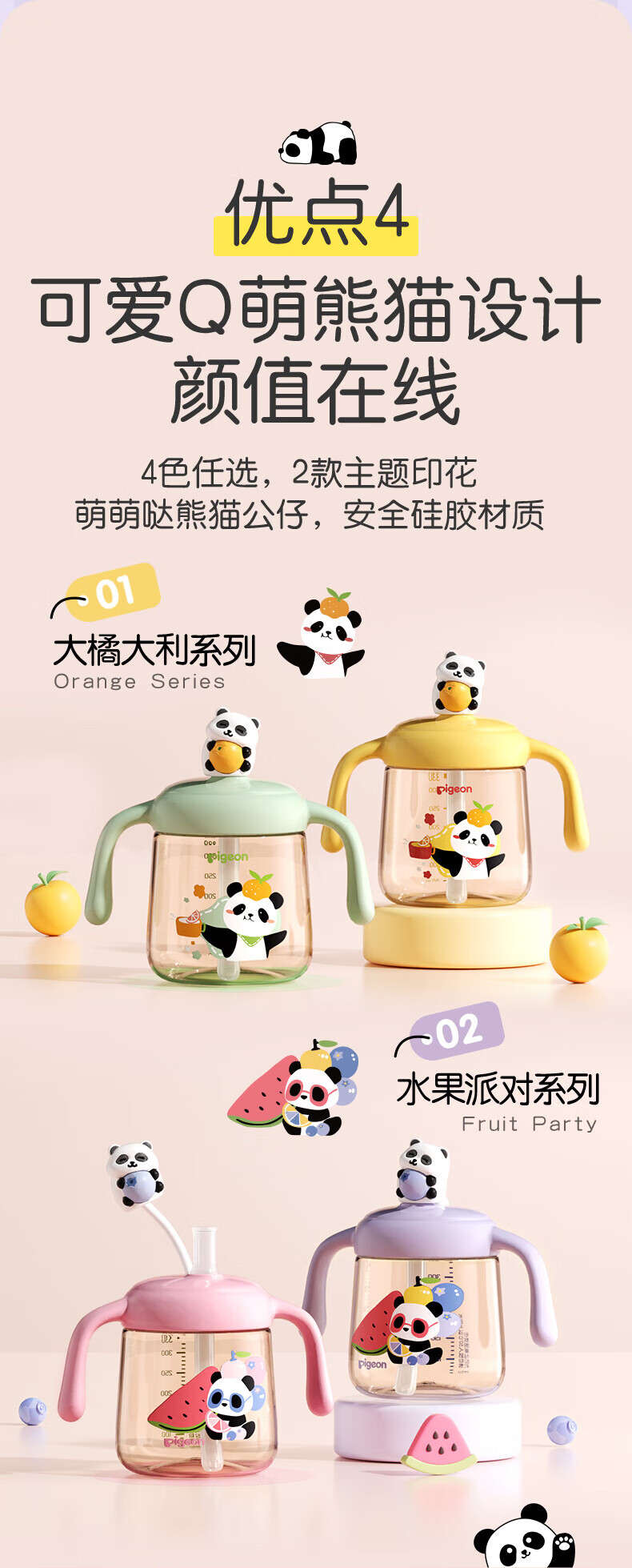 贝亲(Pigeon)水杯 儿童水杯熊猫牛奶杯1-3岁宝宝喝水喝奶PPSU直饮奶瓶吸管杯 海盐薄荷绿 330ml
