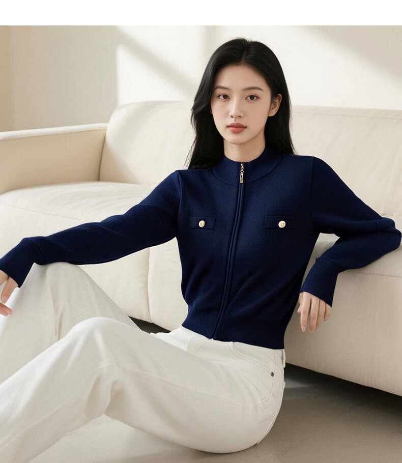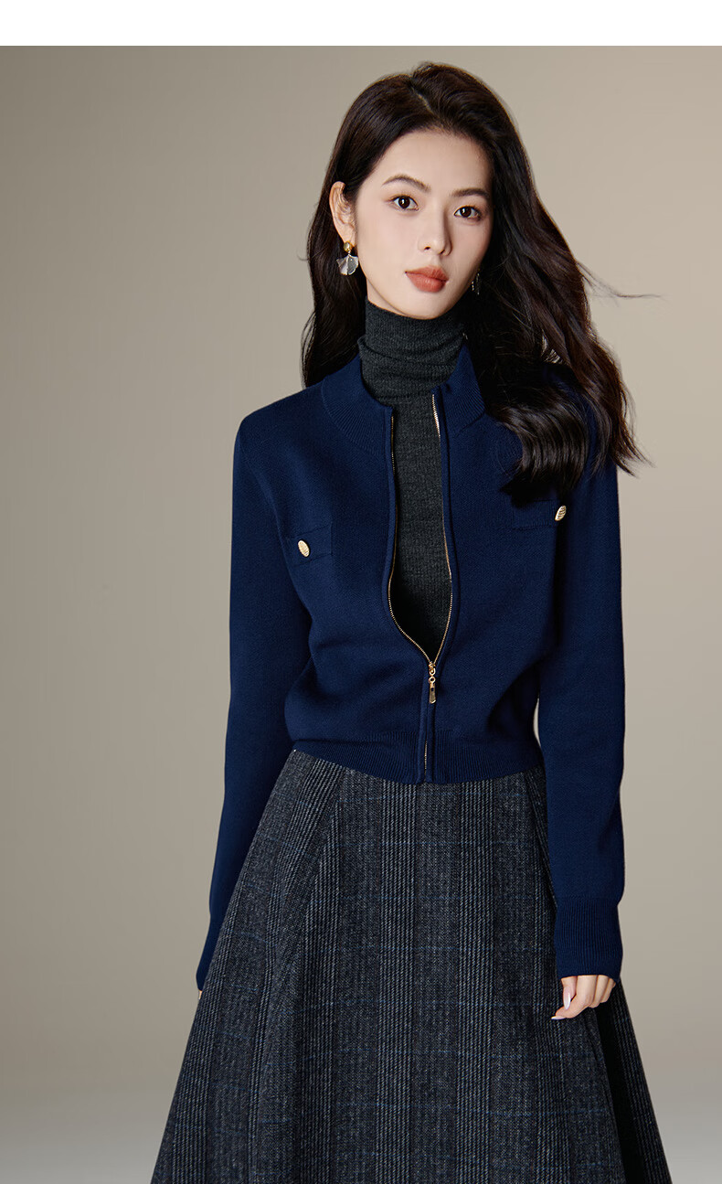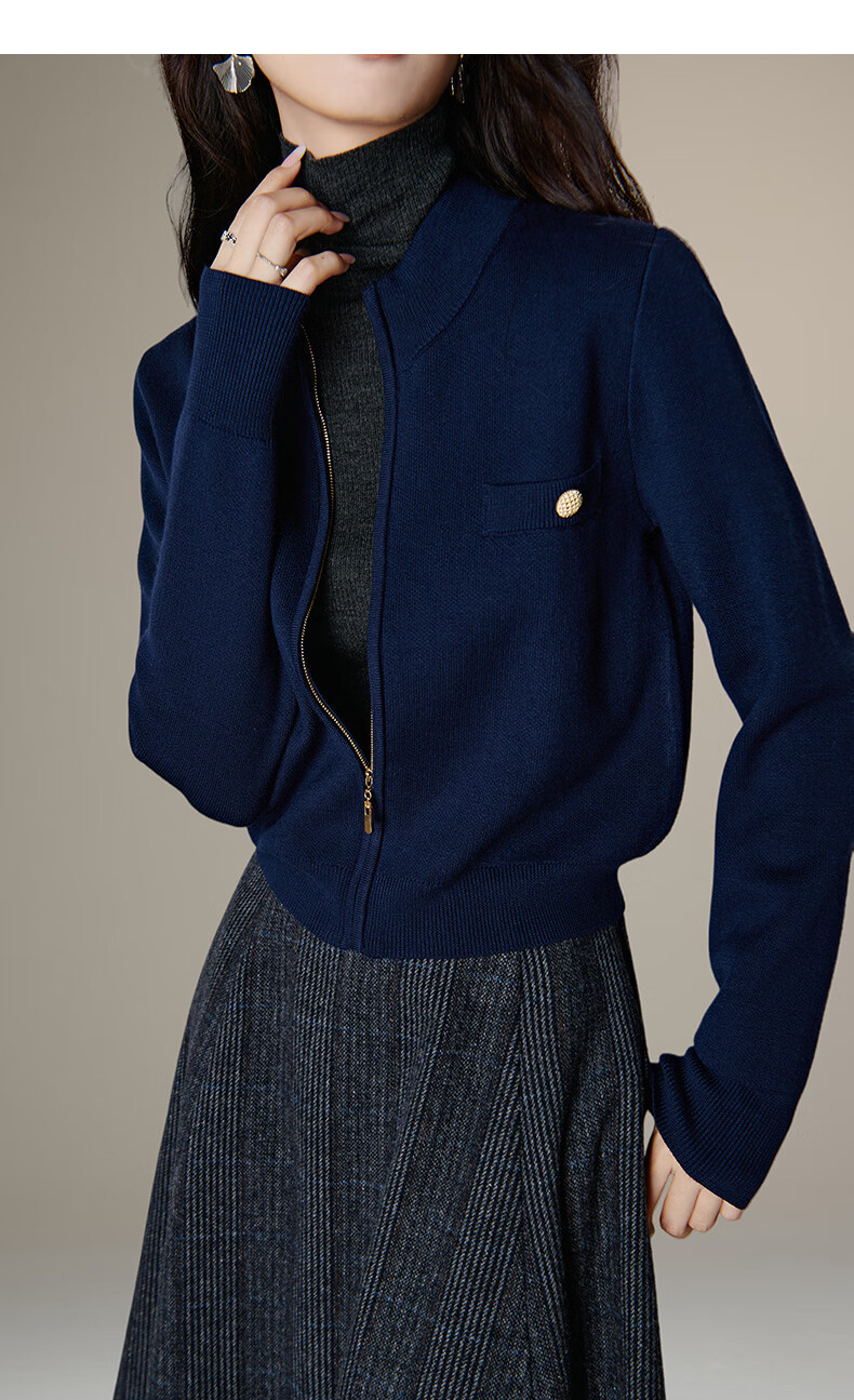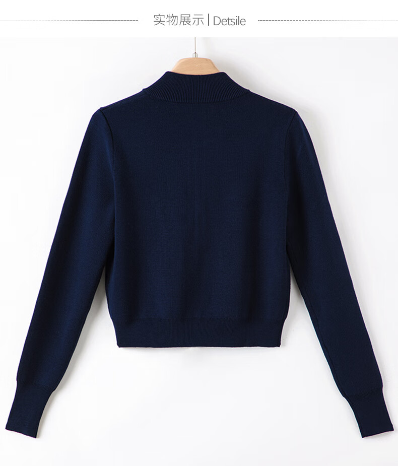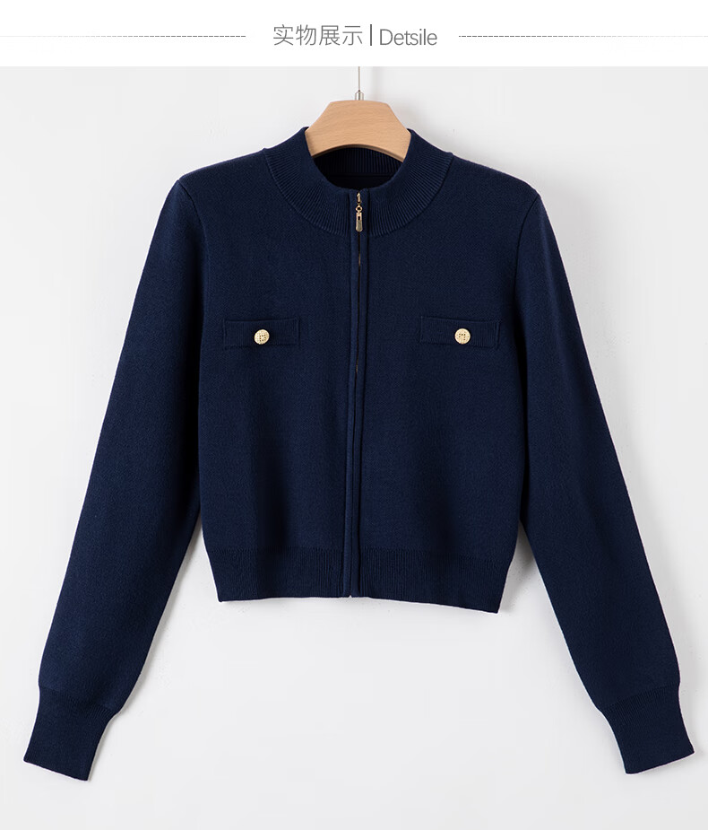 晚白【新品】短款针织开衫女2026春季纯色显瘦显高外套上衣 蓝色 XL