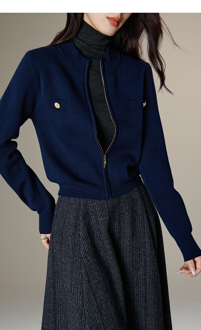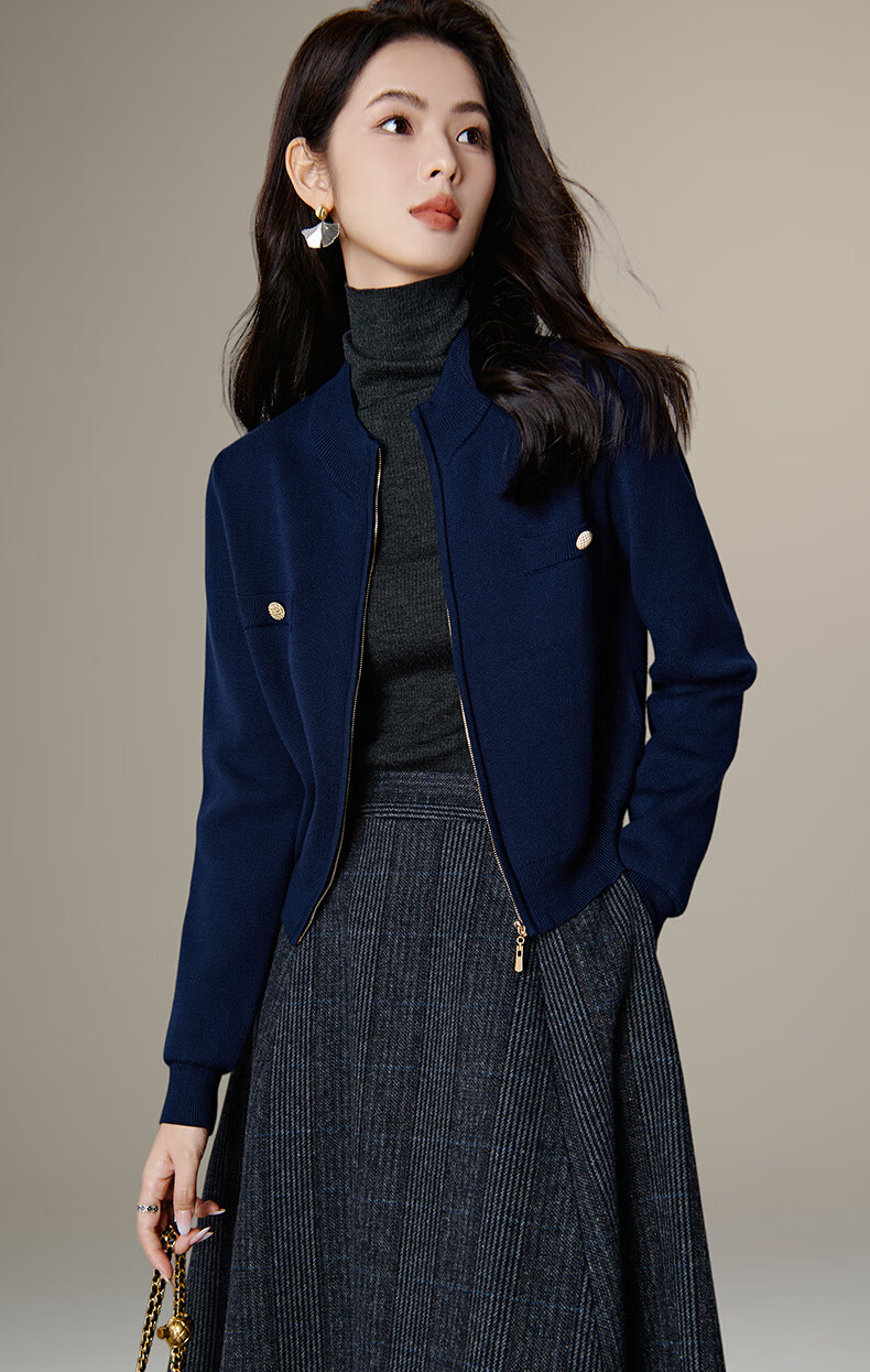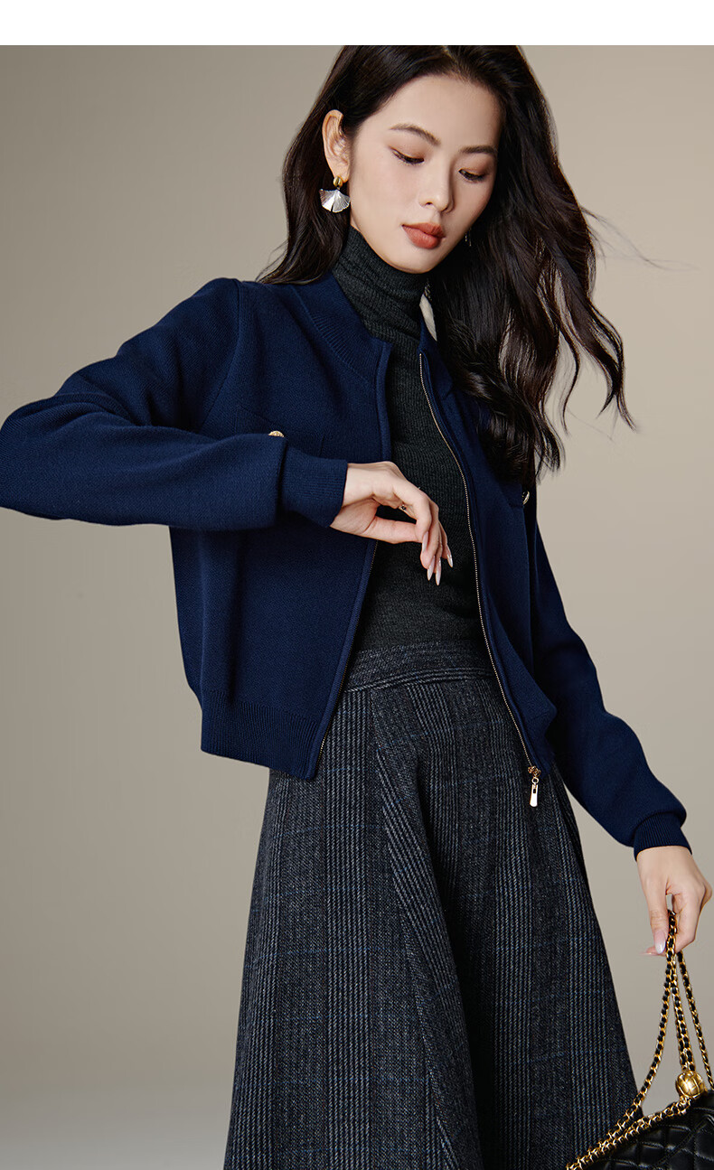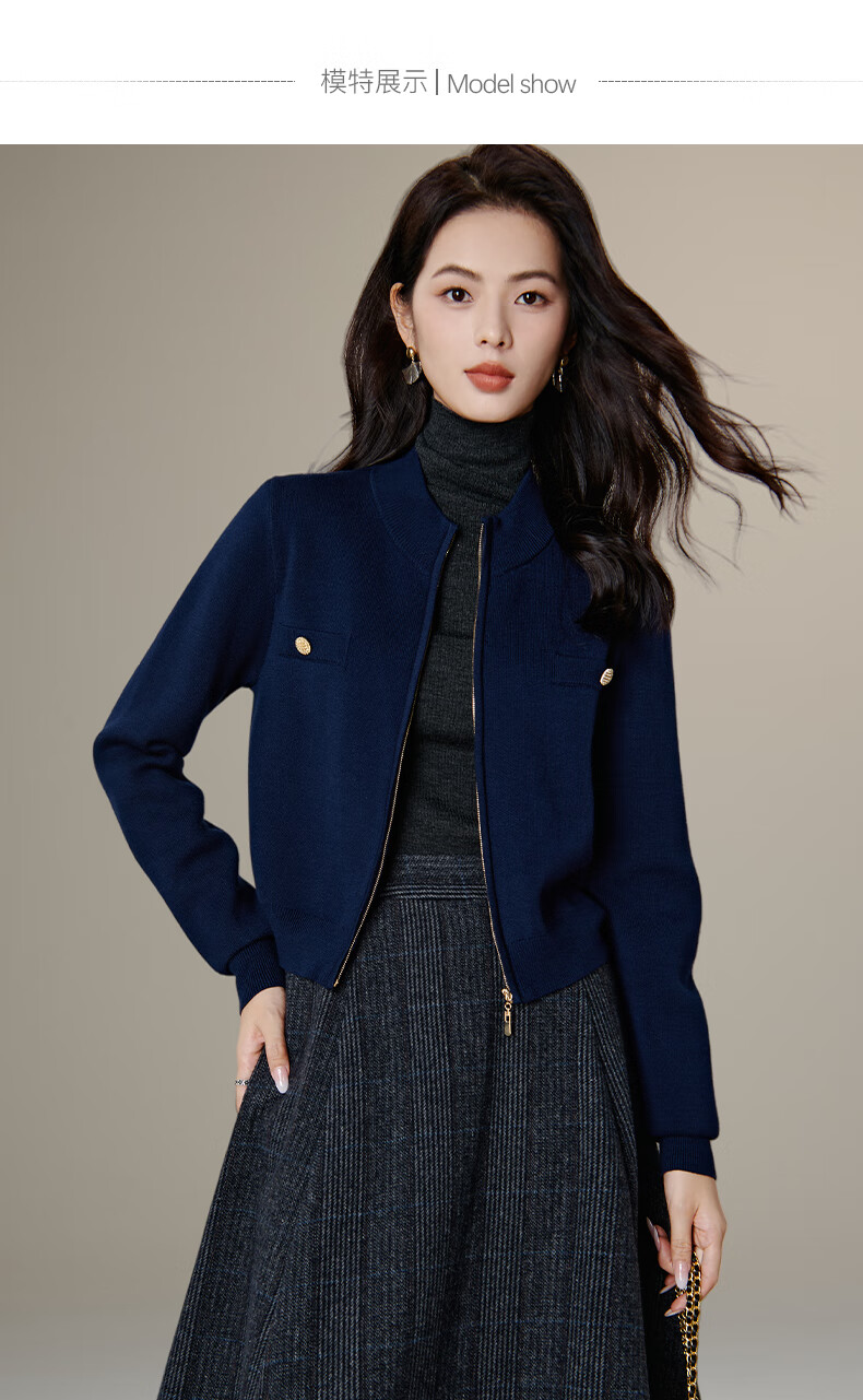 晚白【新品】短款针织开衫女2026春季纯色显瘦显高外套上衣 蓝色 XL