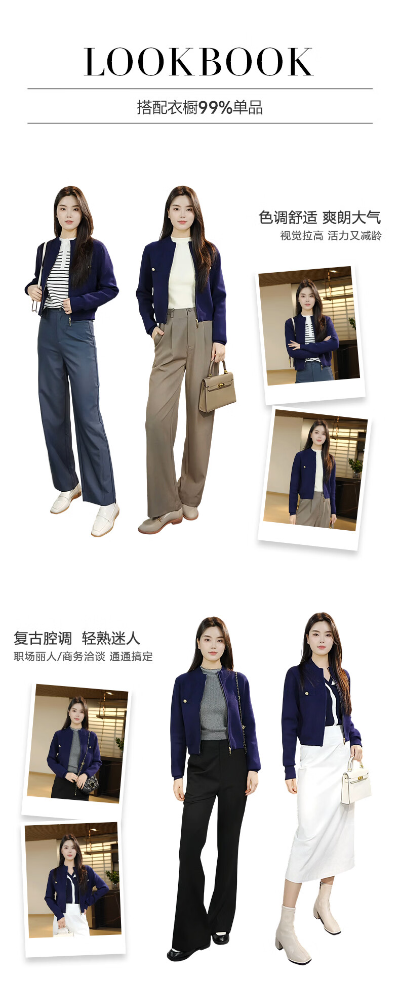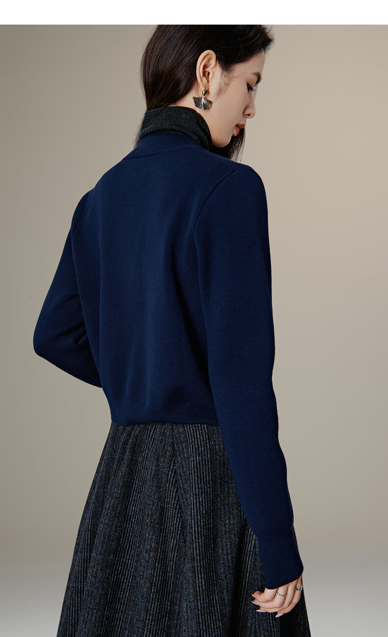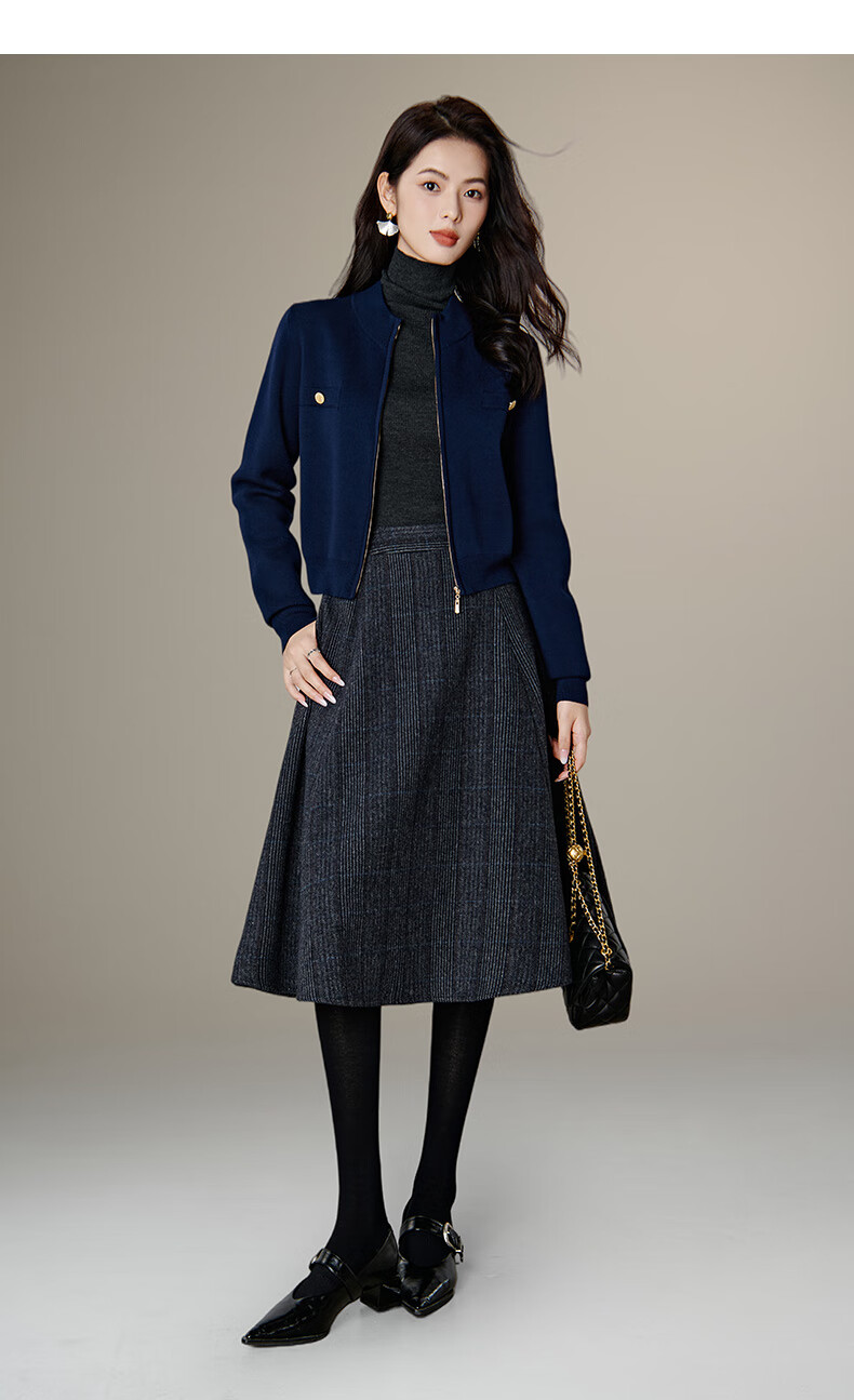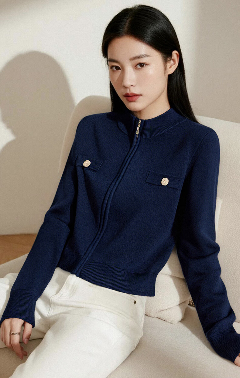 晚白【新品】短款针织开衫女2026春季纯色显瘦显高外套上衣 蓝色 XL