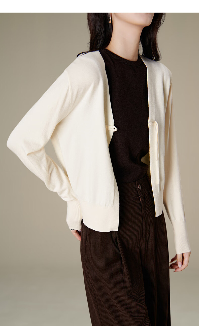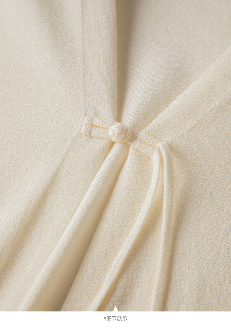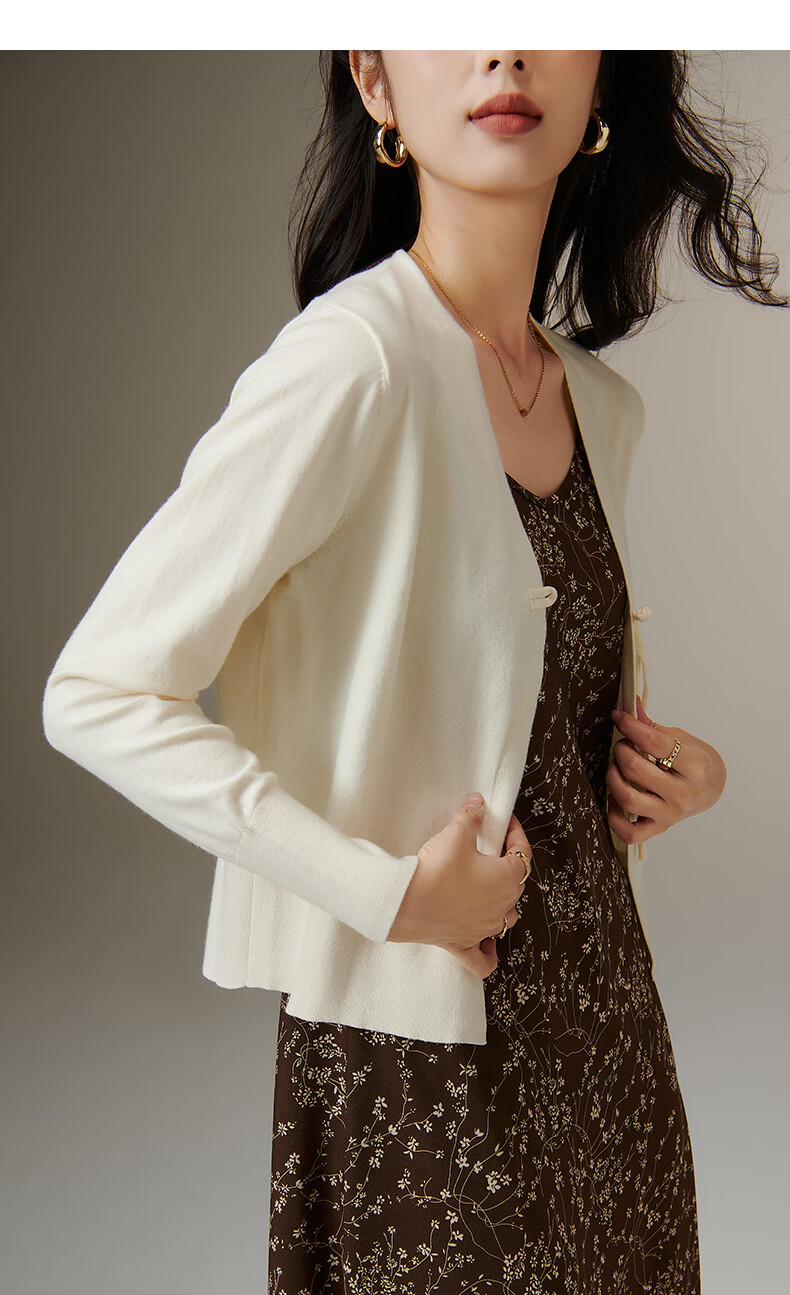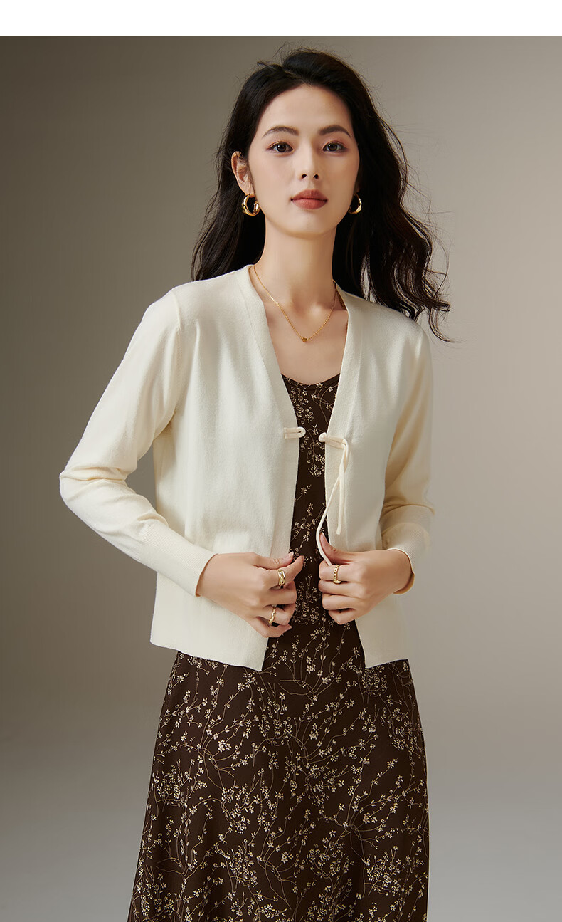 晚白【新品】2026年春款复古优雅国风盘扣上衣软糯亲肤短款针织开衫女 米杏色 M