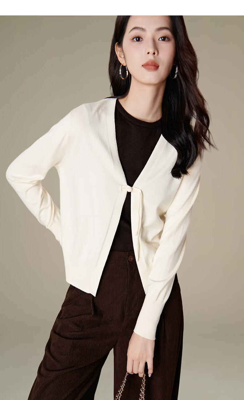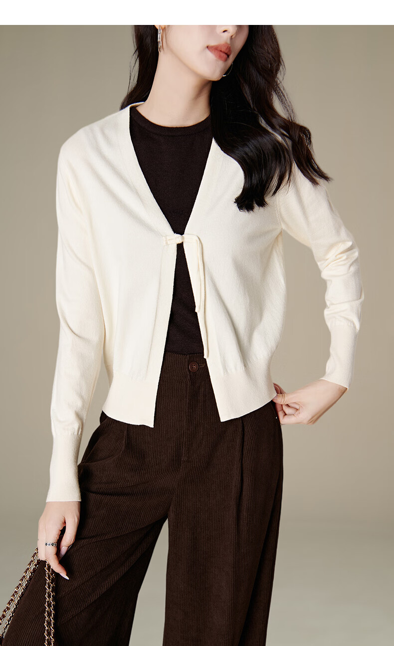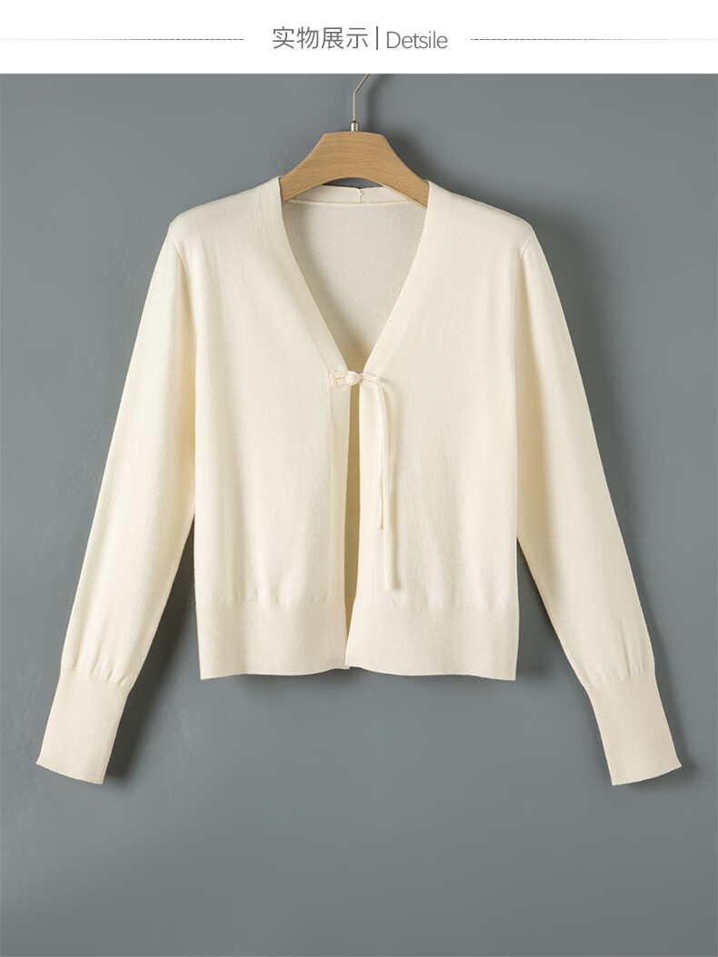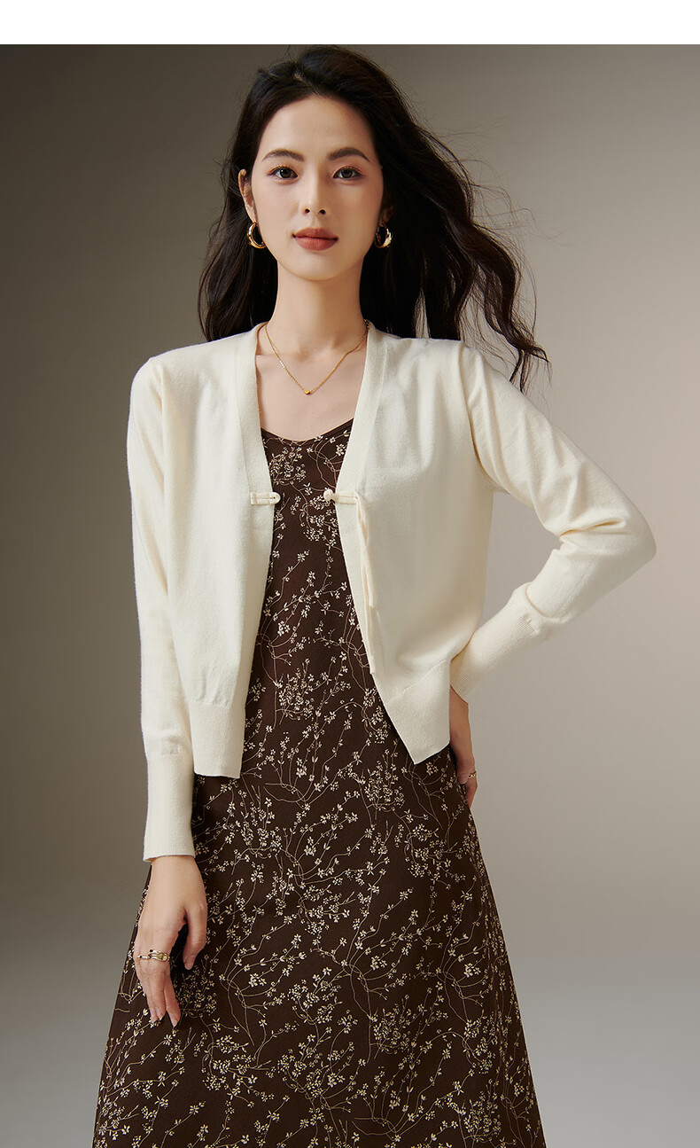 晚白【新品】2026年春款复古优雅国风盘扣上衣软糯亲肤短款针织开衫女 米杏色 M