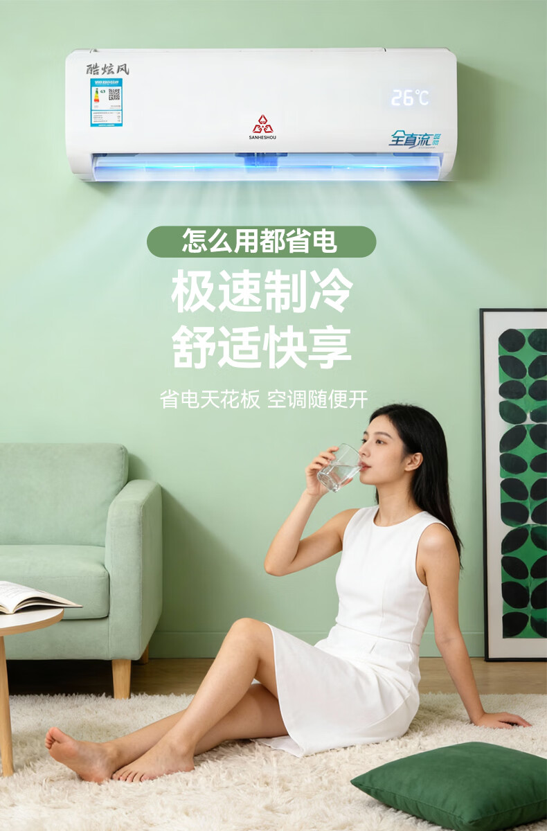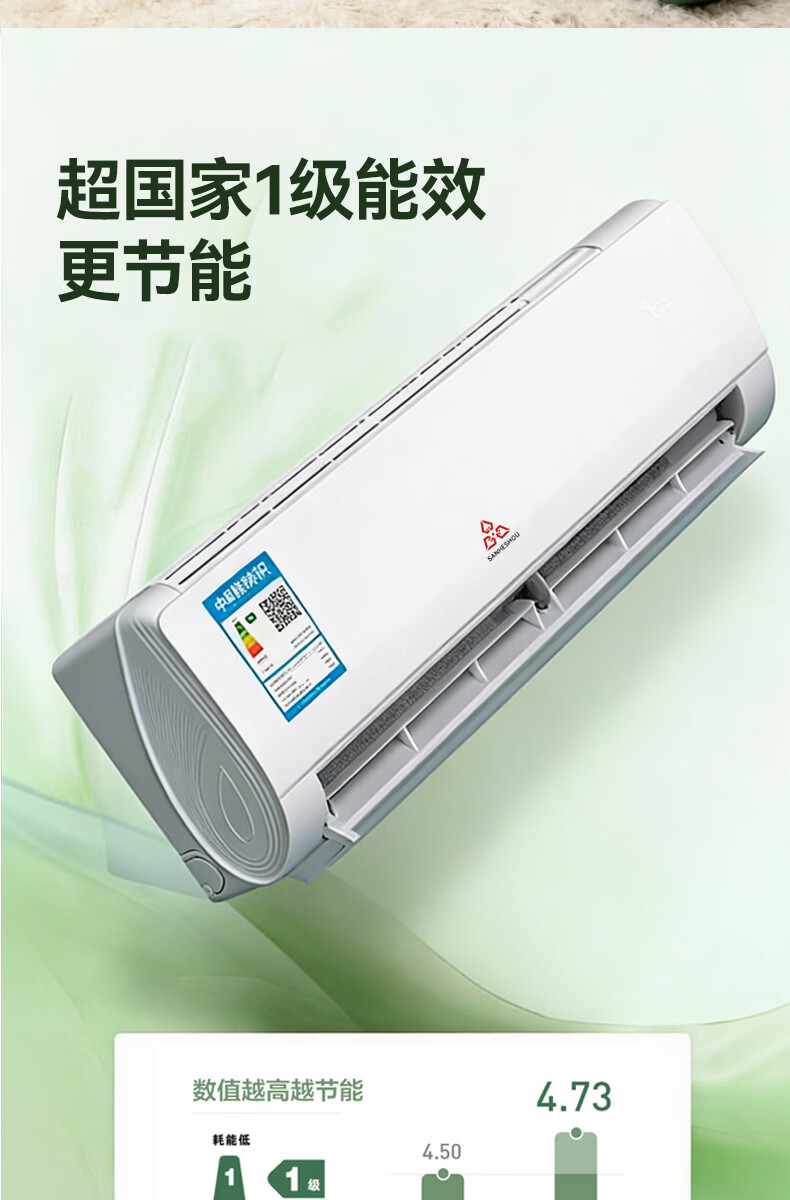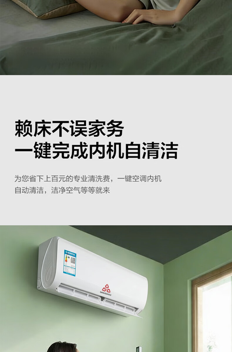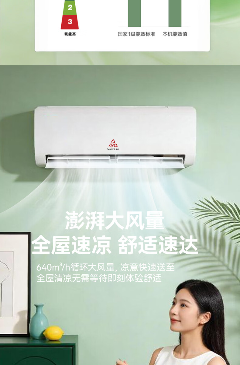 SANHESHOU精工制造空调 新一级能效 品牌压缩机 大1.5匹大1匹挂机 超省电冷暖变频 家用壁挂式 以旧换新 精工制造