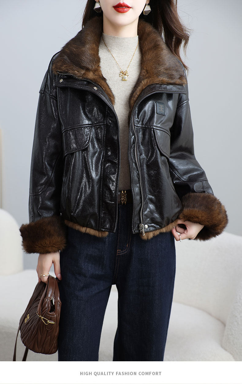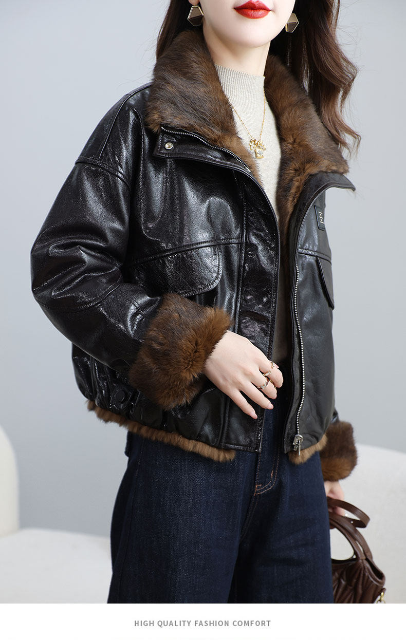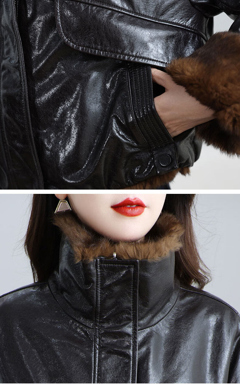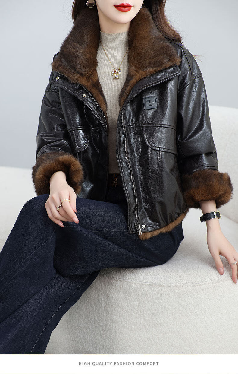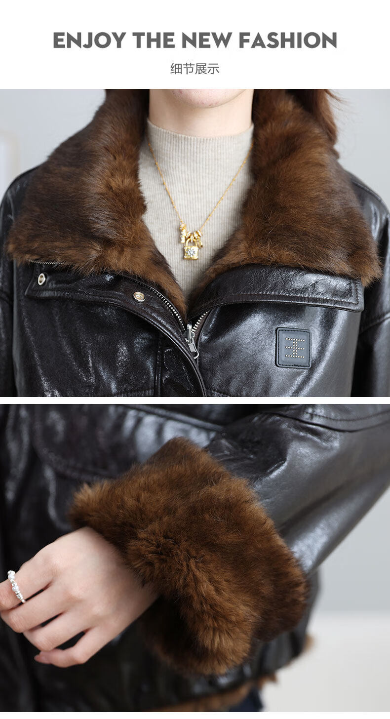 MODX两面穿真皮皮衣女短款2026冬新款时尚休闲兔皮毛一体海宁皮草外套 深棕色 XL 131-145斤