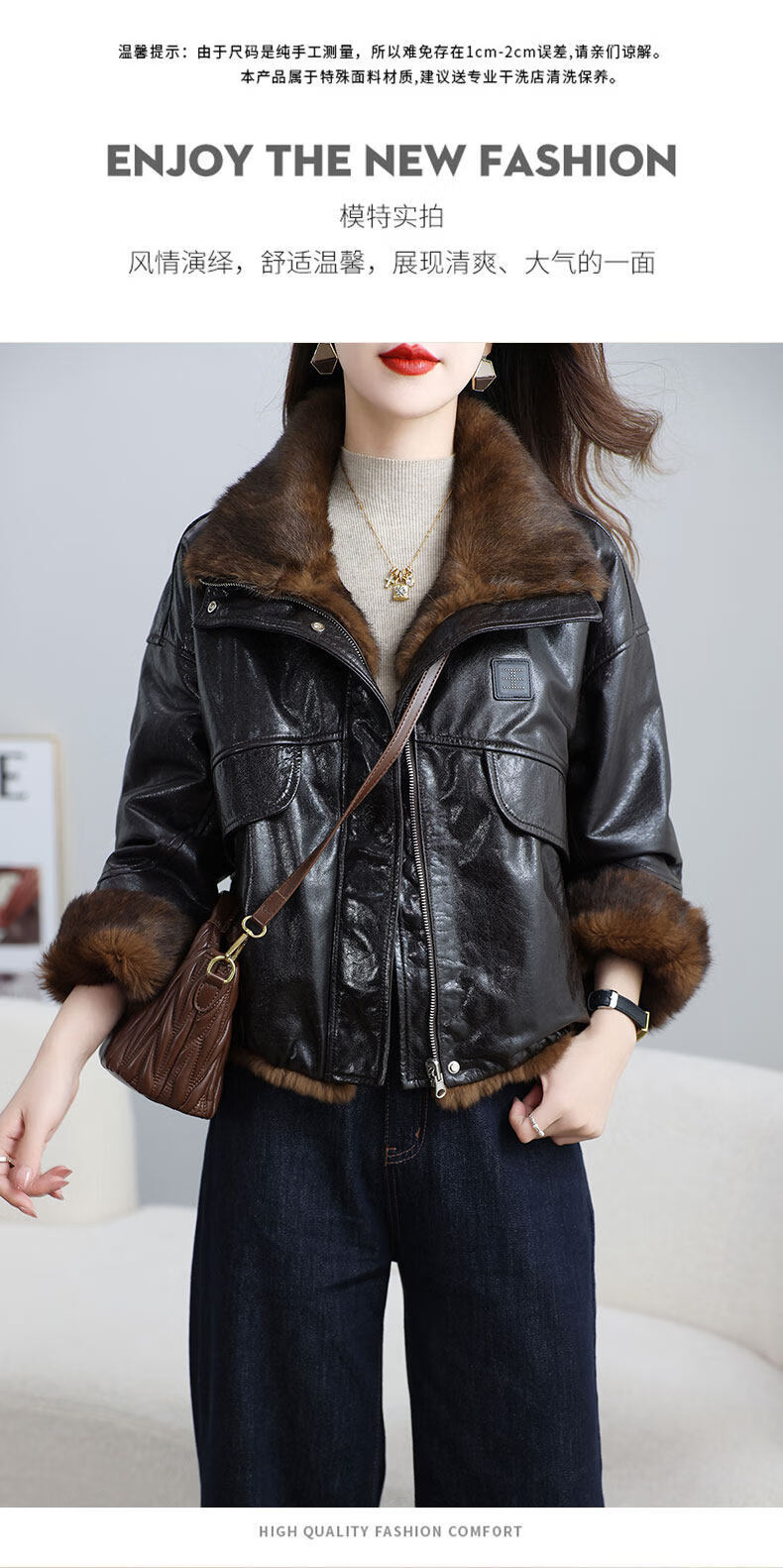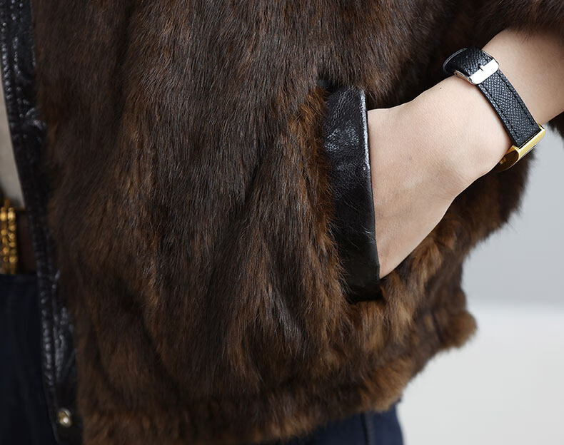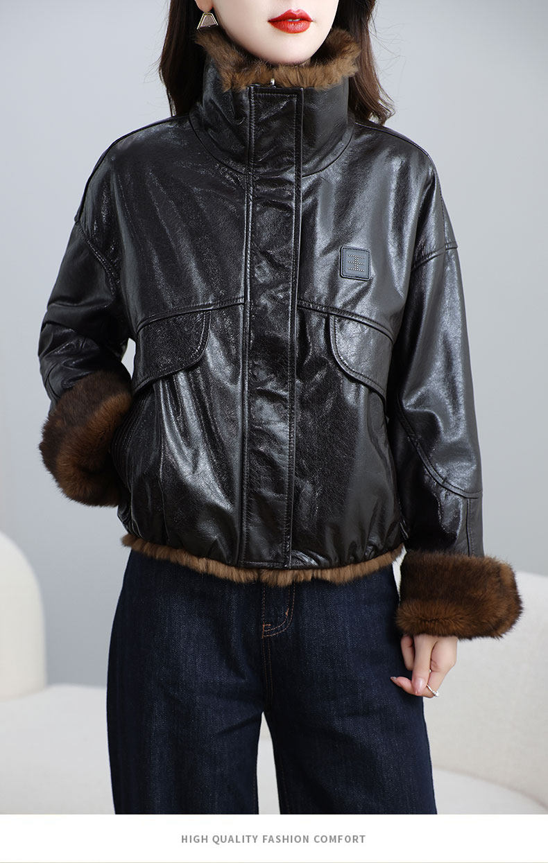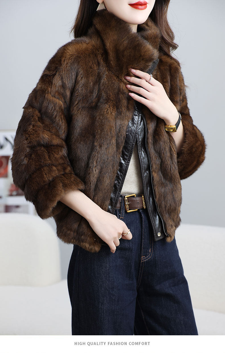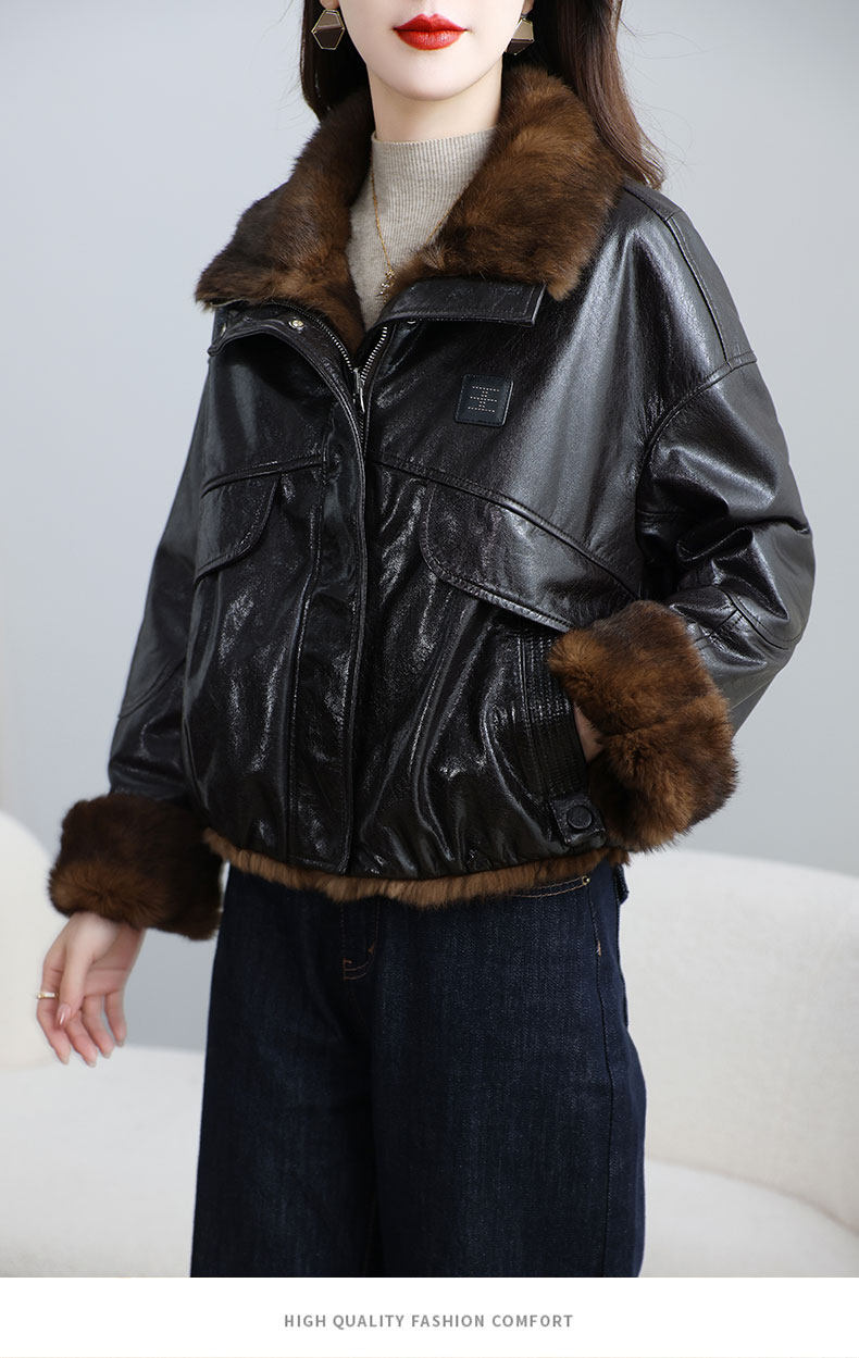 MODX两面穿真皮皮衣女短款2026冬新款时尚休闲兔皮毛一体海宁皮草外套 深棕色 XL 131-145斤