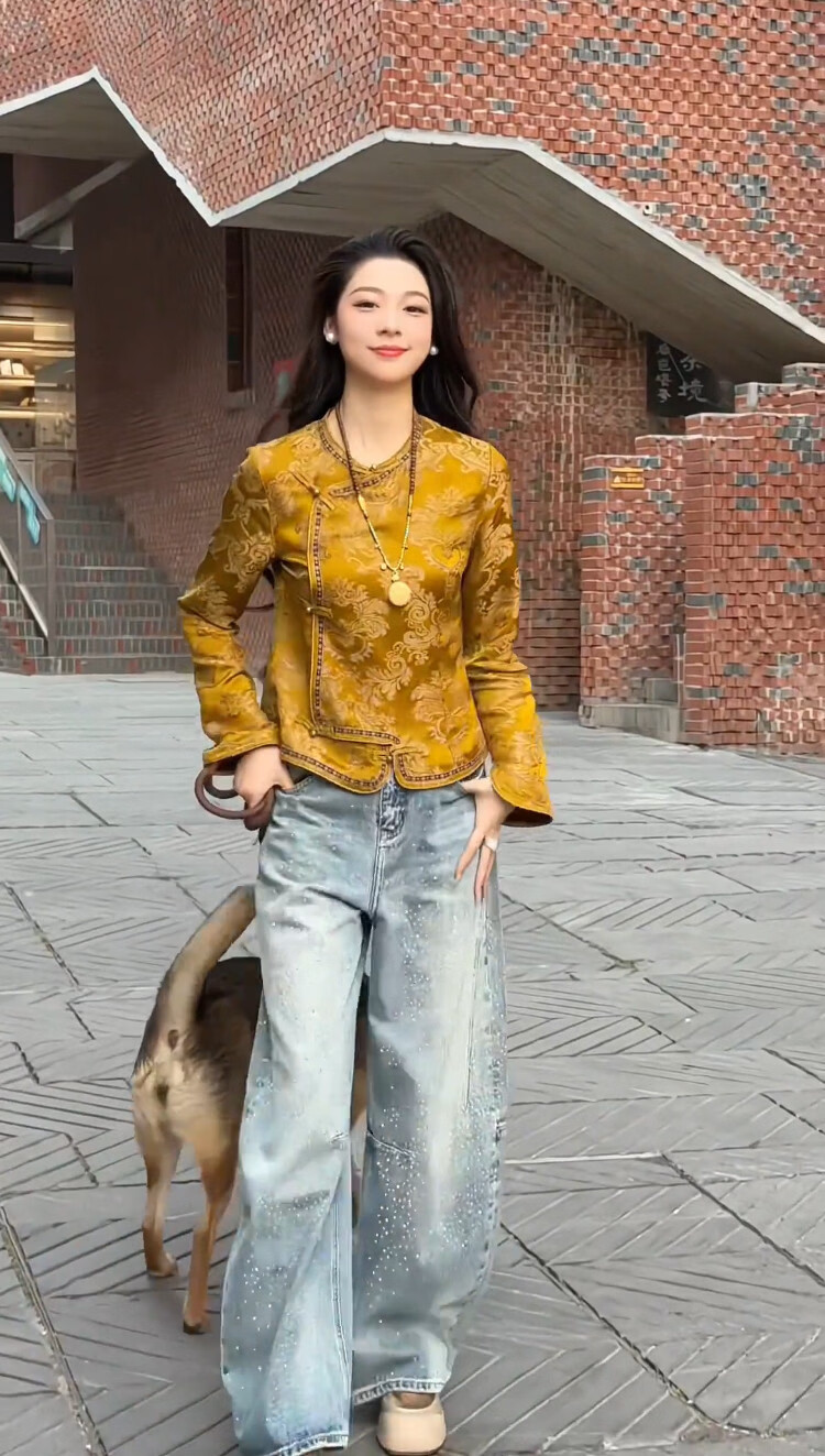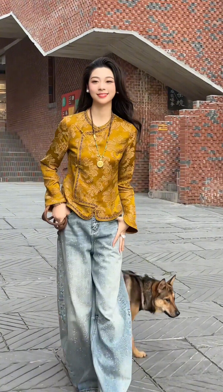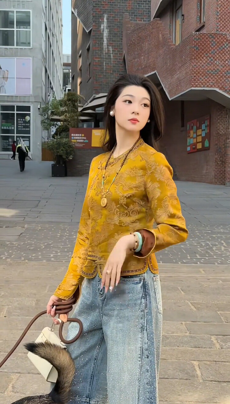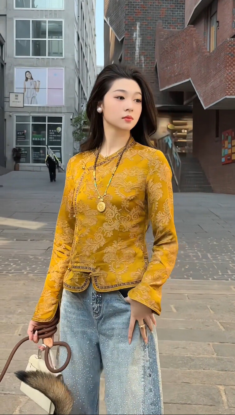 MODX新中式黄色提花短外套2026新款斜襟设计感气质国风显瘦长袖上衣女 黄色外套(高端品质) L (建议90-108斤)