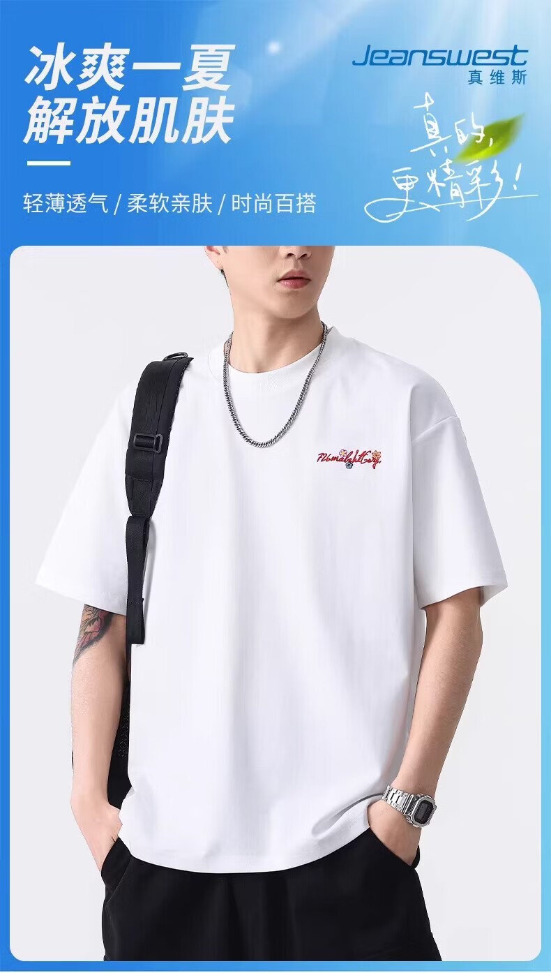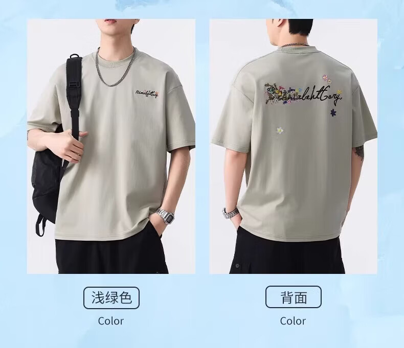 真维斯(Jeanswest)美式休闲刺绣圆领短袖T恤男夏季新款时尚潮牌百搭复古上衣 浅绿色【柔软亲肤】 XL 建议体重150-165斤