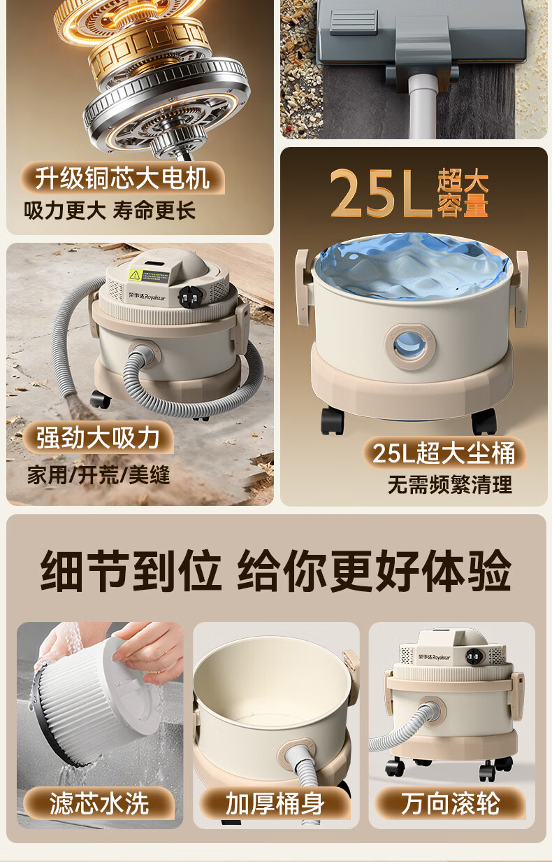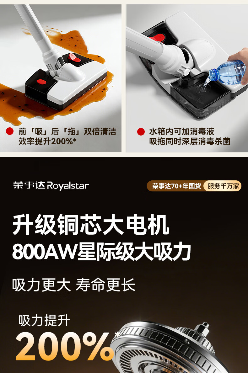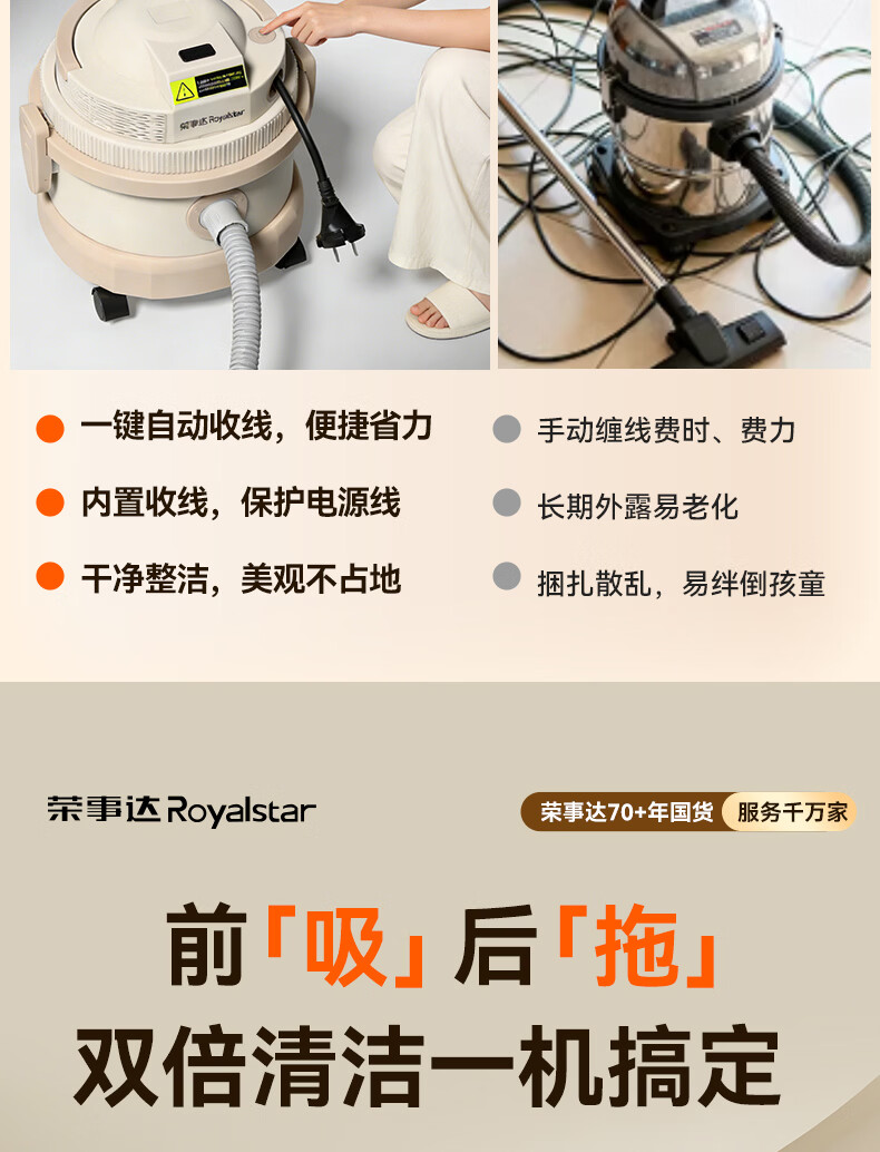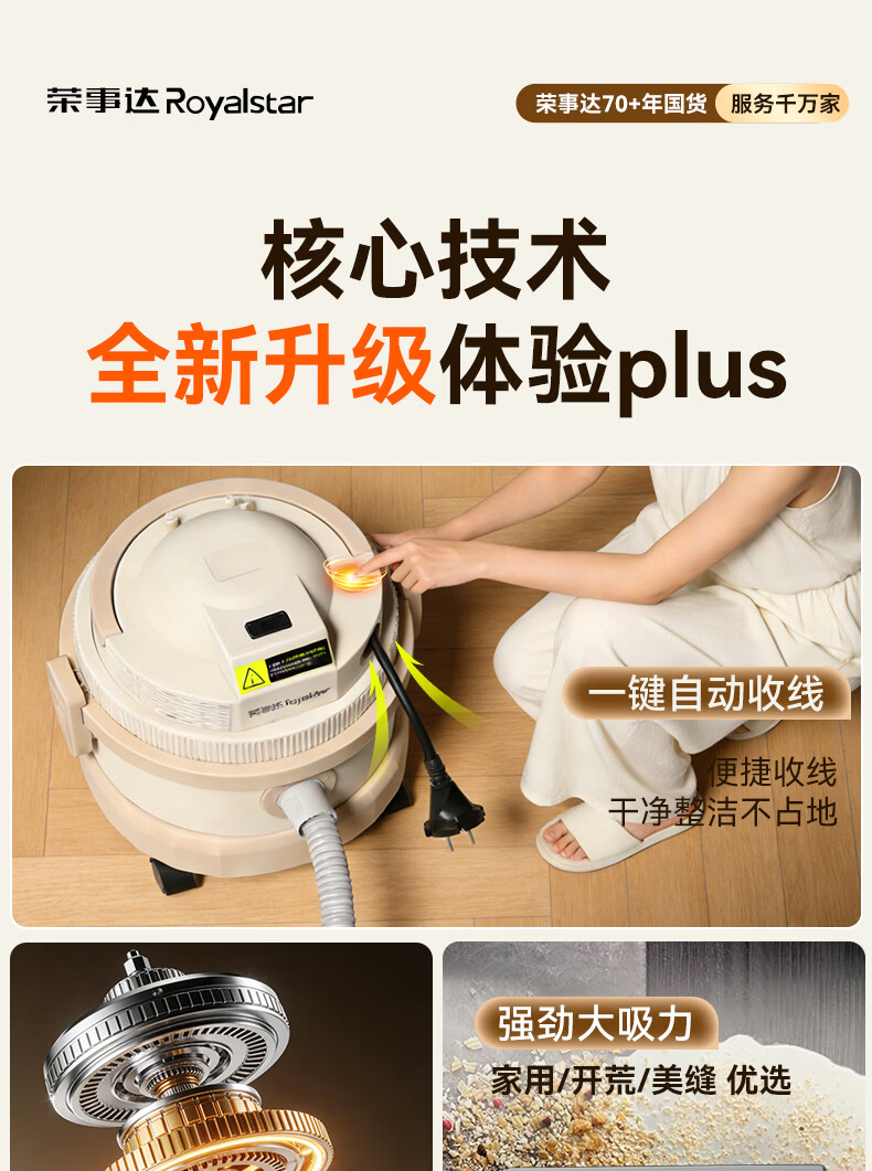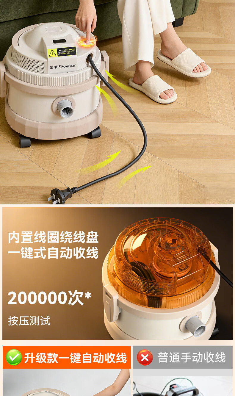 荣事达吸尘器家用大吸力大功率工业开荒地毯保洁商用吸拖一体机 旗舰款【一键收线+除螨吸拖】全屋清洁