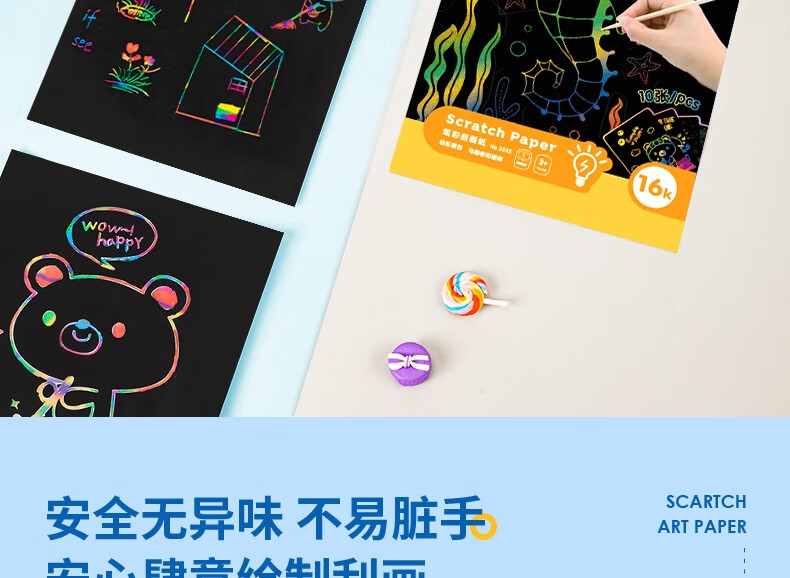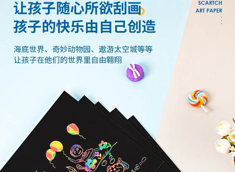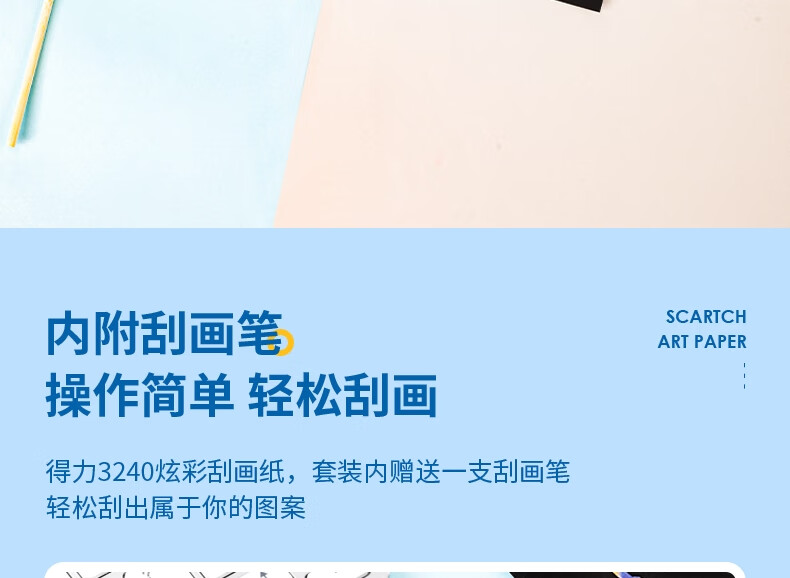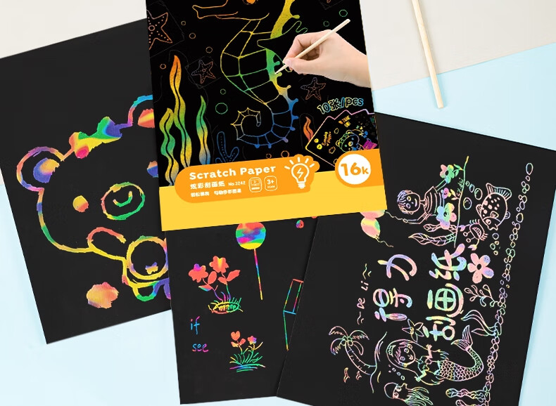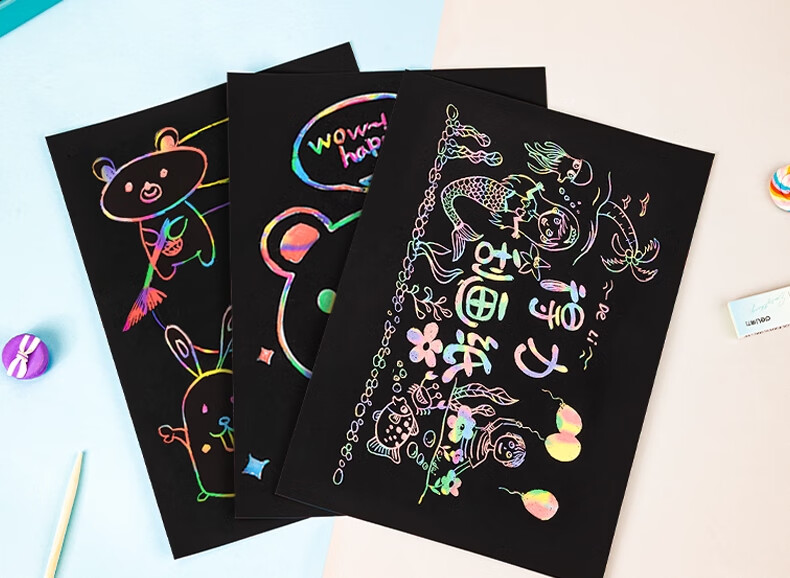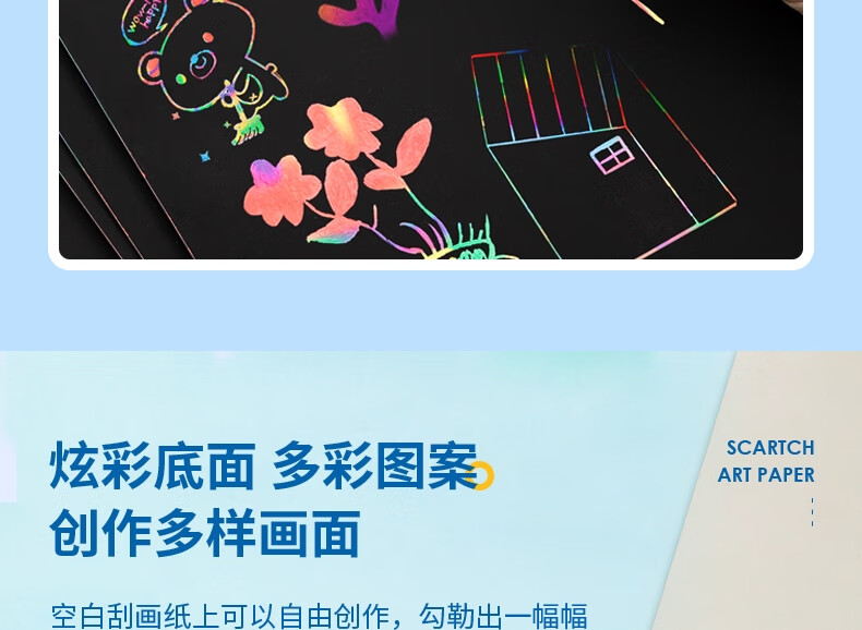 得力(deli)10张16K儿童刮画纸 炫彩刮创意涂鸦绘画本 手工DIY刮刮纸本益智玩具生日礼物美育工具