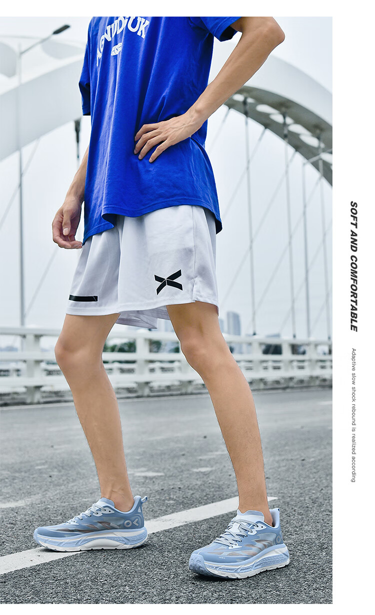 三叶草贝壳头夏季新品男士锦纶运动短裤宽松速干透气薄款五分裤休闲户外沙滩裤 深蓝色 L 建议体重110-130斤