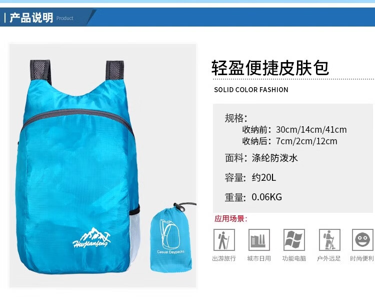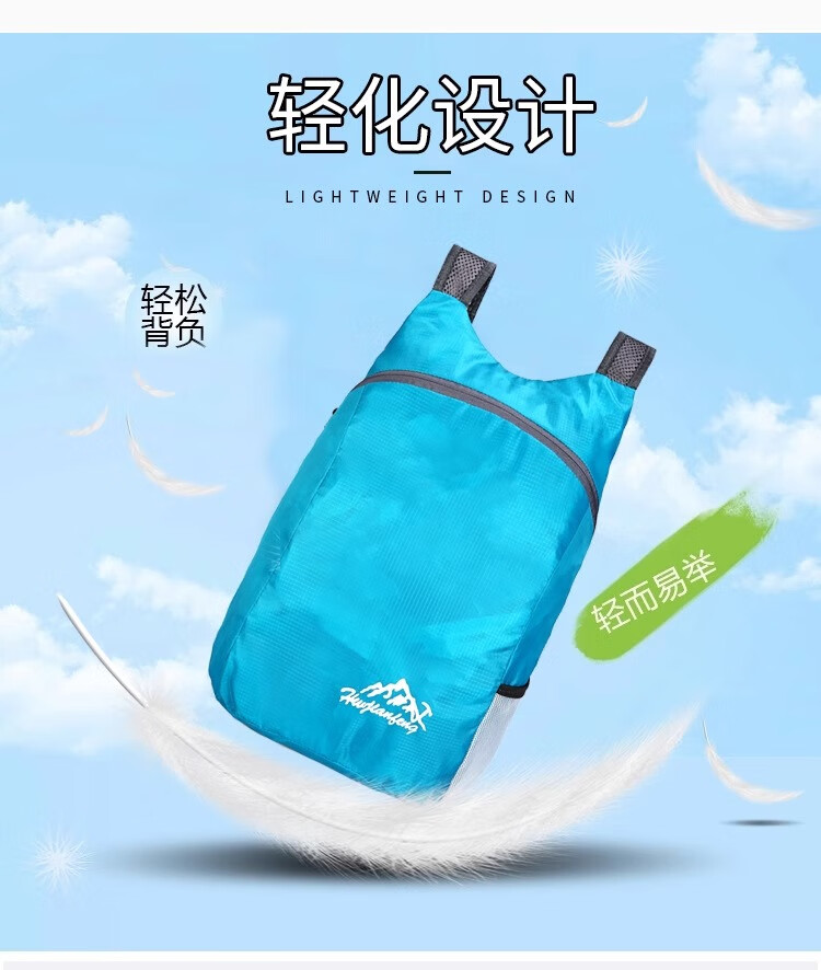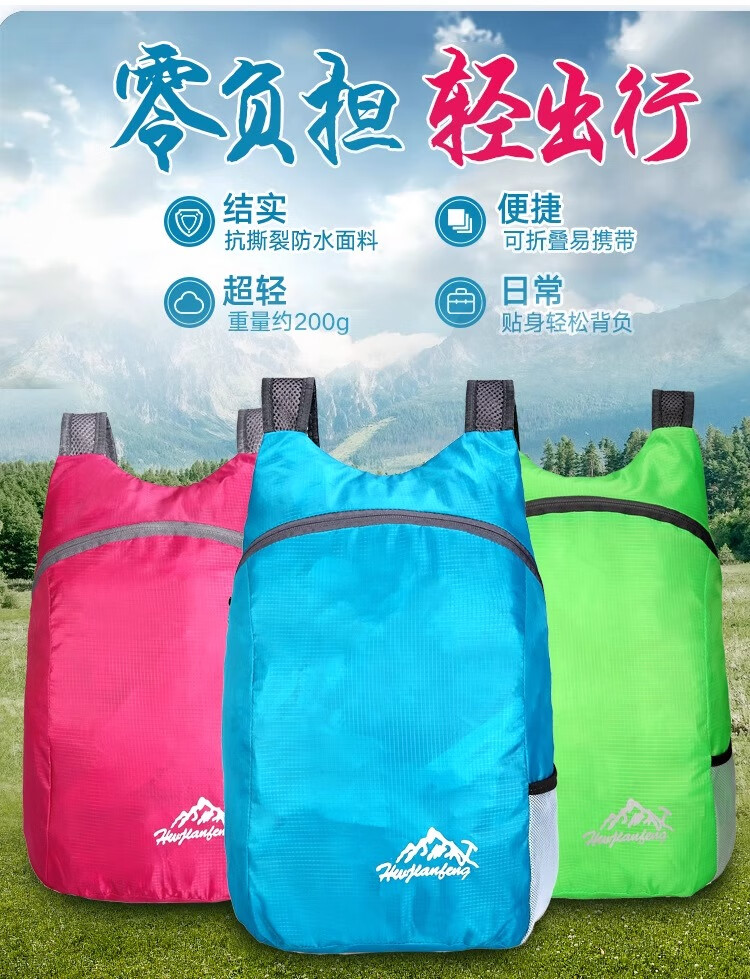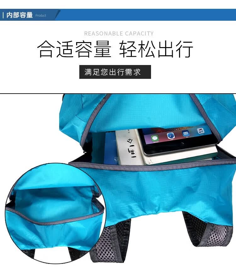 双肩背包可折叠旅行户外包运动学生大容量男女超轻便携防泼水书包 黑色折叠双肩包 防溅水 无规格