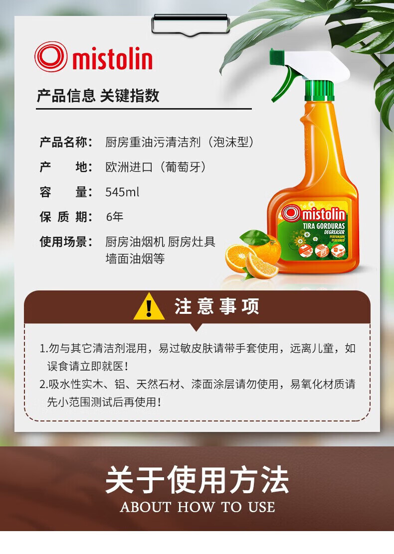 MISTOLIN进口油污清洁剂油烟机清洗剂厨房去油污强力清洁剂油污净多功能除