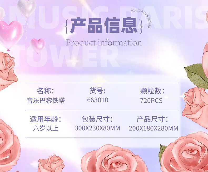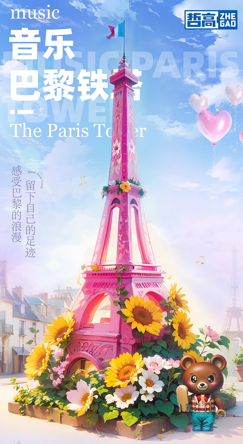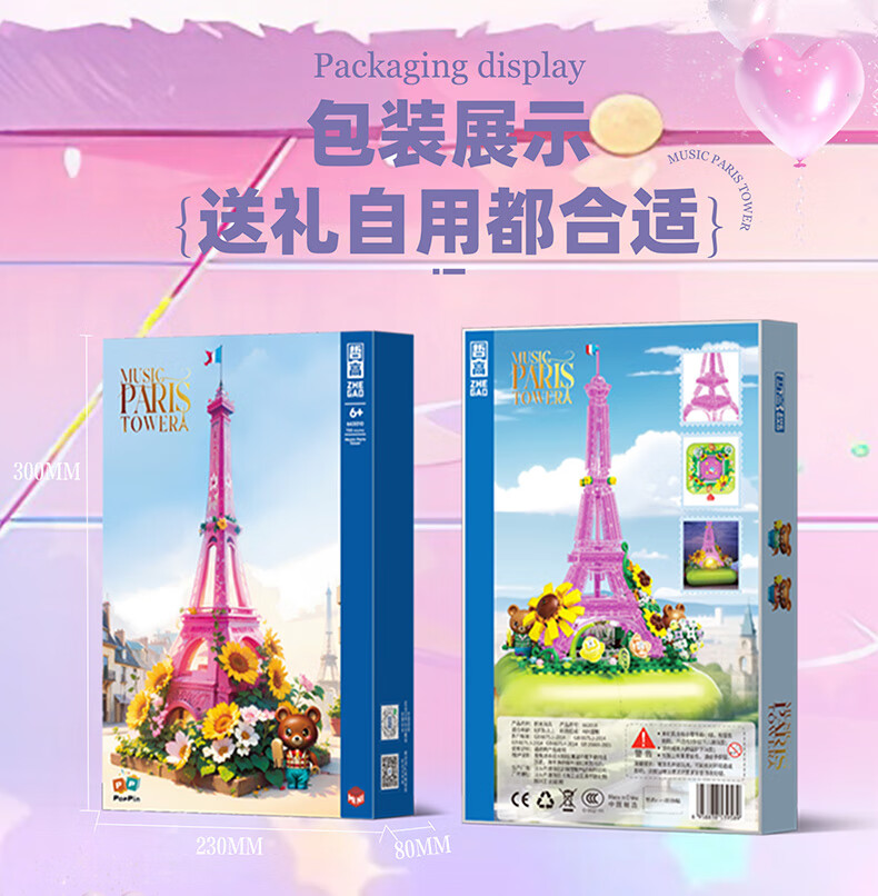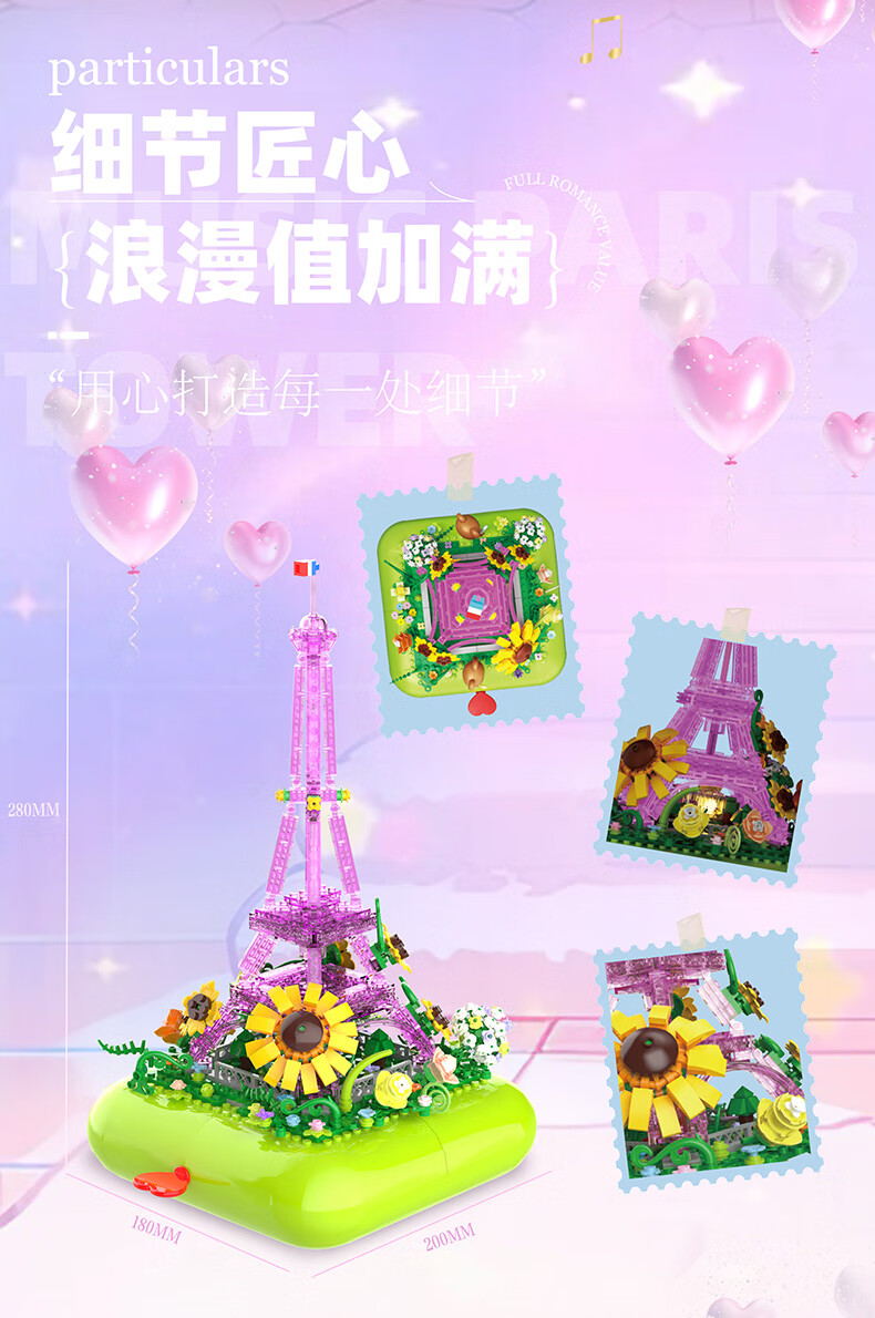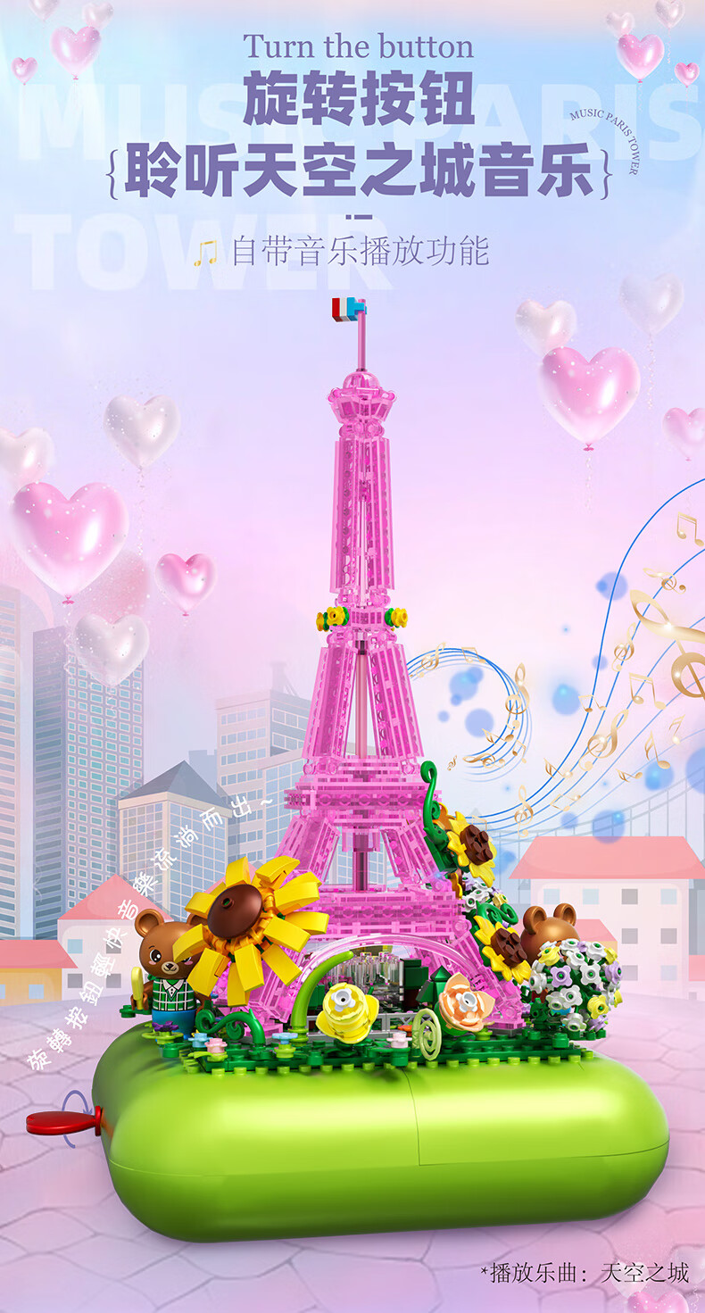 哲高女神节礼物积木拼装八音盒音乐盒巴黎铁塔创意送男女生节日礼品 音乐盒巴黎铁塔-720颗粒